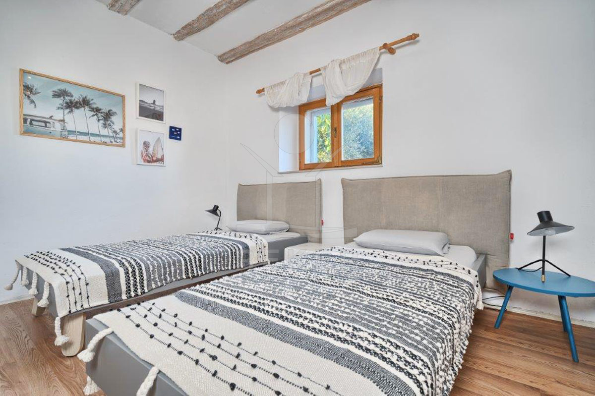 Das Anwesen befindet sich auf einem 1.079 m² großen Grundstück mit einer südlichen Ausrichtung und ist teilweise von einer charmanten Betonmauer und einer grünen Hecke umgeben. Das Haus erstreckt sich über zwei Etagen und verfügt über einer Wohnfläche von 240 m². Im Jahr 2020 wurde das Objekt modernisiert und mit maßgefertigten italienischen Möbeln ausgestattet, die eine entspannte Inselatmosphäre widerspiegeln. Zudem wurde 2021 die Elektro- und Sanitärversorgung auf den neuesten Stand gebracht. Diese Villa bietet luxuriösen Komfort und ein einladendes Ambiente.