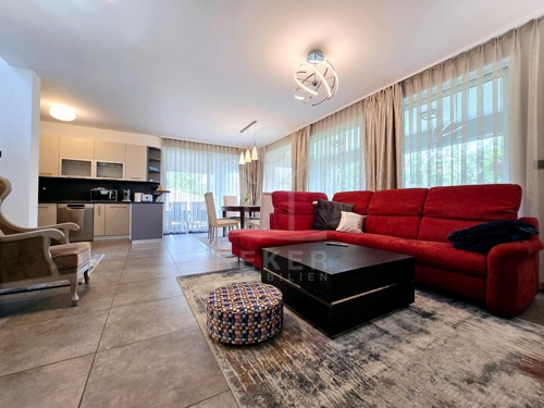 Der Garten ist ein Platz zum Genießen: Beheizter Pool, großzügige Terrasse in Holzoptik, Außendusche und gemütliche Sitzecken. Ob Sonnenliegen am Pool oder ein Abendessen unter der überdachten Terrasse – hier findet jeder seinen Lieblingsplatz. Der Kunstrasen sorgt dafür, dass der Außenbereich das ganze Jahr über gepflegt wirkt, ohne viel Arbeit. Steinmauern und Hecken schützen vor Blicken.