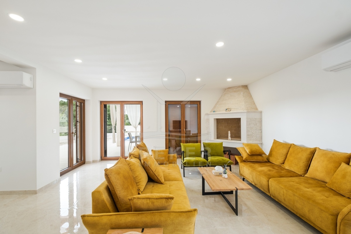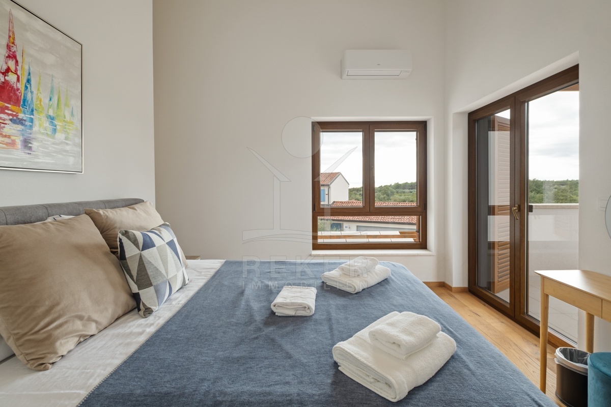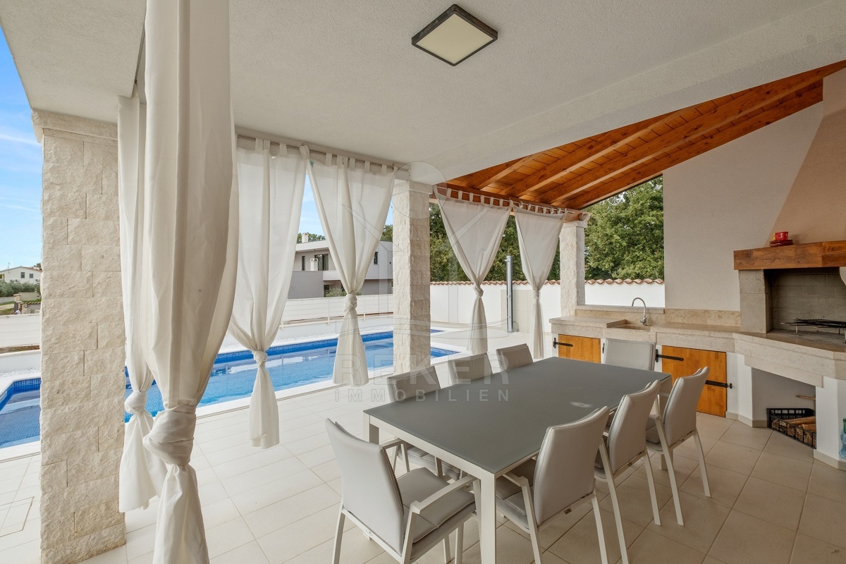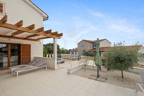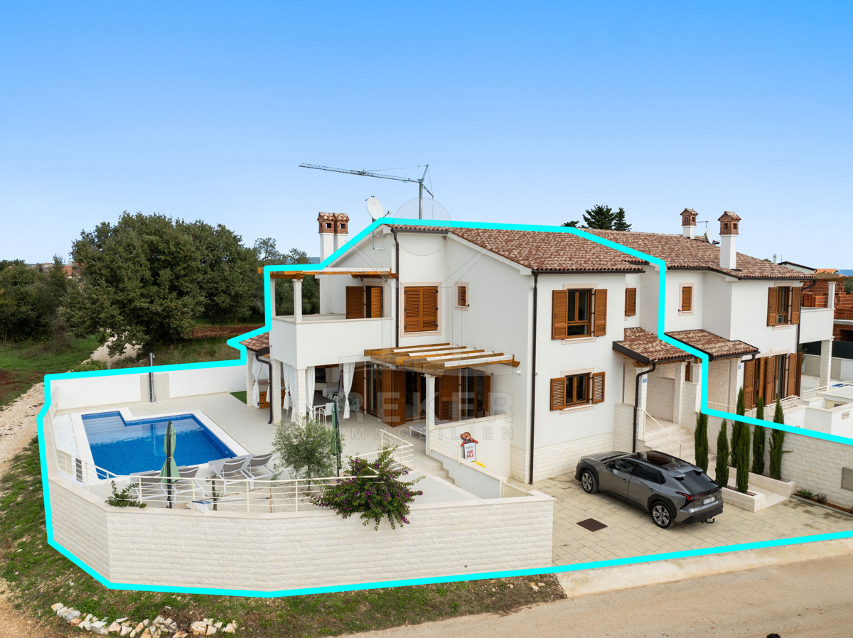 Dieses moderne Haus in Kavran, einem ruhigen Teil der Gemeinde Marčana, verbindet Komfort und Lage auf angenehme Weise. Nur 1,7 km trennen Sie vom Meer, rund 24 km von der historischen Stadt Pula. Die Umgebung ist ruhig und grün, zugleich erreichen Sie Restaurants, Sportanlagen und Einkaufsmöglichkeiten in wenigen Minuten. Drei Stellplätze befinden sich direkt vor dem Haus.