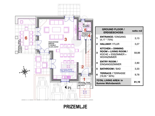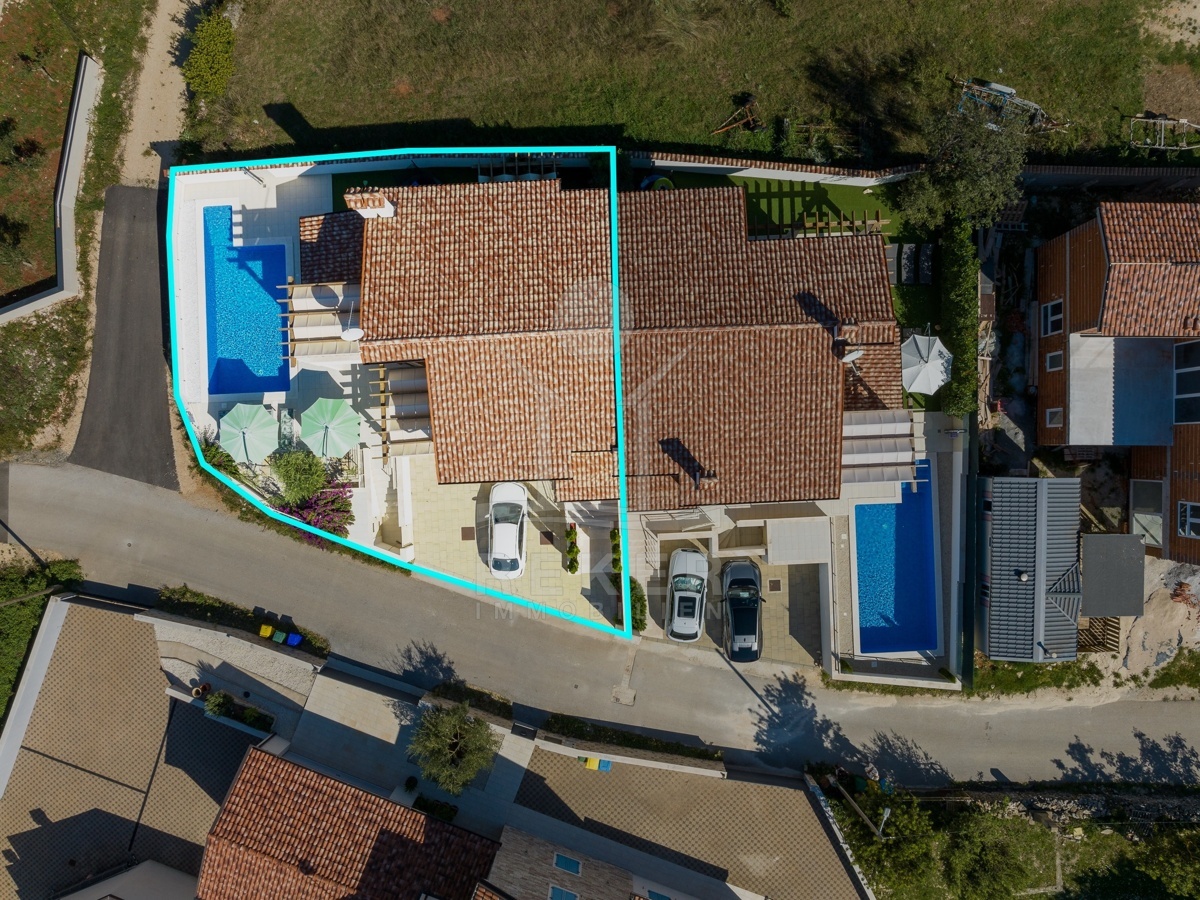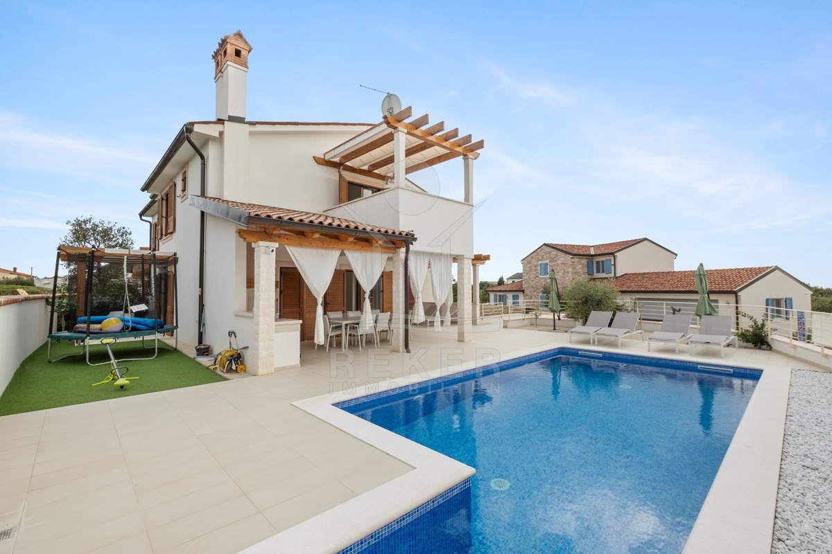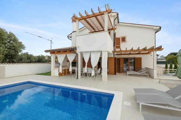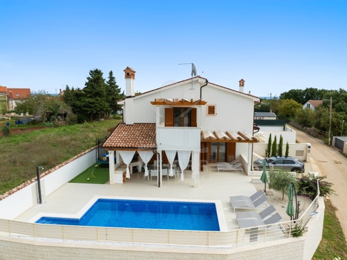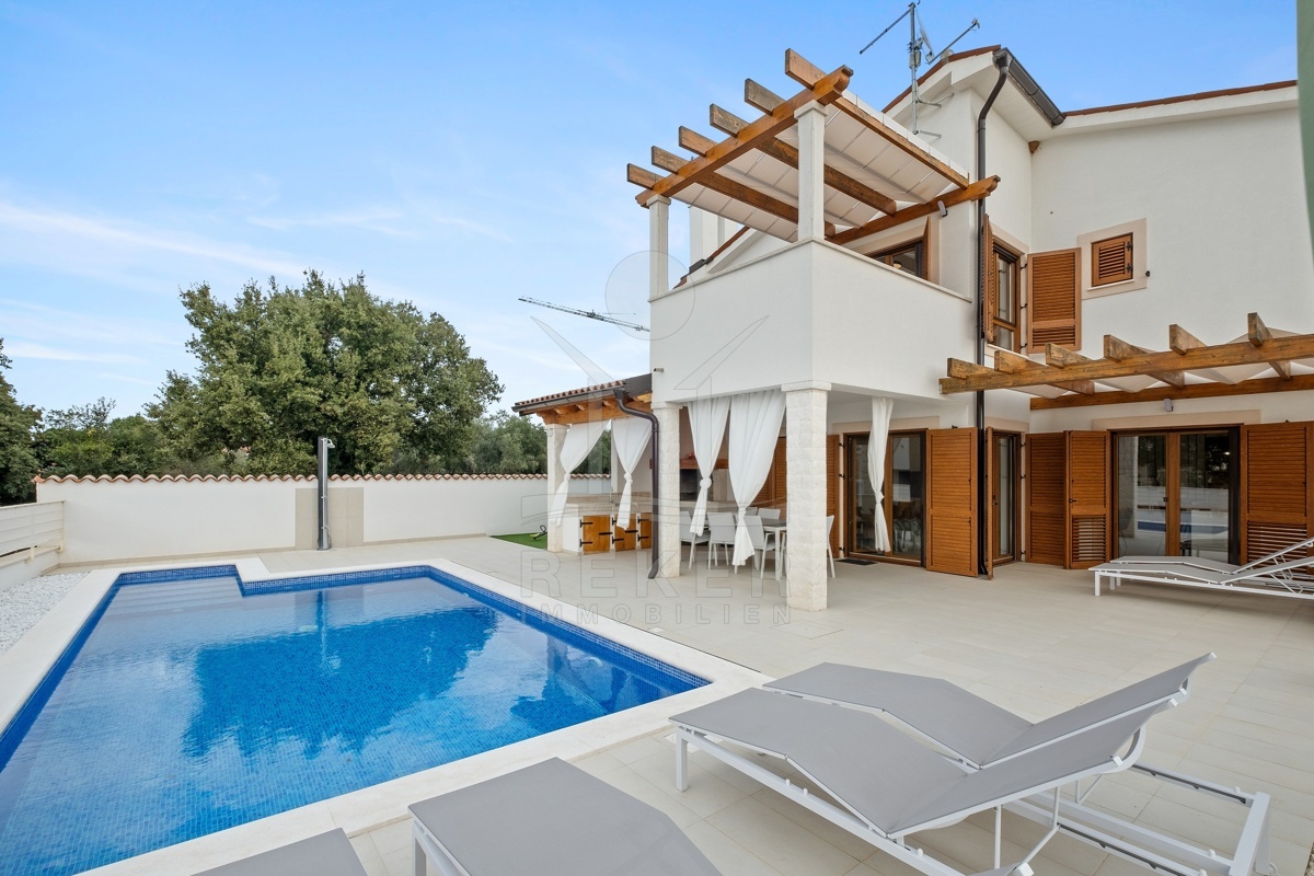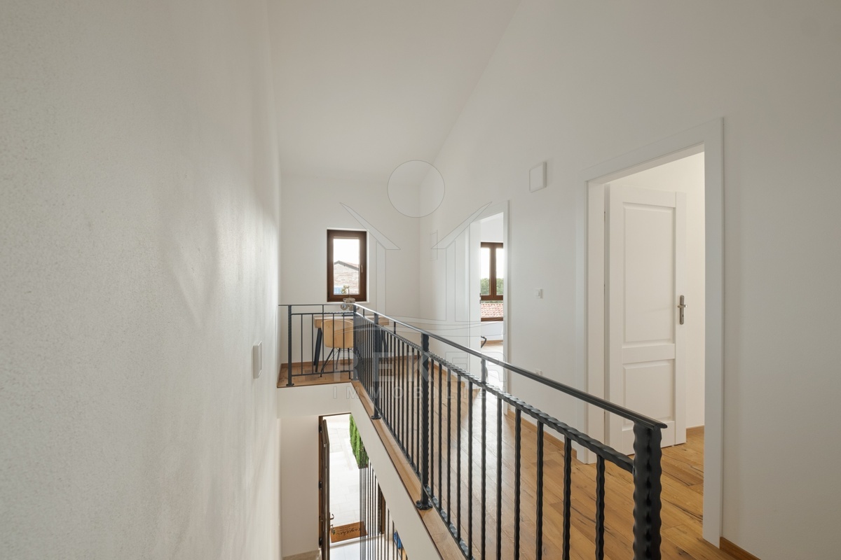 Dieses moderne Haus in Kavran, einem ruhigen Teil der Gemeinde Marčana, verbindet Komfort und Lage auf angenehme Weise. Nur 1,7 km trennen Sie vom Meer, rund 24 km von der historischen Stadt Pula. Die Umgebung ist ruhig und grün, zugleich erreichen Sie Restaurants, Sportanlagen und Einkaufsmöglichkeiten in wenigen Minuten. Drei Stellplätze befinden sich direkt vor dem Haus.