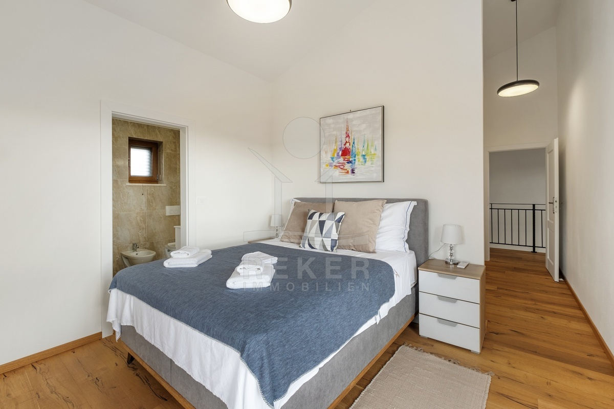 Der Neubau aus dem Jahr 2023 wurde für den Eigentümer errichtet. Massive Ziegelwände, Beton-Zwischendecken und eine gedämmte Fassade zeugen von solider Bauqualität. Dank der 4-Sterne-Kategorisierung und erwarteten Mieteinnahmen von etwa 30.000 € jährlich ist die Immobilie sowohl für Familien als auch für Investoren eine interessante Option.