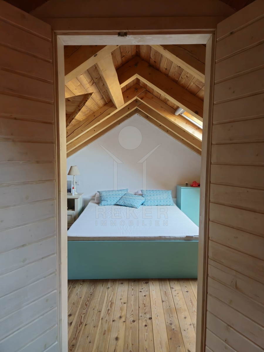 Im 1. Stock und im Dachgeschoss finden Sie eine geräumige Wohnung mit insgesamt 4 Schlafzimmern, die viel Platz für die ganze Familie bieten. Die moderne Küche und 2 separate Wohnbereiche schaffen einen offenen und einladenden Lebensraum. Die kleine Werkstatt bietet zusätzlichen Stauraum oder Platz für kreative Projekte. Eine großzügige Terrasse lädt zum Entspannen und Verweilen im Freien ein.