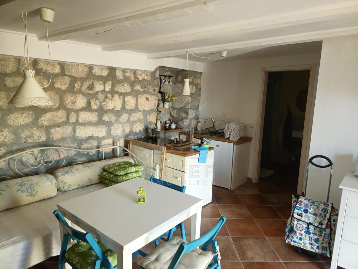 Das entzückende Steinhaus befindet sich auf der malerischen Insel Koločep, nur einen kurzen Fußweg von 100 Metern vom einladenden Strand entfernt. Eingebettet in die üppige Vegetation bietet das Haus eine ruhige Lage, die ideal für Naturliebhaber ist. Die Insel, die zur bezaubernden Region Dalmatien gehört, bietet mit ihrer geringen Fläche von nur 2,35 Quadratkilometern und etwa 150 Einwohnern einen authentischen Einblick in das Inselleben. In nur 3 km Entfernung erreichen Sie das kroatische Festland, während die bezaubernde Stadt Dubrovnik nur einen Steinwurf entfernt ist. Koločep, auch bekannt als Kalamota, lädt mit seinen charmanten Orten Donje Čelo und Gornje Čelo dazu ein, die Köstlichkeiten der dalmatinischen Küche in einladenden Lokalen zu genießen. Die Insel begeistert nicht nur mit ihren kristallklaren Gewässern und romantischen Badebuchten, sondern auch mit abenteuerlichen Wasserhöhlen, die zu Erkundungen einladen. Hier können Sie entspannen, während Sie den Duft der Pinien und Schatten der Palmen genießen, und die umliegenden Ortschaften oder die charakteristische Altstadt Kroatiens entdecken. Dieses Steinhaus ist ein wahrer Rückzugsort, perfekt für alle, die die Ruhe und Schönheit der Natur lieben und gleichzeitig die Nähe zur kulturellen Vielfalt Dubrovniks schätzen.