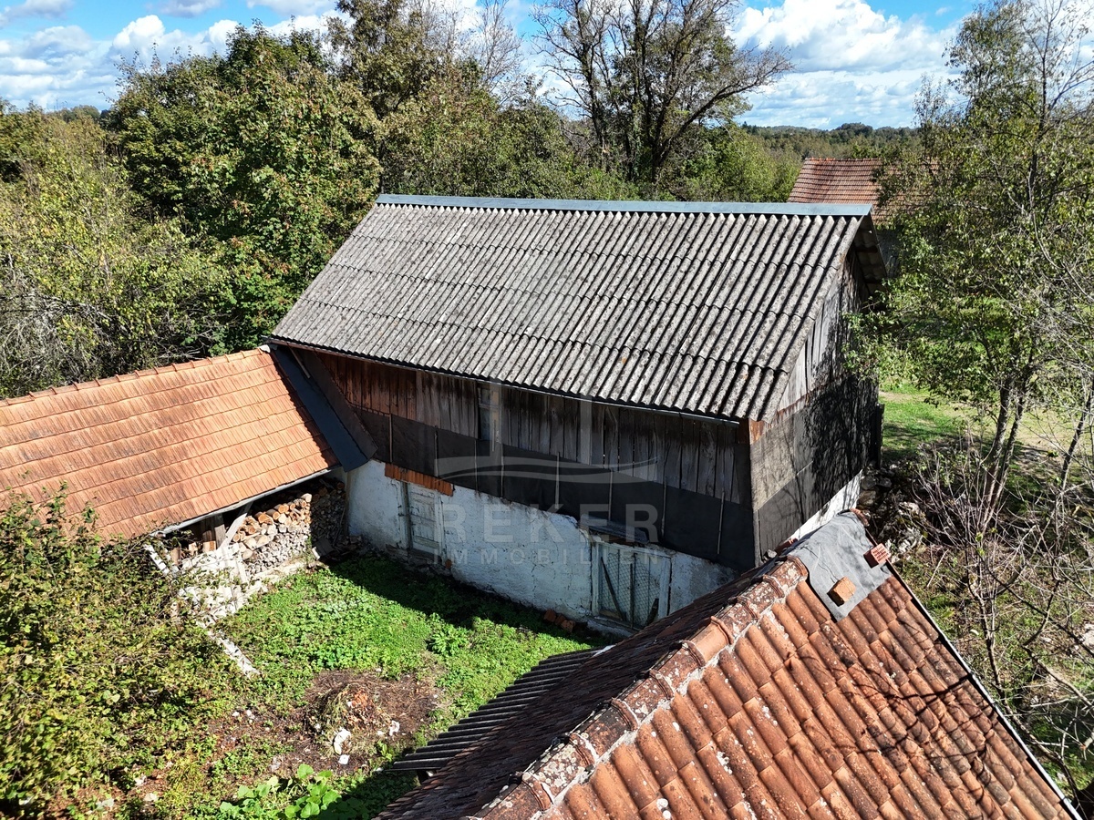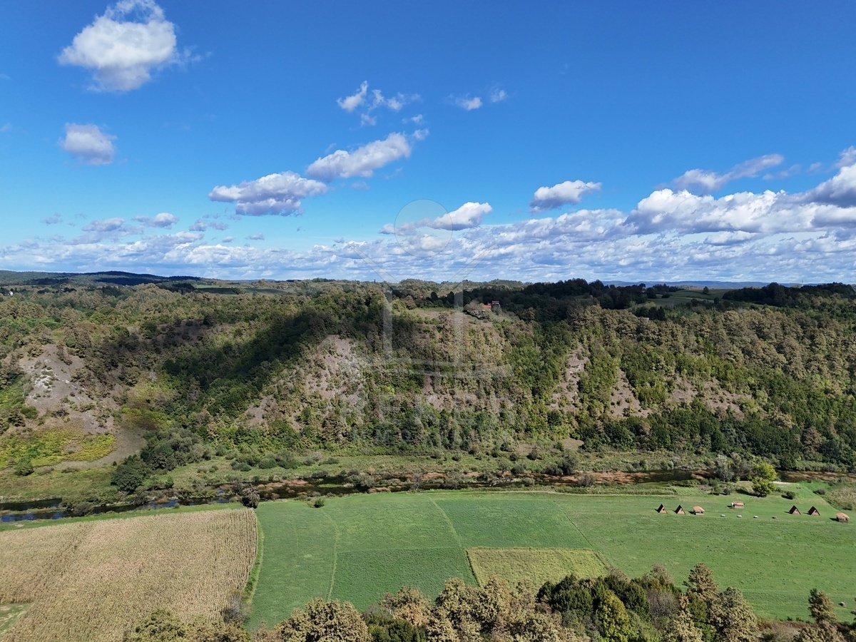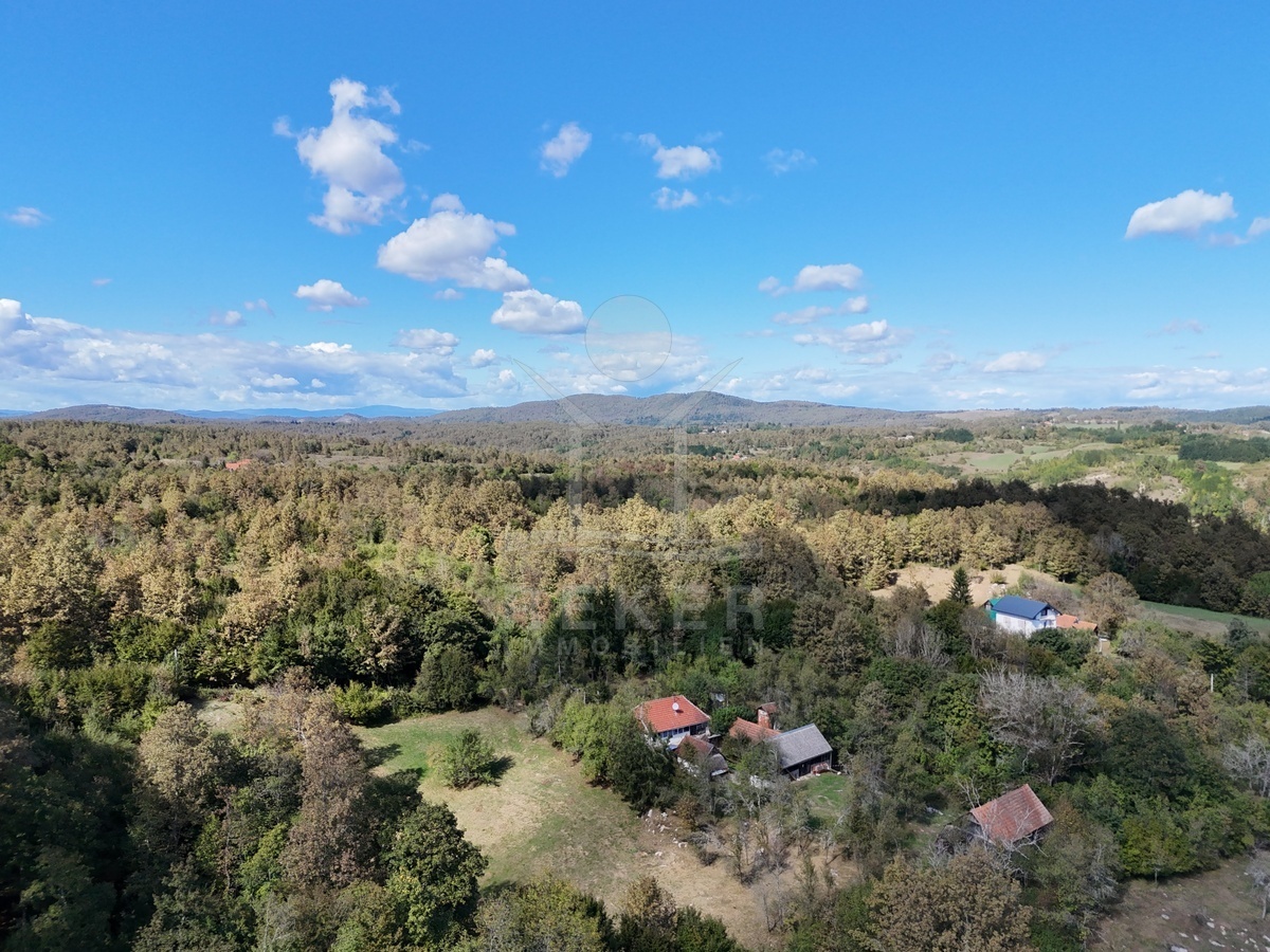 Koransko Selo, rund 700 Meter von der Korana entfernt: Hier befindet sich ein Anwesen in ruhiger, naturnaher Umgebung. Ein Ort für Menschen, die das Landleben schätzen und Privatsphäre suchen. Das Grundstück umfasst beeindruckende 91.147 m², umgeben von Wiesen und Wald. Rund 40.418 m² schließen direkt an das Haus an, davon etwa 7.800 m² in der Bauzone. Die Zufahrt über eine 4 km lange Schotterstraße sorgt für Abgeschiedenheit und Ruhe.