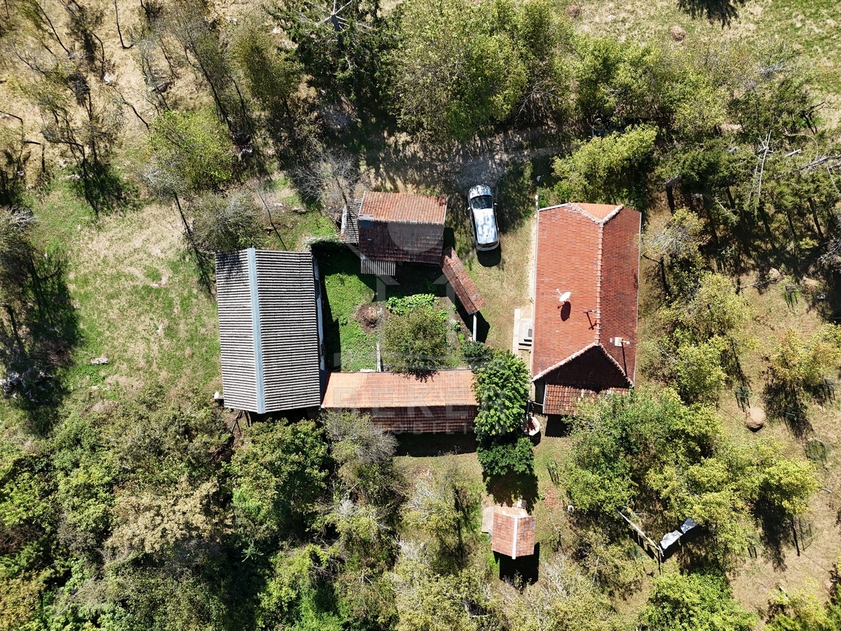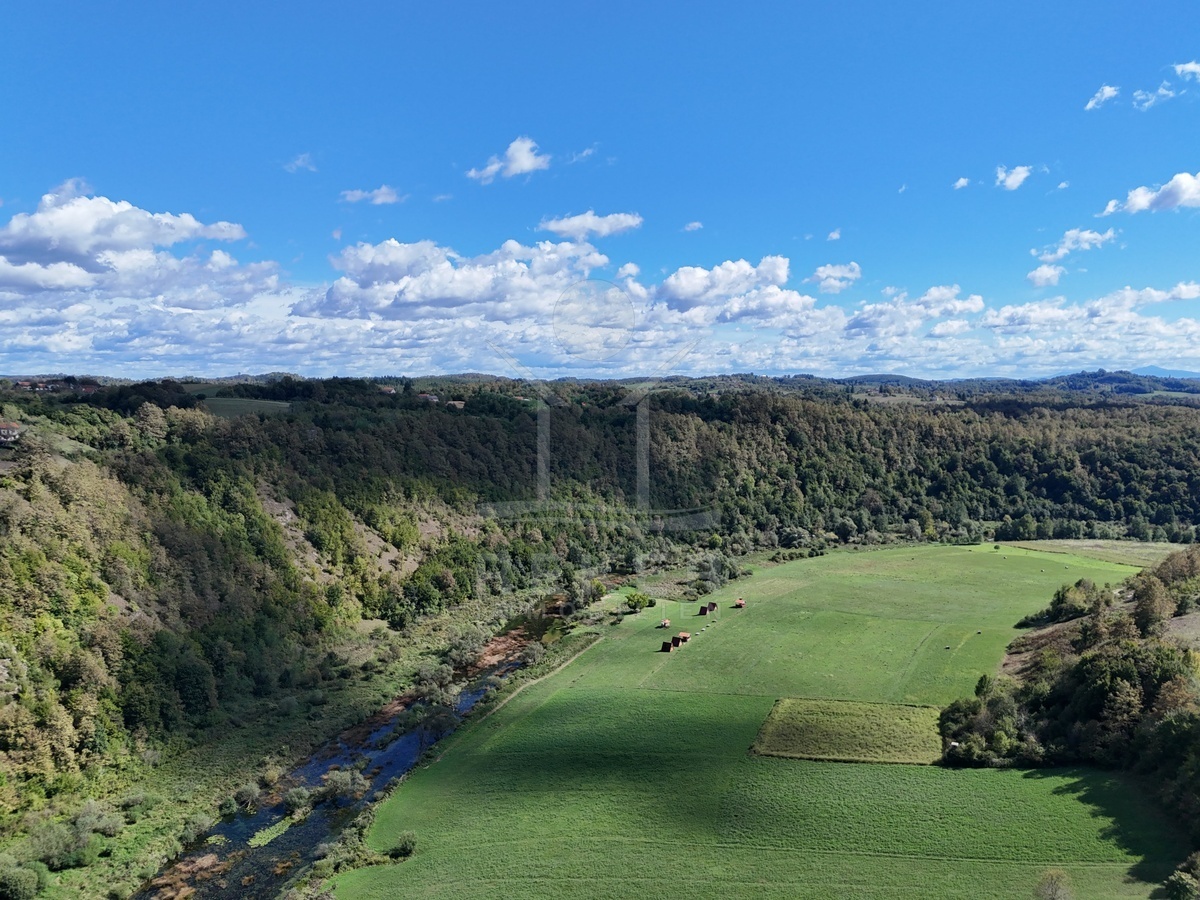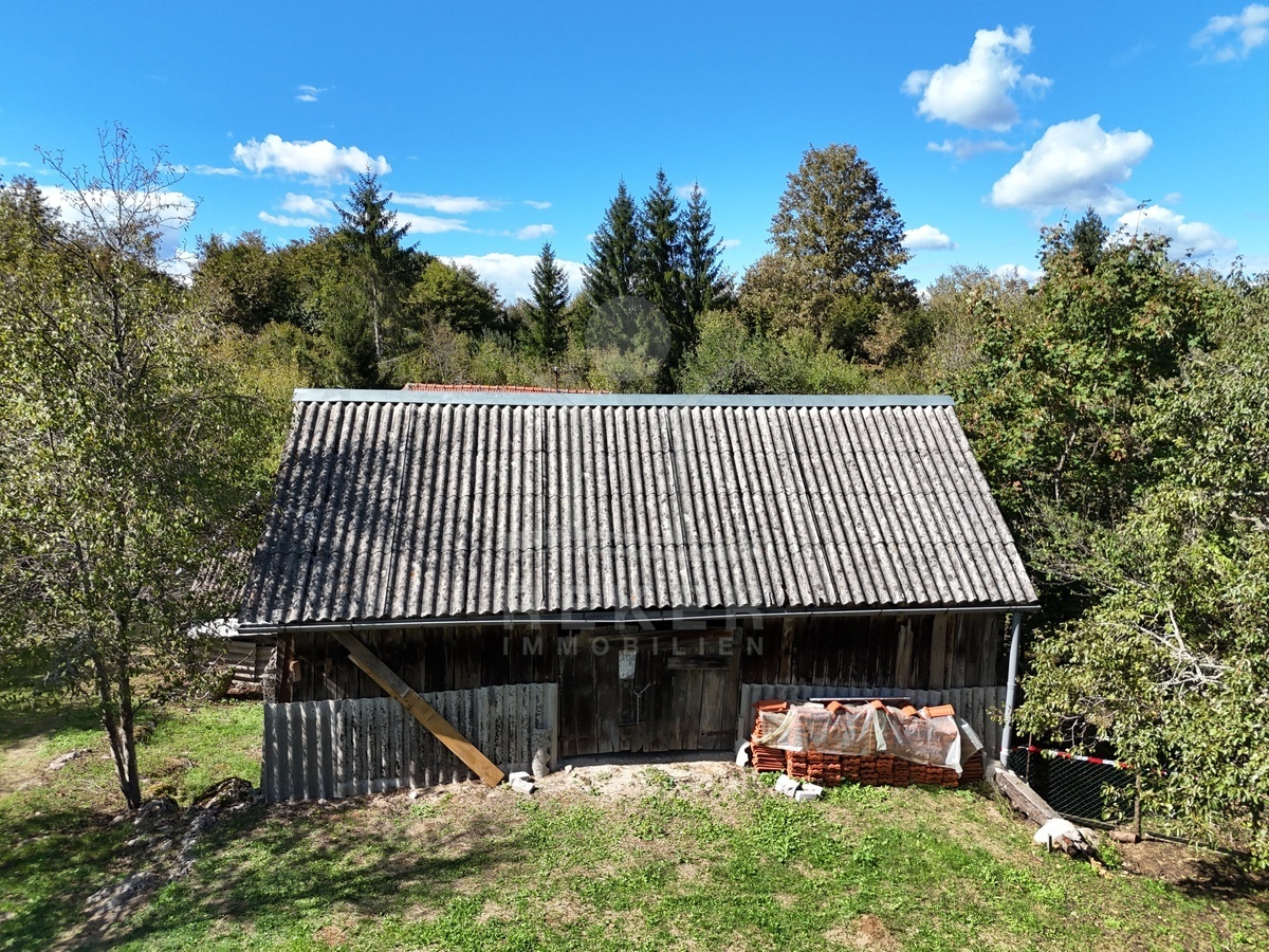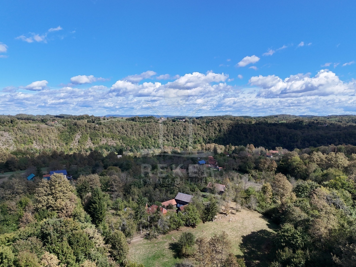 Koransko Selo, rund 700 Meter von der Korana entfernt: Hier befindet sich ein Anwesen in ruhiger, naturnaher Umgebung. Ein Ort für Menschen, die das Landleben schätzen und Privatsphäre suchen. Das Grundstück umfasst beeindruckende 91.147 m², umgeben von Wiesen und Wald. Rund 40.418 m² schließen direkt an das Haus an, davon etwa 7.800 m² in der Bauzone. Die Zufahrt über eine 4 km lange Schotterstraße sorgt für Abgeschiedenheit und Ruhe.