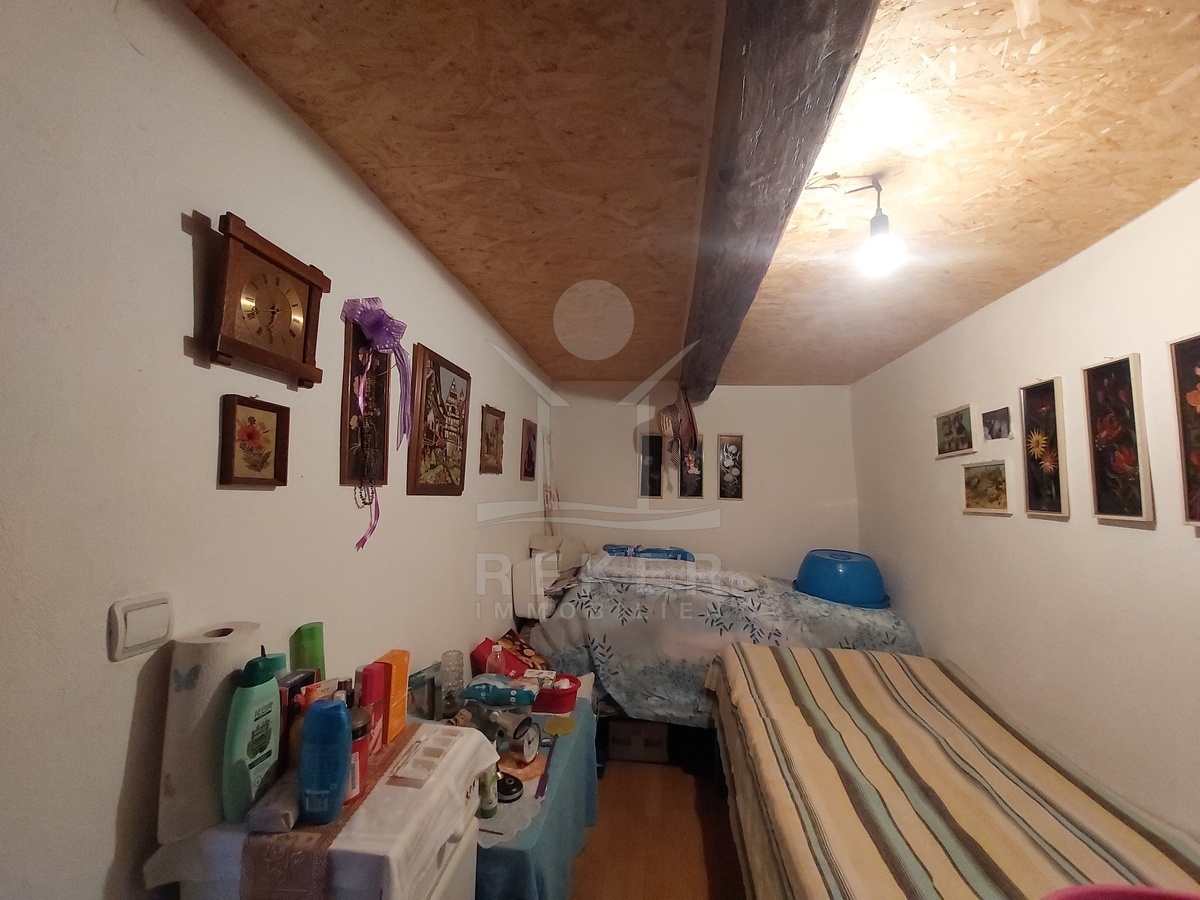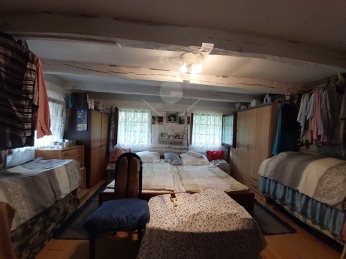 Das Haupthaus aus dem Jahr 1939 ist in Holzbauweise errichtet und verfügt über Keller, Erdgeschoss und Dachboden, der über eine Luke erreichbar ist. Auf 53 m² Wohnfläche verteilen sich drei Räume: zwei Schlafzimmer und ein Badezimmer. Laminatböden, Holzfenster (einfach oder Eco-Doppelverglasung) sowie Holztüren bestimmen das Innenbild. Beheizt wird mit einem Holzofen, das Warmwasser liefert ein Elektroboiler. Eine Regenanlage mit Pumpe versorgt das Badezimmer, Strom ist vorhanden. Die Möblierung ist im Preis enthalten.