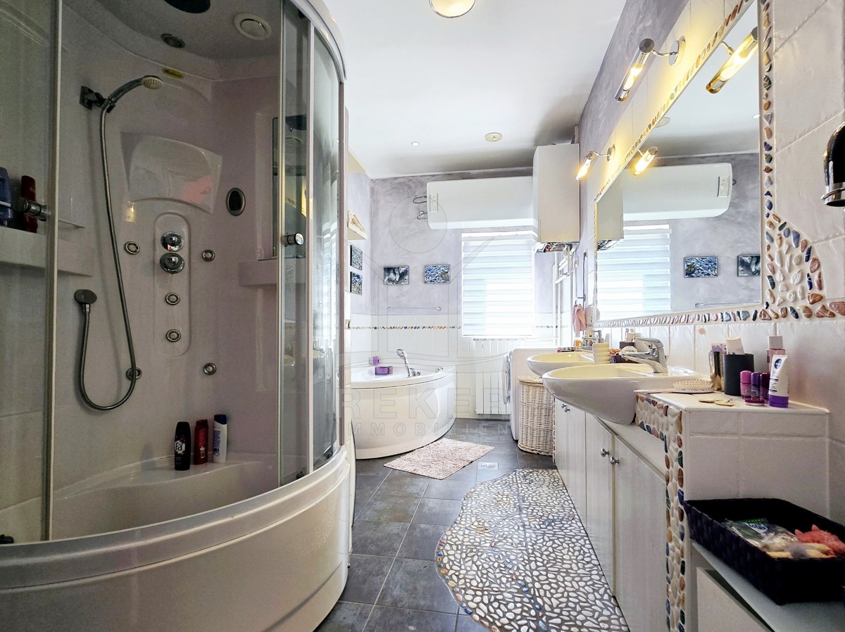 Am Ortsrand von Kostrena, eingebettet in eine grüne Hügellandschaft, wartet dieses freistehende Einfamilienhaus auf neue Eigentümer. Die Lage? Herrlich ruhig, waldnah, mit ganz viel Privatsphäre. Und der Blick: Weit über das blaue Meer, unverbaubar durch die Hanglage. Parkplätze gibt es auf dem Grundstück ausreichend. Und zum Meer? Ein zehnminütiger Spaziergang durch den Wald bringt Sie direkt zum Strand.