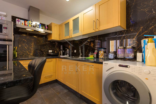 Im Inneren stehen Ihnen rund 100 m² Wohnfläche zur Verfügung. Drei Schlafzimmer, zwei Badezimmer und zwei separate Toiletten bieten ausreichend Platz. In der ersten Etage finden Sie die offene Küche, die direkt ins Wohnzimmer übergeht und Zugang zur großen Terrasse hat. Fliesen mit Fußbodenheizung sorgen für Komfort. In der zweiten Etage warten ein Schlafzimmer mit eigenem Bad sowie ein Masterschlafzimmer mit Laminatboden. Das Dachgeschoss führt Sie schließlich hinaus zur privaten Dachterrasse.