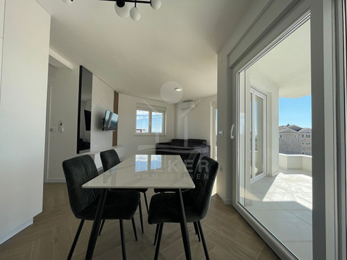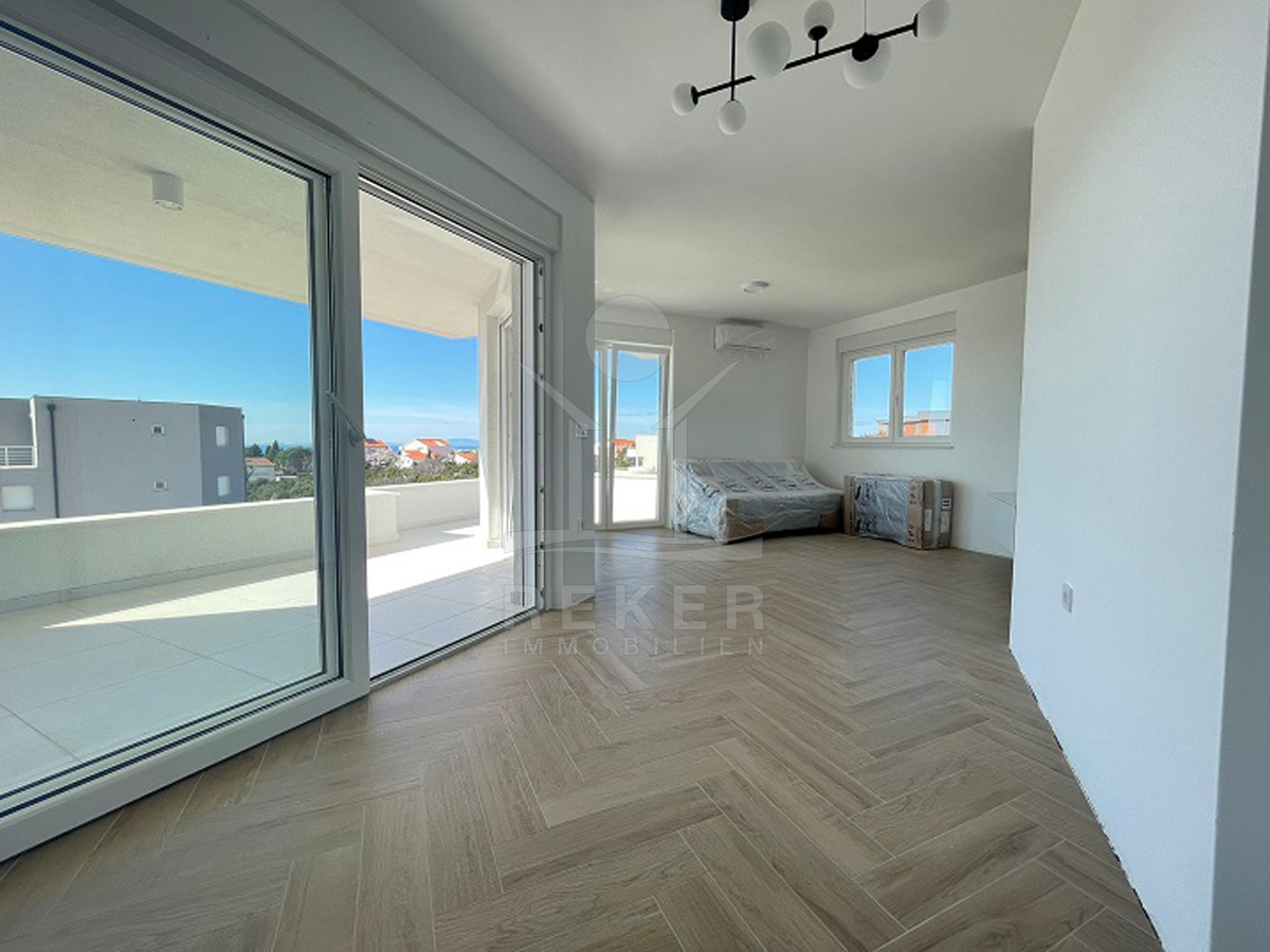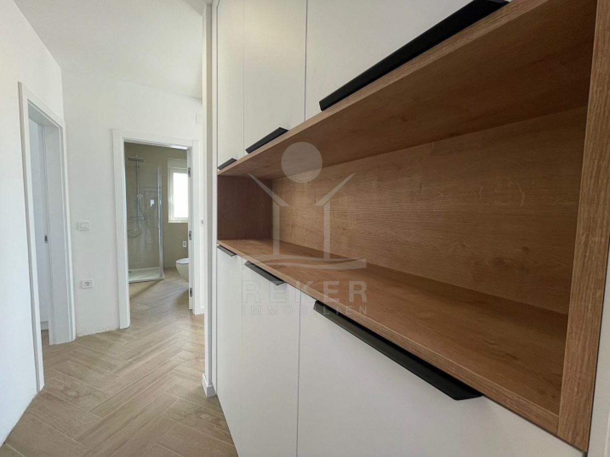 Durch die Ausrichtung nach Südwesten fällt viel Tageslicht ein, und am Abend erleben Sie schöne Sonnenuntergänge über dem Meer. Jede Wohnung hat eine großzügige Terrasse mit Blick auf die Adria. Ein besonderes Extra für alle, die das mediterrane Gefühl mögen.