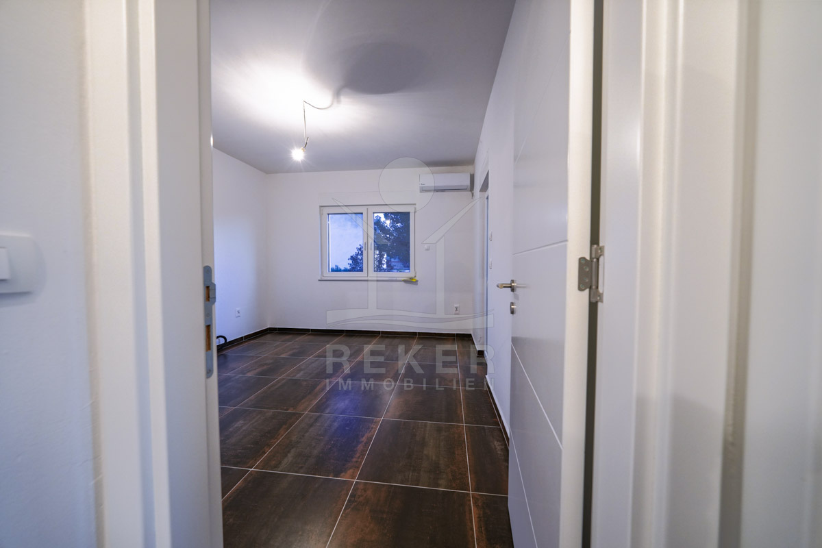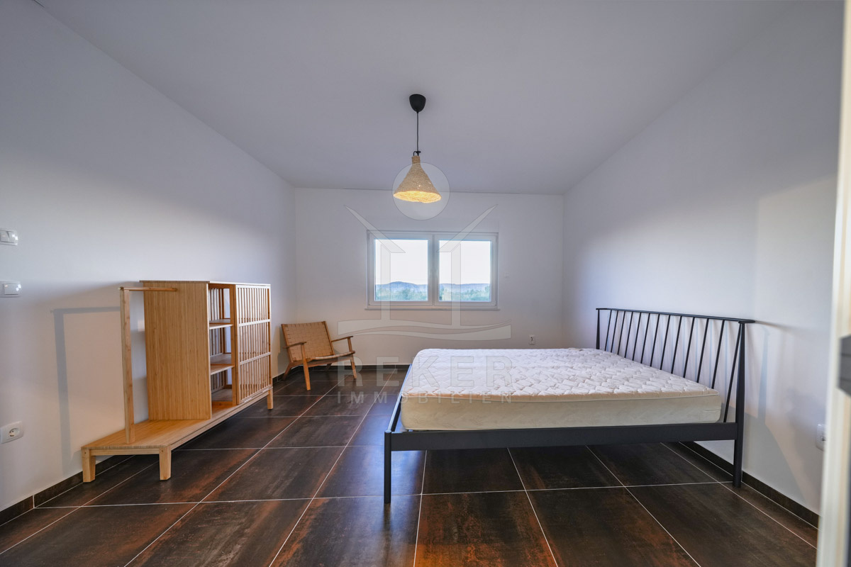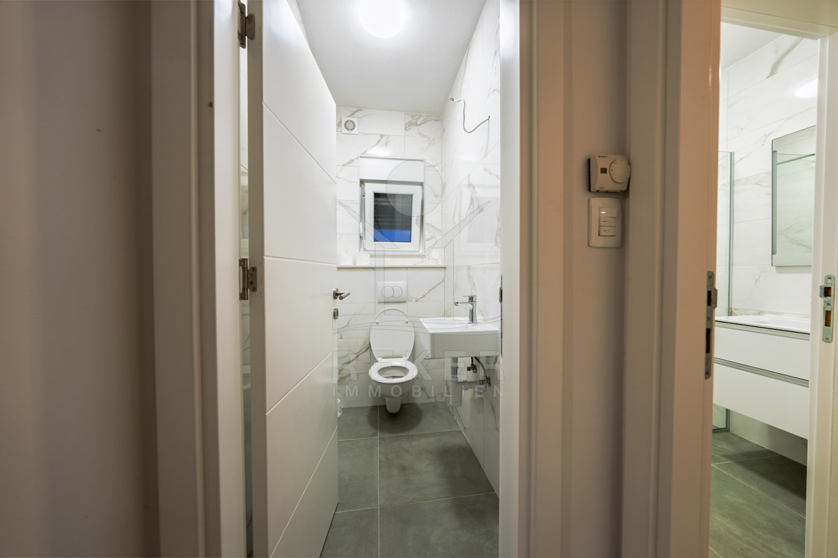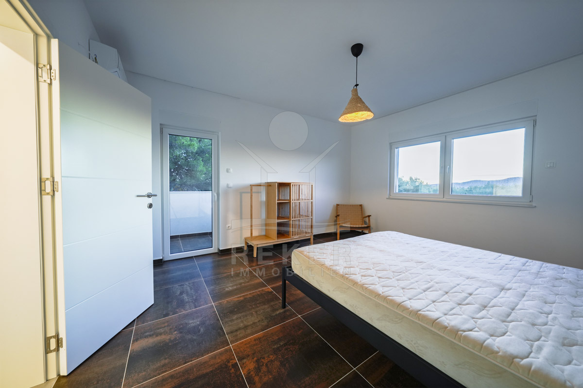 Diese moderne Villa in ruhiger, grüner Umgebung nahe Šibenik bietet alles, was man sich an der dalmatinischen Küste wünscht. Nur 500 Meter trennen Sie vom Meer. Das Grundstück mit rund 459 m² ist von einer Steinmauer umgeben und durch dichte Bepflanzung geschützt. Drei Parkplätze befinden sich vor dem Haus, im geschlossenen Hof stehen weitere Stellflächen bereit.