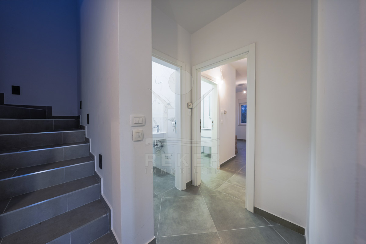 Die Wohnfläche von rund 105 m² (Erdgeschoss 75,61 m², Obergeschoss 71,13 m² plus drei Terrassen mit zusammen über 20 m²) bietet viel Platz für Familien oder Feriengäste. Der Neubau aus dem Jahr 2024 steht im Erstbezug. Solide Bauqualität, moderne Ausstattung und klare Formen verbinden sich hier zu einem harmonischen Wohnkonzept, das Ruhe, Komfort und Meeresnähe vereint.
