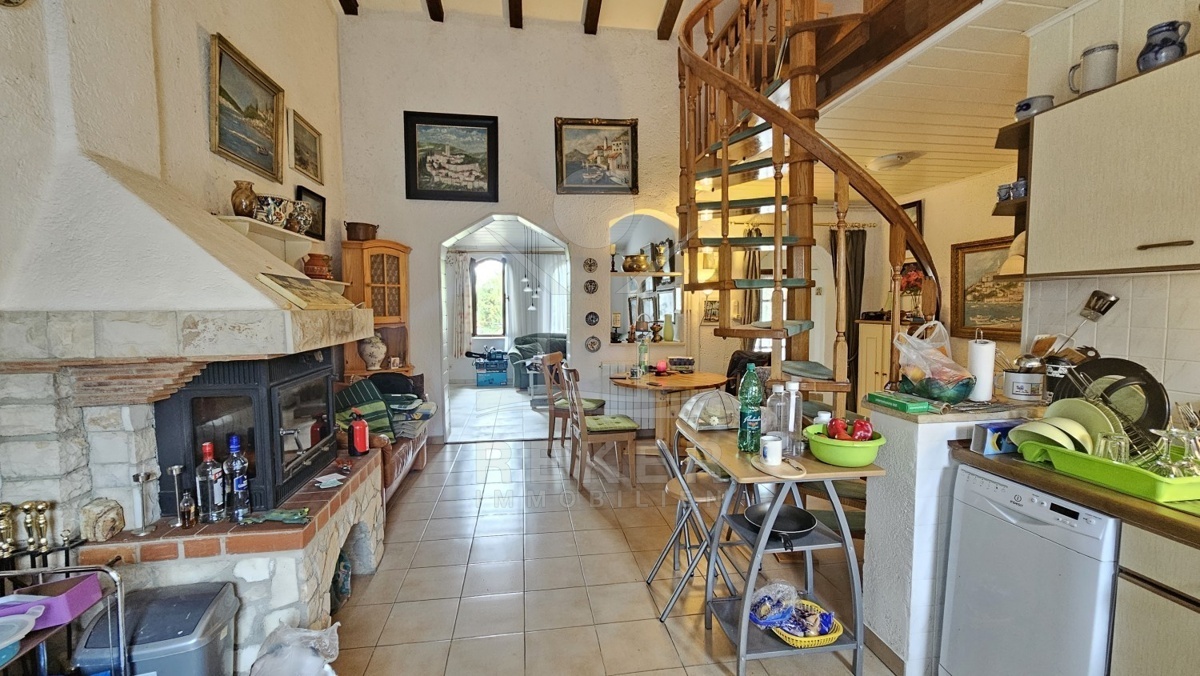Das Haus ist komplett möbliert und sofort nutzbar. Fliesenböden, Holzbalkendecken und dekorative Details schaffen eine warme mediterrane Atmosphäre. Ergänzt wird das Ganze durch einen Heizraum mit Ölzentralheizung und einen praktischen Hauswirtschafts- bzw. Abstellraum.