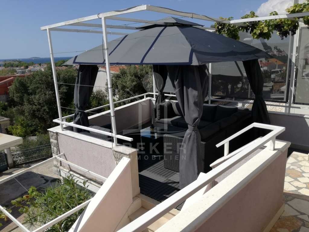 Die Terrasse der oberen Wohnung bietet einen fabelhaften Meerblick