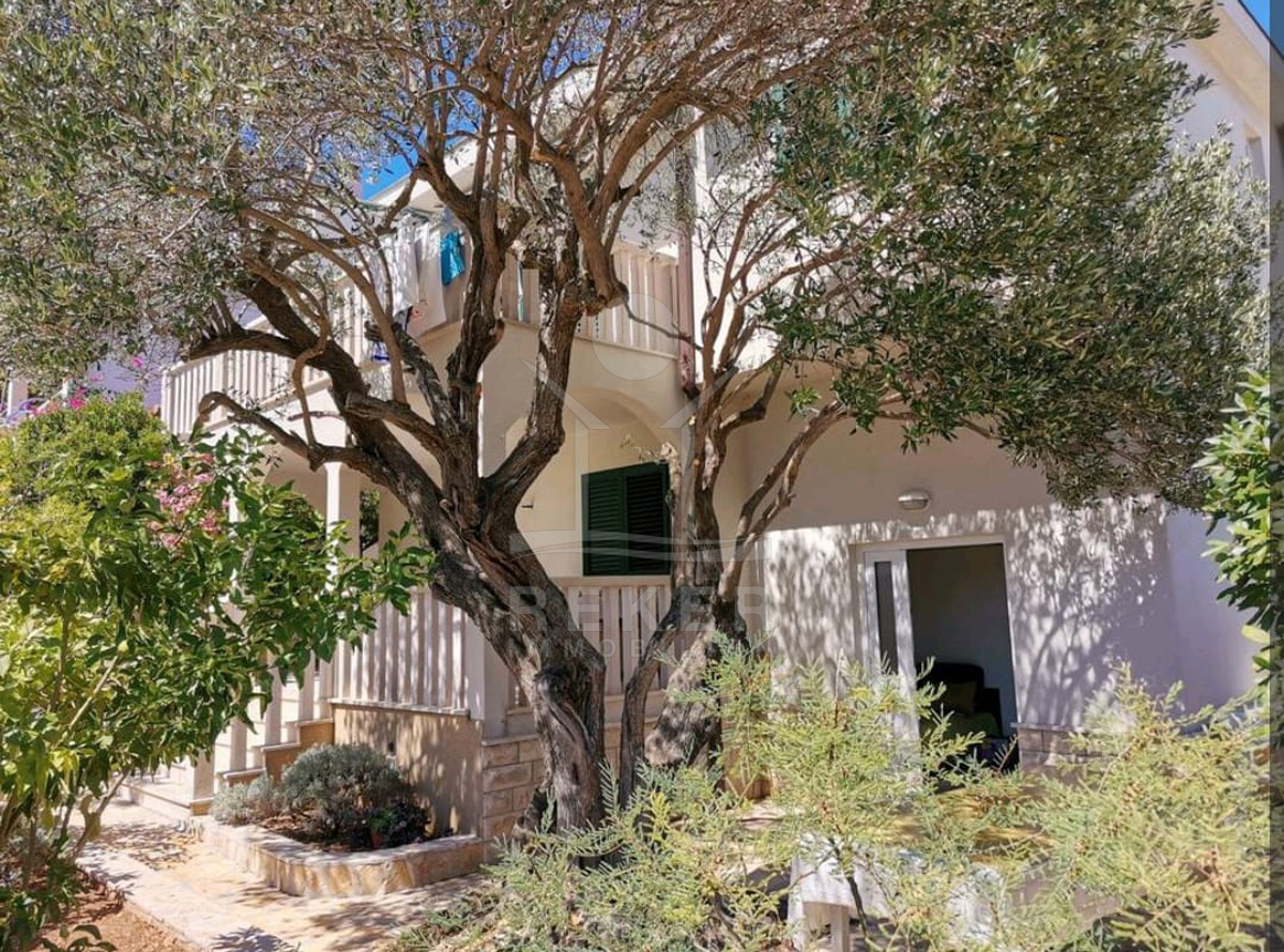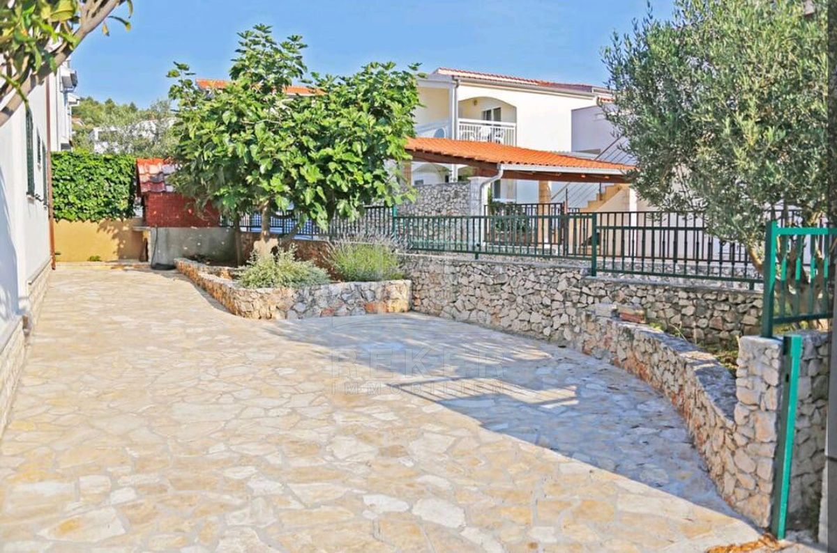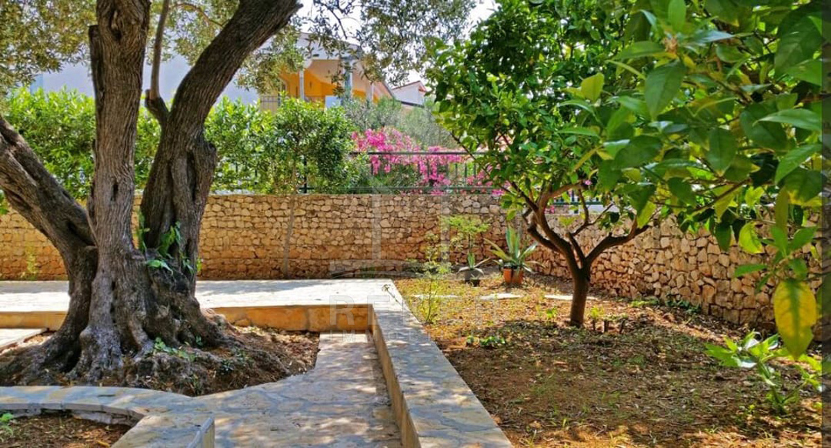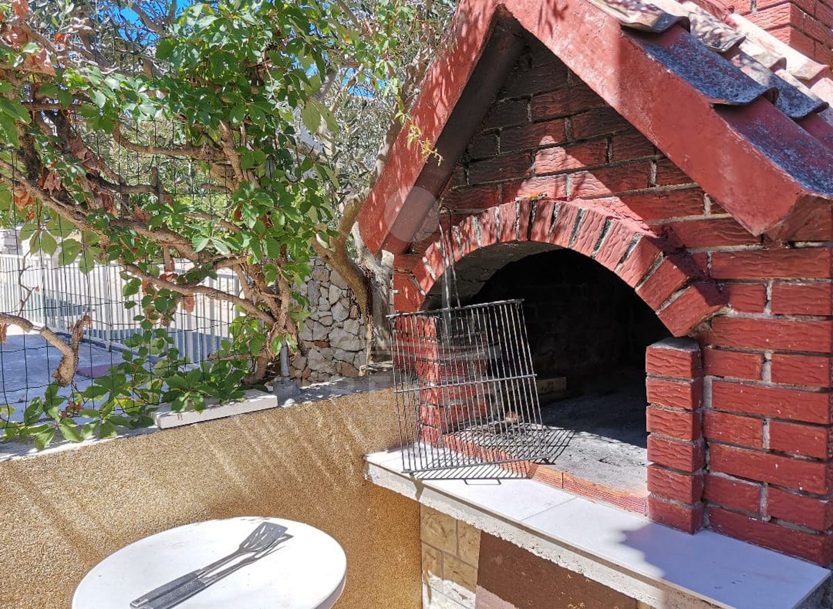 Der Außenbereich überrascht auf den ersten Blick: Ein alter Olivenbaum, ein Zitronenbaum, dazwischen mediterrane Sträucher, ein gepflegter Weg aus Naturstein. Der kleine Garten wirkt privat, eingewachsen und bietet viele schöne Ecken zum Zurückziehen. Besonders charmant ist der überdachte Essplatz im Freien. Direkt daneben ein gemauerter Grill … ganz klassisch dalmatinisch. Der ideale Platz für warme Sommerabende.