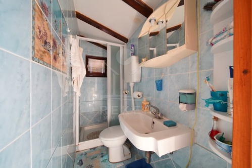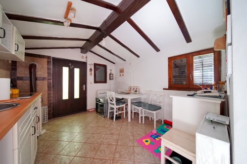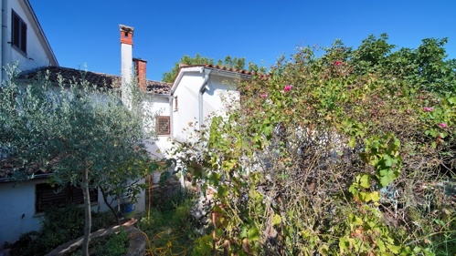 Im Inneren bieten zwei funktional gestaltete Wohnungen insgesamt vier Schlafzimmer. Holzfenster mit traditionellen Läden unterstreichen den istrischen Stil. Eine Öl-Zentralheizung mit Heizkörpern sorgt für ein angenehmes Raumklima. Das Gebäude wurde um 1900 errichtet und 1970 erweitert, wodurch es seinen ursprünglichen Charakter bewahrt hat.