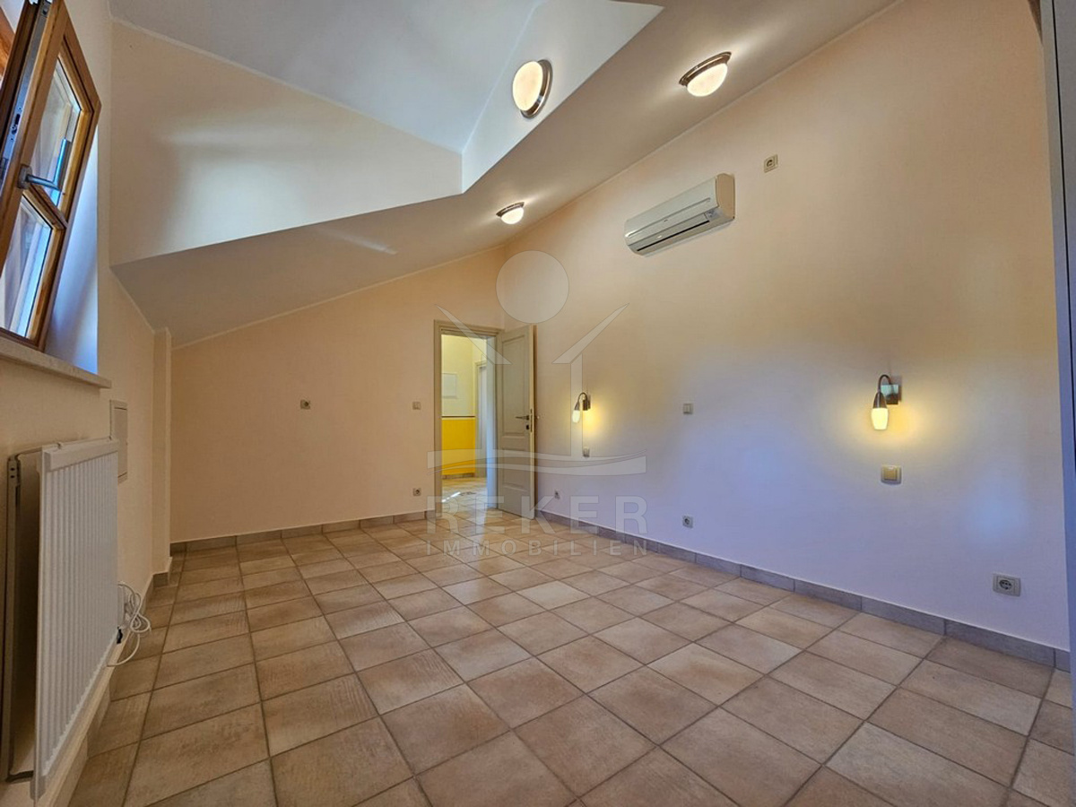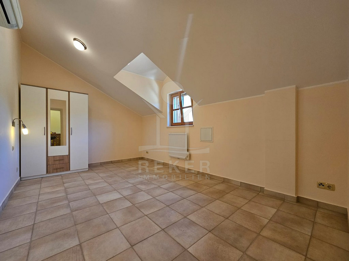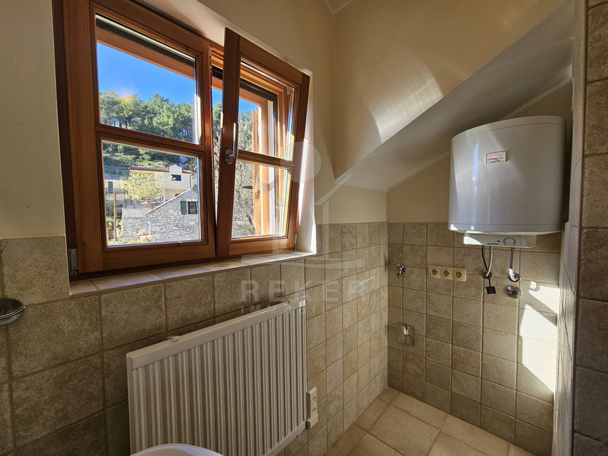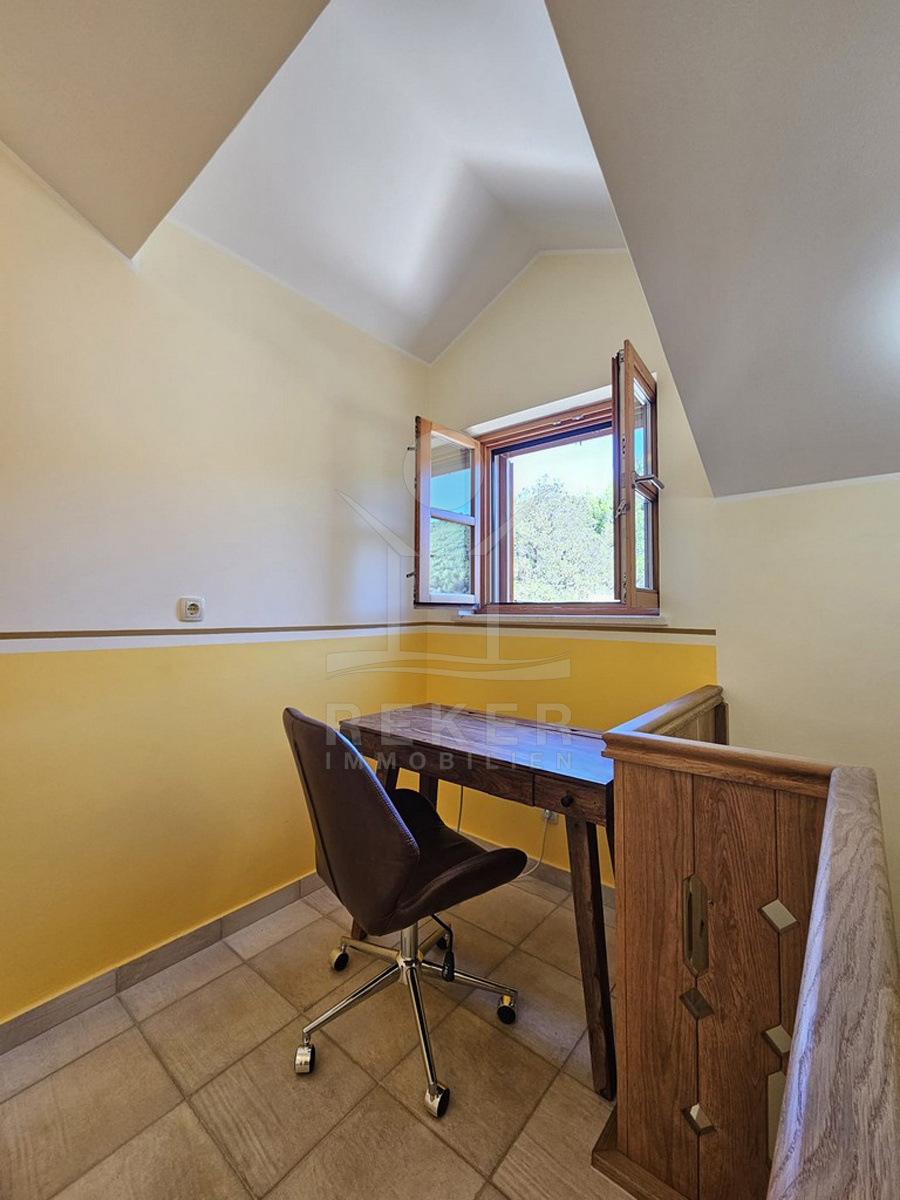 Die rund 150 m² Wohnfläche verteilen sich klar strukturiert auf drei Ebenen. Im Erdgeschoss erwarten Sie ein Flur, ein WC, eine Küche mit Essbereich und das Wohnzimmer. Von der Küche aus treten Sie direkt in den Hinterhof, kurze Wege im Alltag. Im ersten Obergeschoss befindet sich das Hauptschlafzimmer mit großem Badezimmer, separatem WC und Zugang zur Terrasse mit Blick auf den Hinterhof und Skradin. Im Dachgeschoss stehen zwei weitere Schlafzimmer, ein Badezimmer, ein WC sowie ein Flur mit integriertem Arbeitsbereich zur Verfügung.