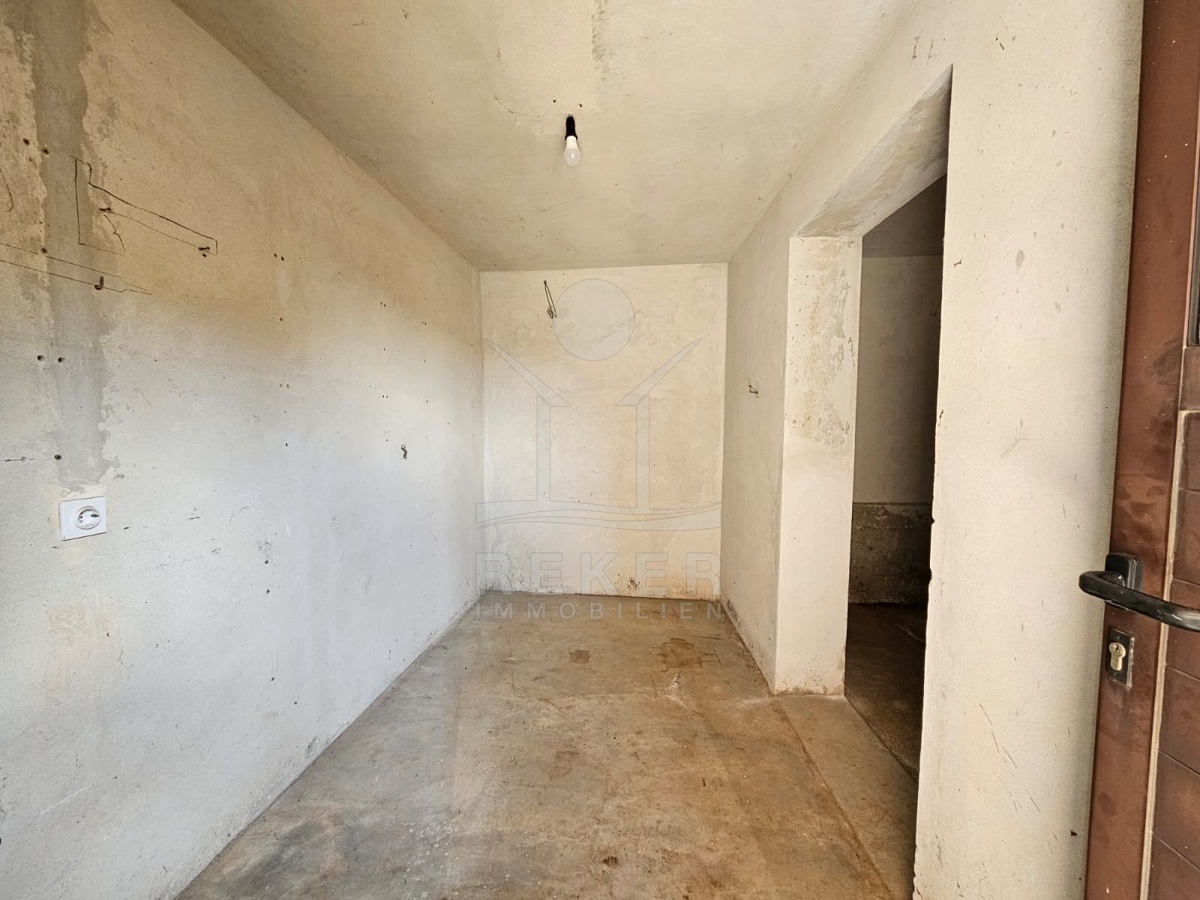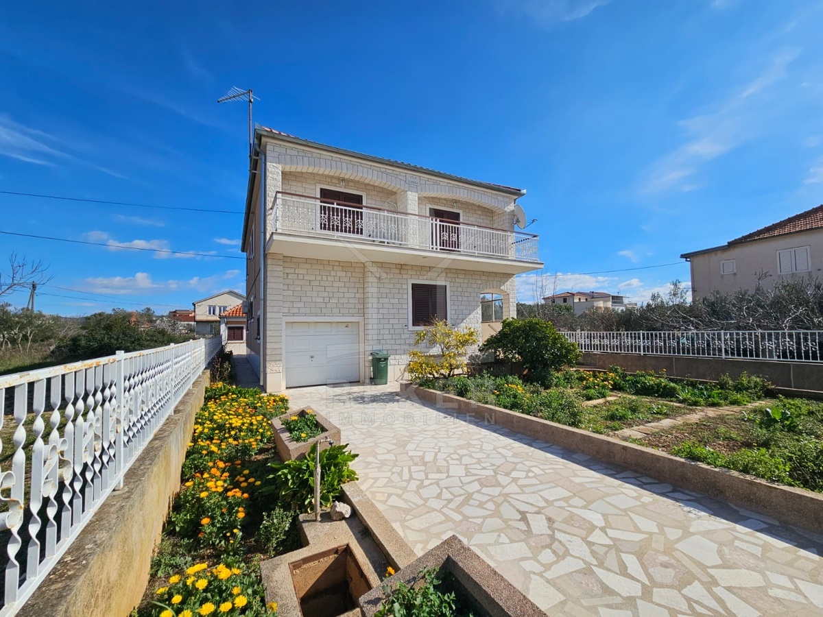 Nur 120 Meter vom Meer entfernt steht dieses freistehende Haus in ruhiger Lage nahe Šibenik. Es befindet sich im Zentrum einer gepflegten Siedlung. Den angelegten Strand erreichen Sie nach rund 250 Metern. Das Grundstück umfasst 400 m² und bietet angenehme Proportionen. Ihr Fahrzeug parken Sie im Hof oder in der etwa 14 m² großen Garage.