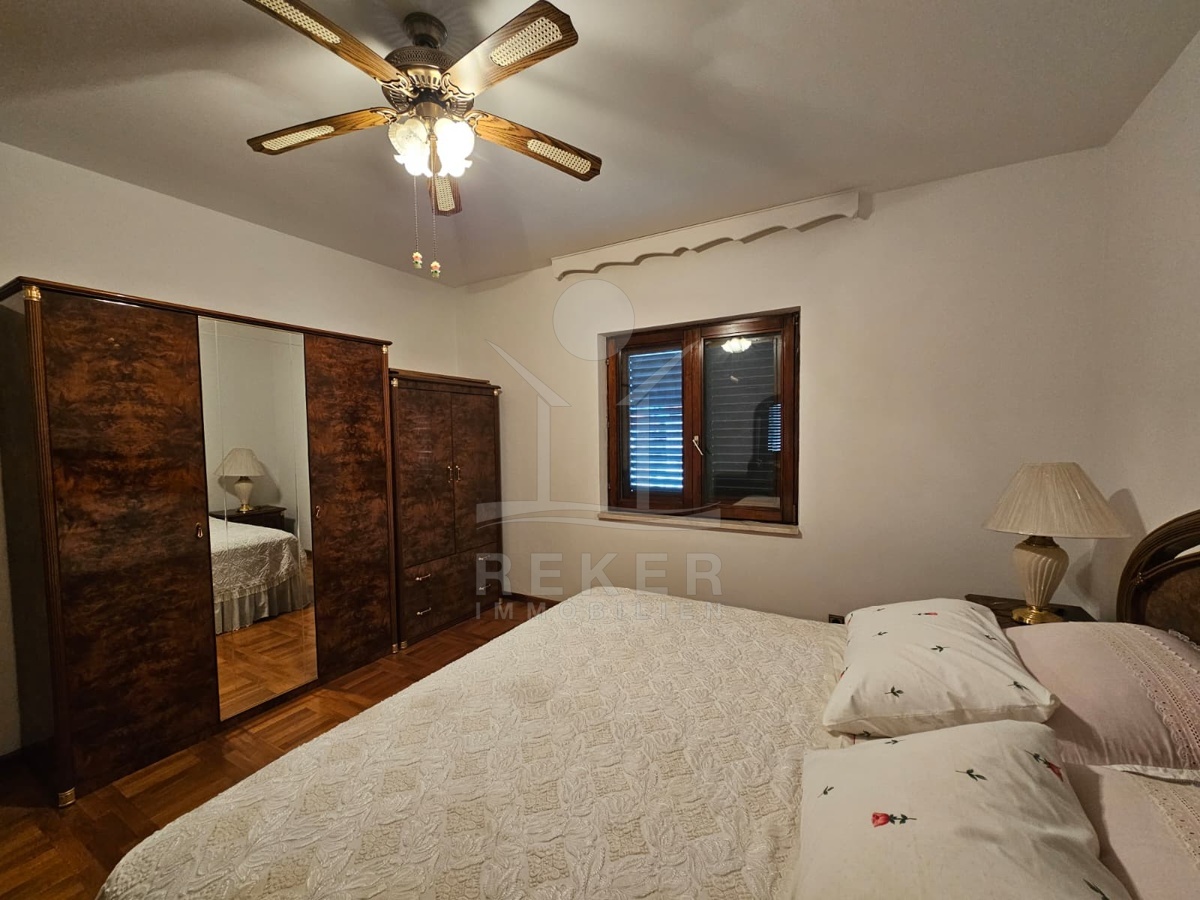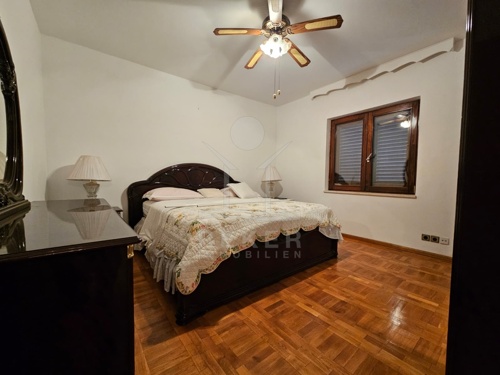 Die Wohnfläche von 205 m² verteilt sich auf zwei getrennte Einheiten. Im Erdgeschoss steht Ihnen eine 90 m² große Zweizimmerwohnung zur Verfügung. Über die Innentreppe gelangen Sie ins Obergeschoss. Dort erwartet Sie eine großzügige Zweizimmerwohnung mit 105 m² und Zugang zur Terrasse mit Meerblick. Das Haus stammt aus dem Jahr 1991. Es ist eingerichtet, gepflegt und bezugsbereit. Eine Renovierung eröffnet Ihnen zusätzlichen Gestaltungsspielraum. Alle Räume sind klimatisiert.