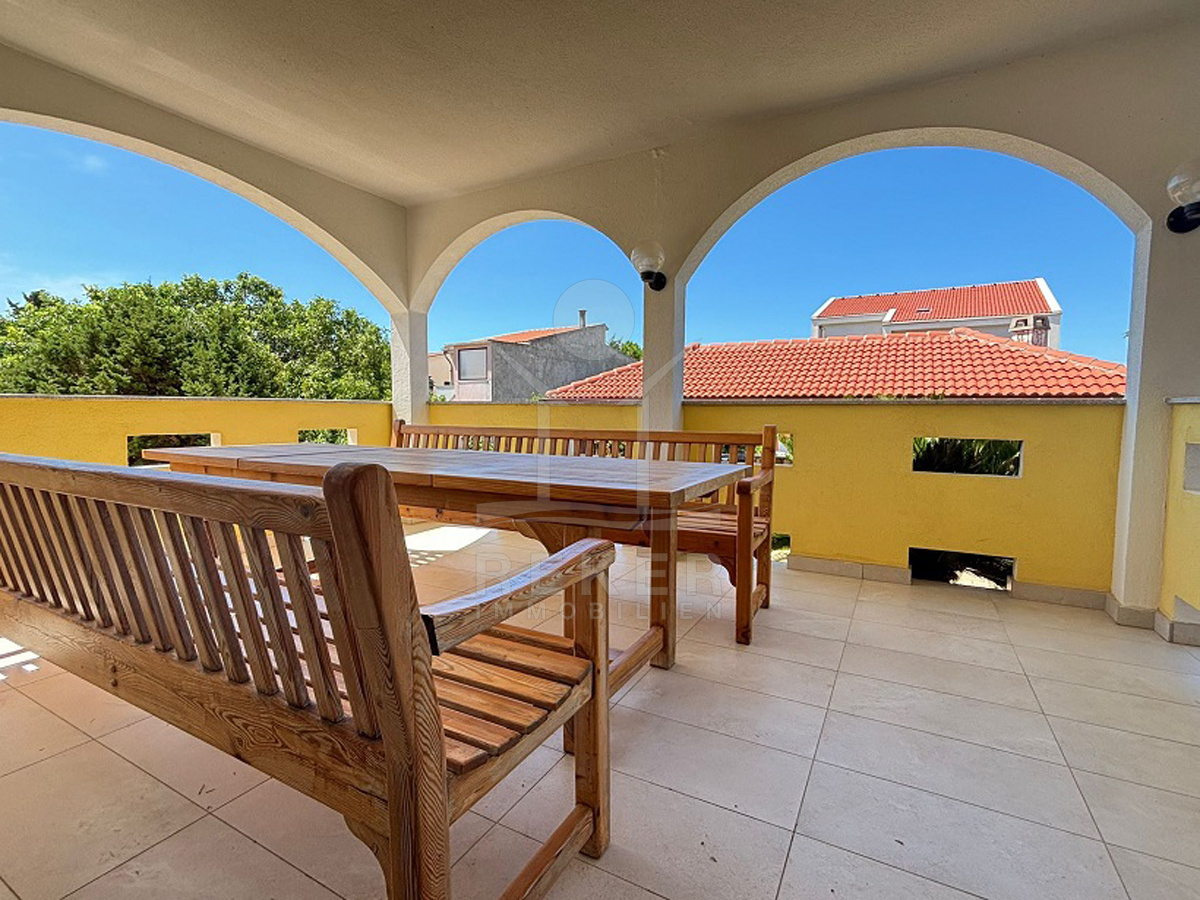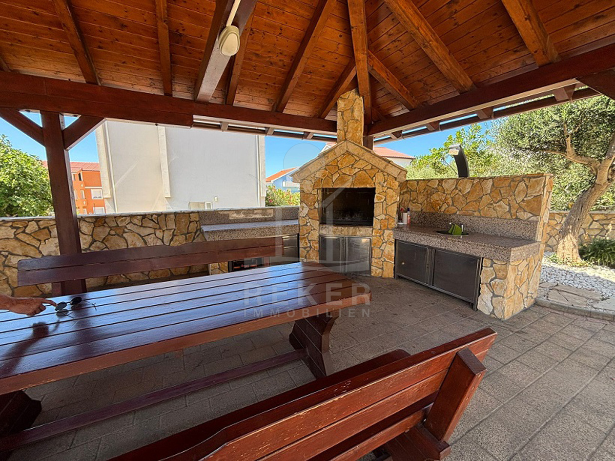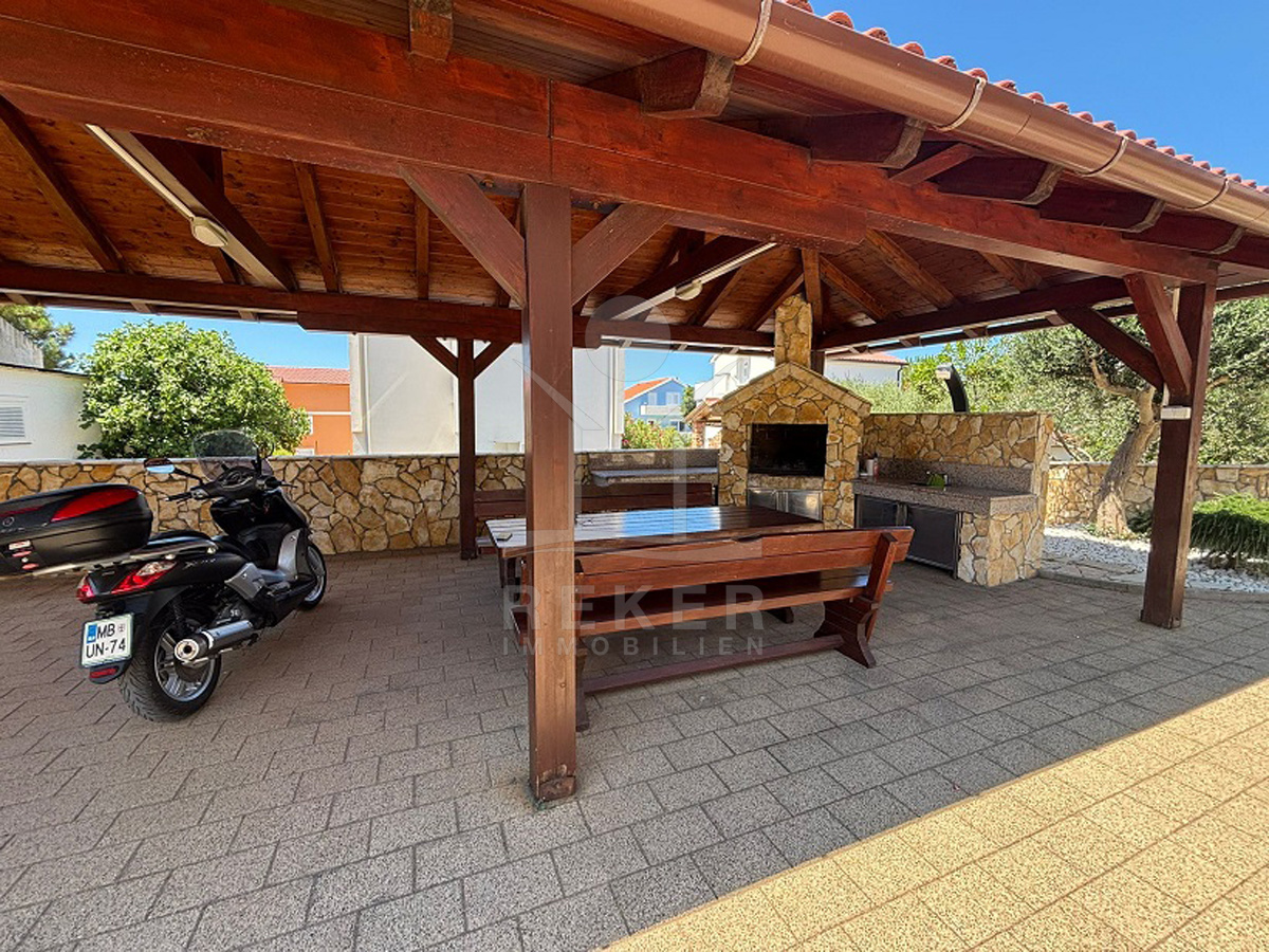 Stara Novalja, ruhig gelegen in einer Seitenstraße, rund 300 Meter vom Meer entfernt. Der beliebte Sandstrand Planjka ist ebenfalls bequem in ein paar Minuten zu Fuß erreichbar – etwa 450 Meter. Das Wohnhaus steht auf einem eigenen Grundstück. Direkt gegenüber: ein zweites Grundstück mit Garage, im Preis inklusive. Südwestliche Ausrichtung. Das bedeutet: Sonne bis zum Abend, vor allem im Garten und auf den Terrassen.