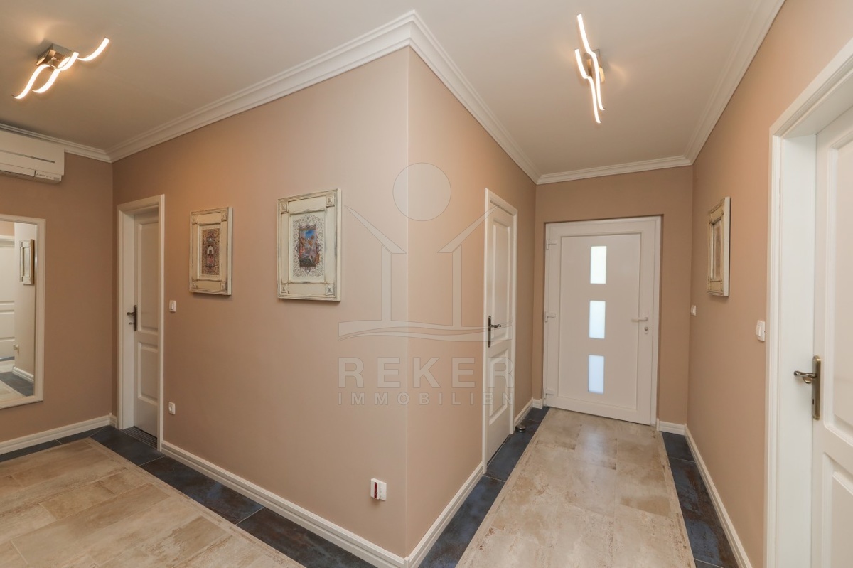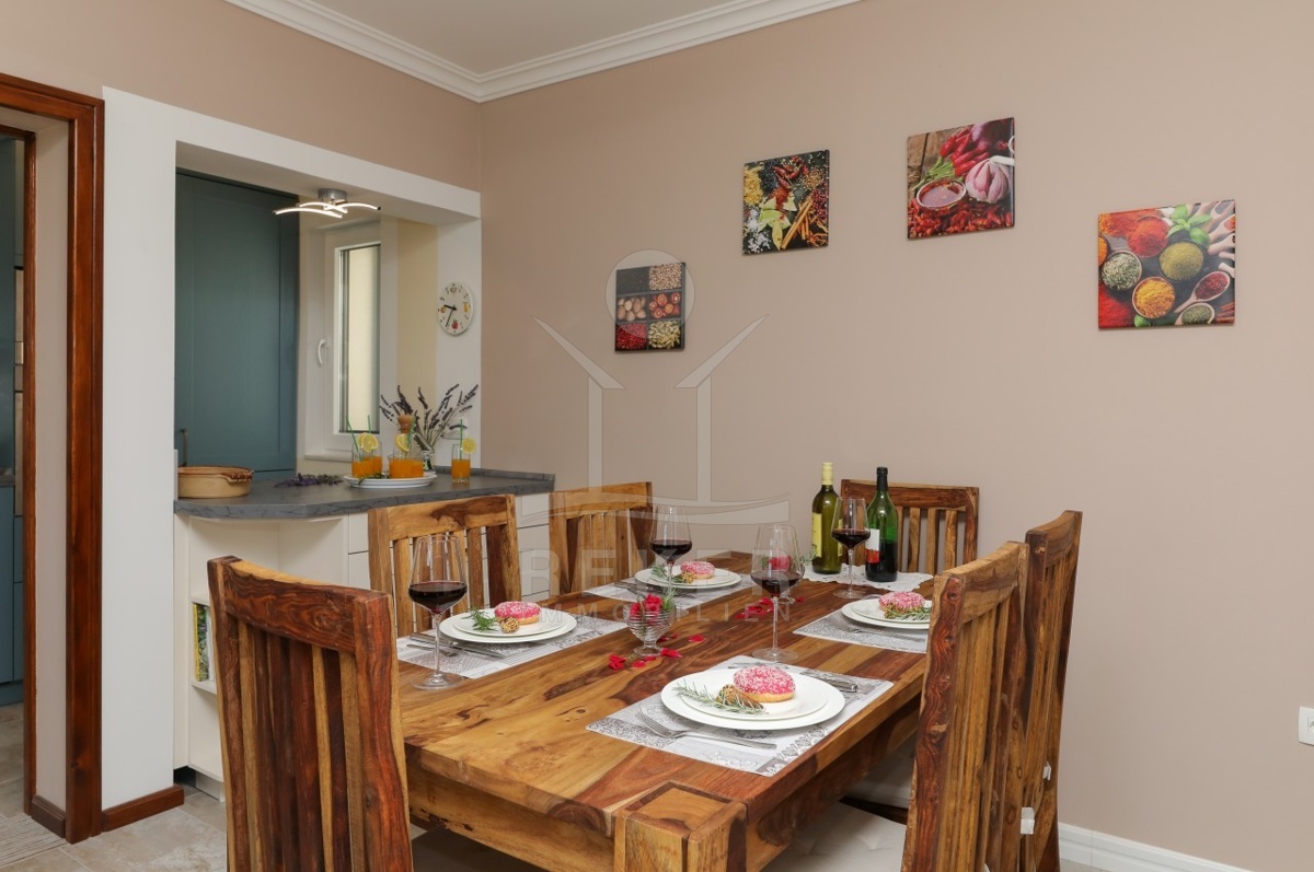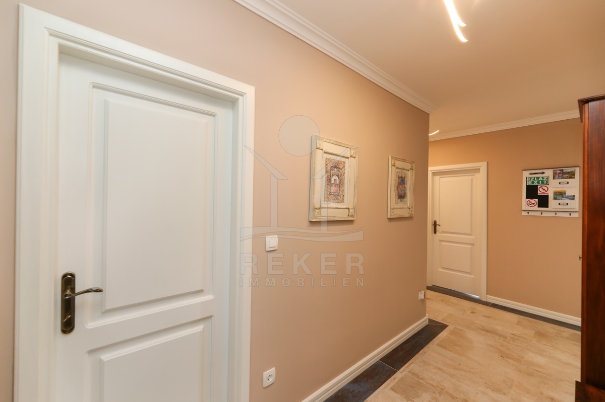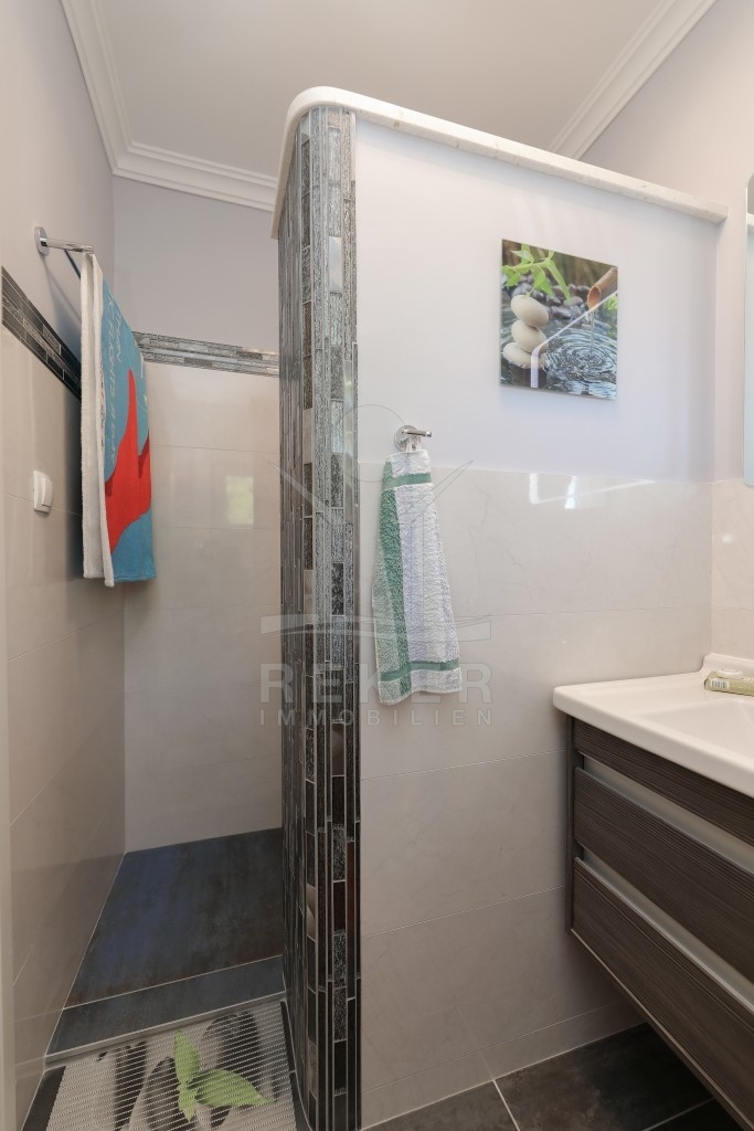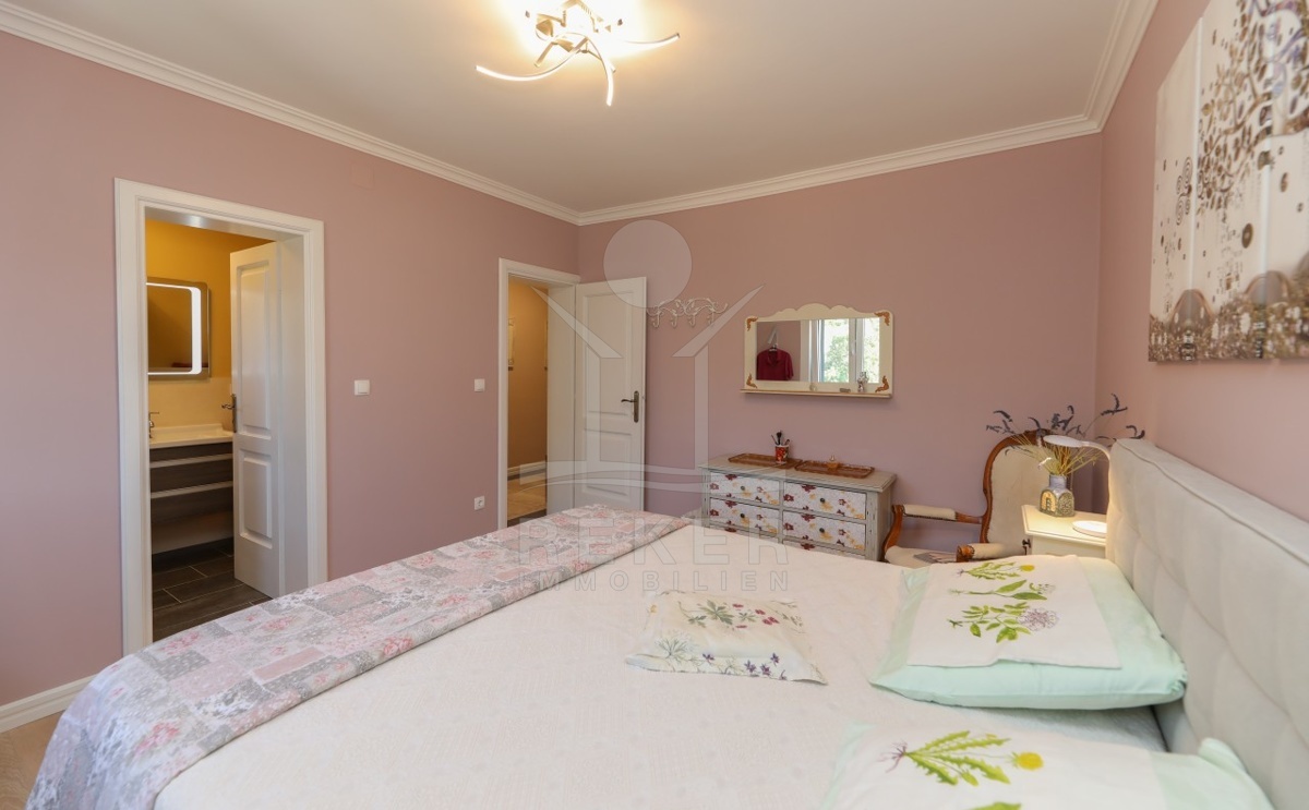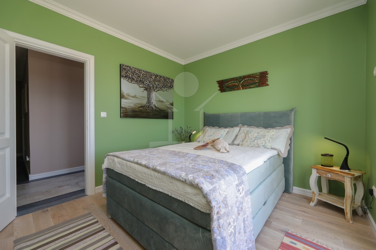 Im Obergeschoss befindet sich eine helle 3-Zimmer-Wohnung mit zwei Bädern, großer Küche, Wohnbereich sowie zwei Balkonen und einer weiteren Terrasse. Alle Einheiten sind voll möbliert, mit Geräten von Miele, Bosch und Neff, Klimaanlagen in allen Räumen, modernen PVC-Fenstern mit Dreifachverglasung und Mückenschutz. Die Warmwasserversorgung erfolgt über eine Solaranlage im Dachboden – clever und effizient.