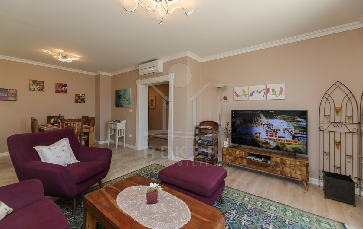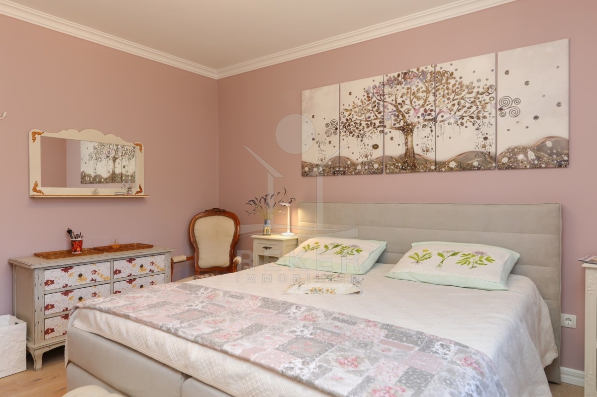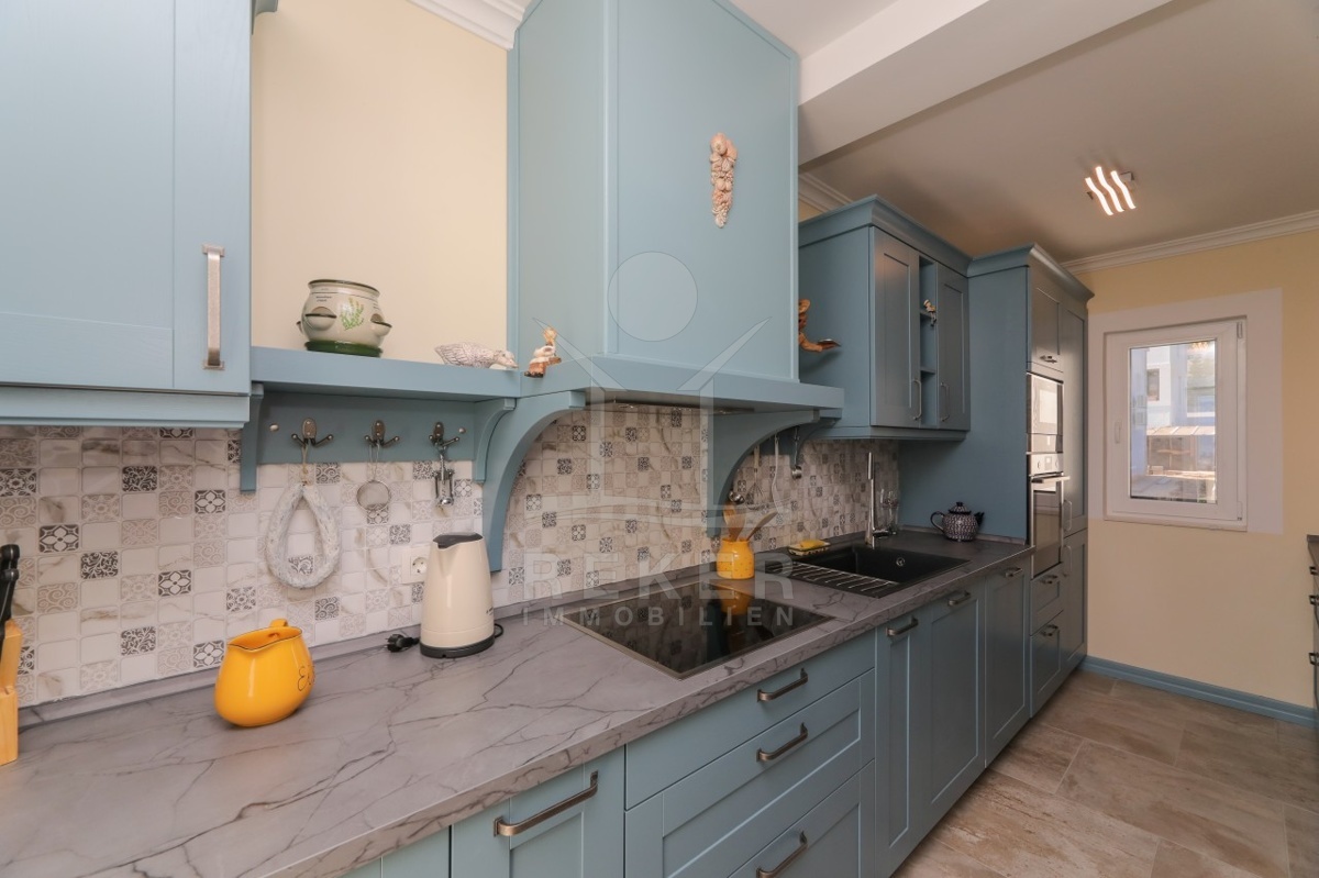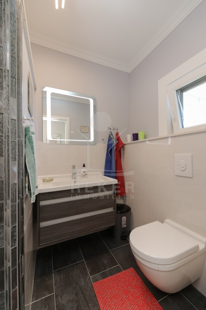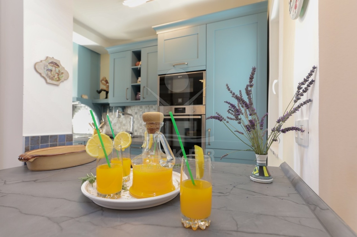 Im Obergeschoss befindet sich eine helle 3-Zimmer-Wohnung mit zwei Bädern, großer Küche, Wohnbereich sowie zwei Balkonen und einer weiteren Terrasse. Alle Einheiten sind voll möbliert, mit Geräten von Miele, Bosch und Neff, Klimaanlagen in allen Räumen, modernen PVC-Fenstern mit Dreifachverglasung und Mückenschutz. Die Warmwasserversorgung erfolgt über eine Solaranlage im Dachboden – clever und effizient.
