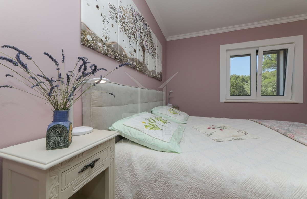 Ein paar Schritte vom Meer entfernt, mitten in der Natur und doch ganz nah an Supetar: Dieses Haus liegt in erhöhter Lage am Waldrand und bietet Ihnen einen freien Blick über das Meer bis zum Festland. Die Aussicht bleibt Ihnen garantiert – unverbaubar. Ruhig, grün, entspannt. Und doch sind Sie in wenigen Minuten im Ort. Das Auto können Sie meist stehen lassen.