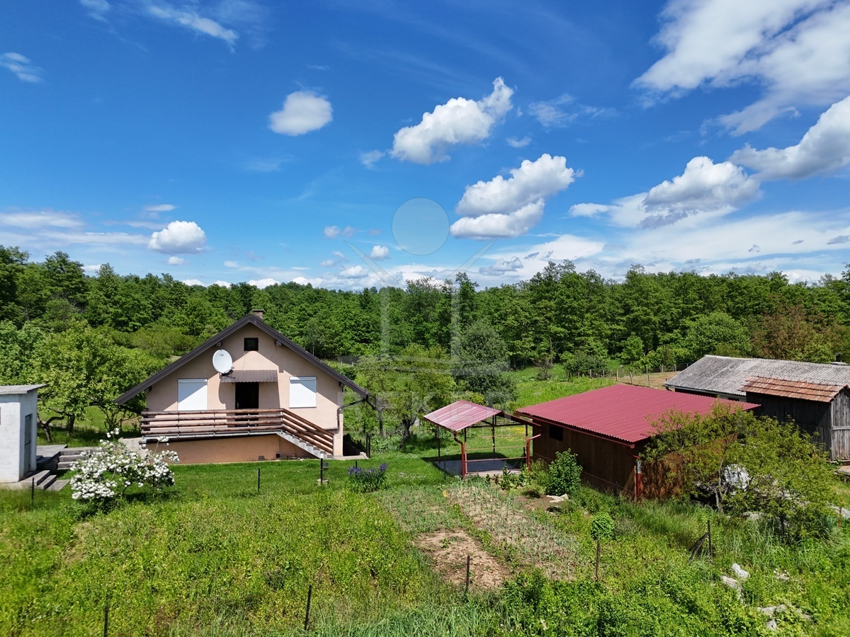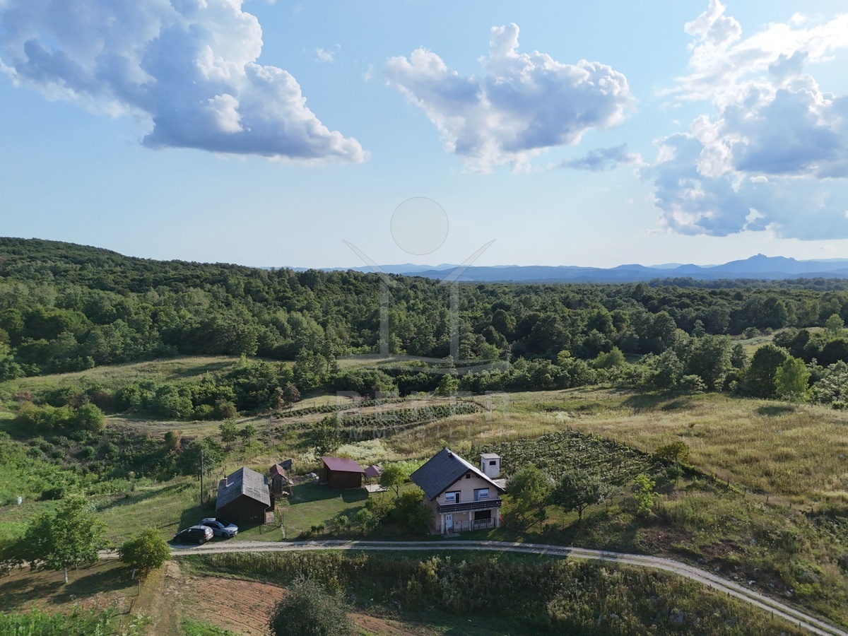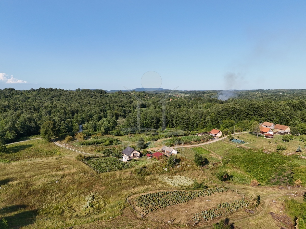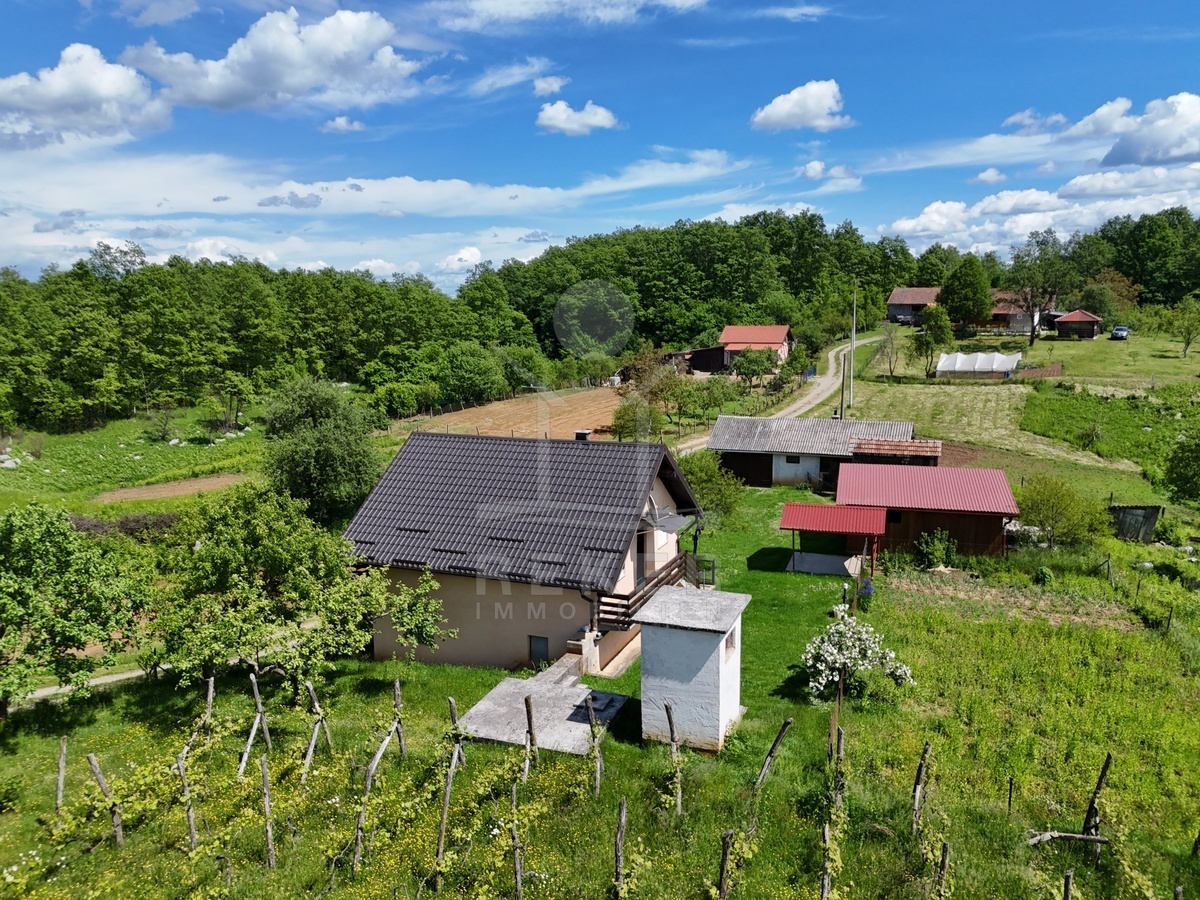 In Svojić, nur einen Kilometer von der Mrežnica entfernt, wartet ein Anwesen mit über 19.000 m² Land. Hier wohnen Sie inmitten von Wäldern und Feldern. Für den Alltag sind es 20 Minuten bis Barilović mit Geschäften, Schule und Gesundheitszentrum. Karlovac mit Krankenhaus und großen Märkten erreichen Sie ebenso bequem. Die Zufahrt führt über eine 2,5 km lange Schotterstraße, Ihr Auto parken Sie direkt auf dem Grundstück.