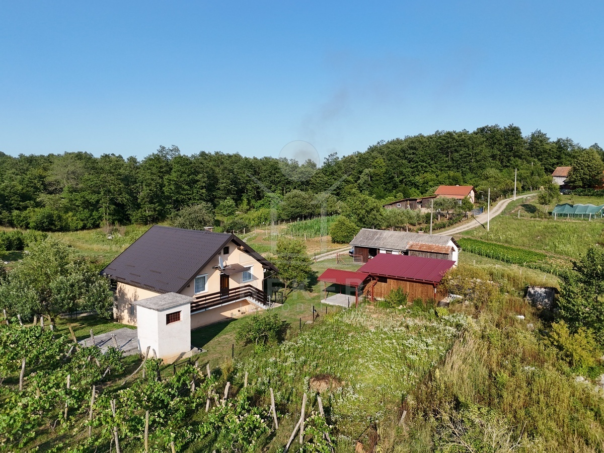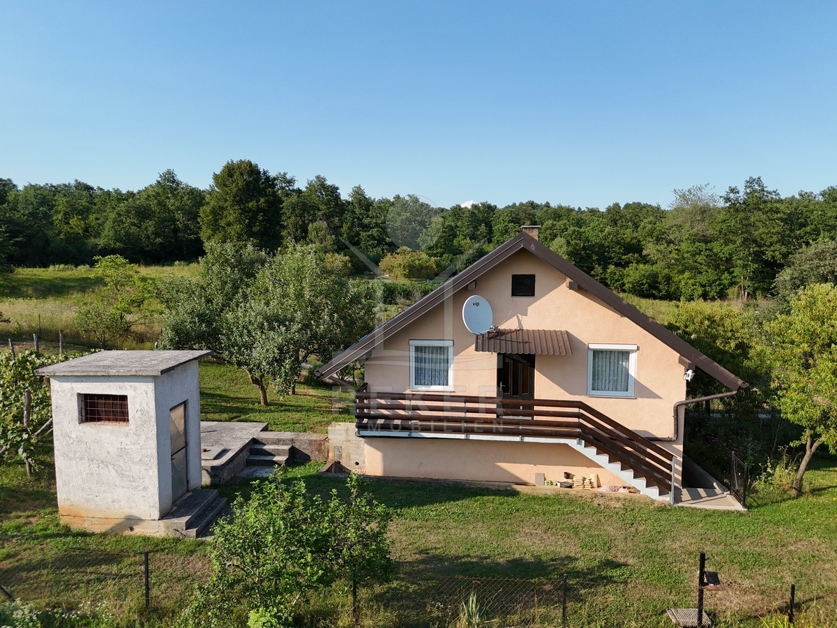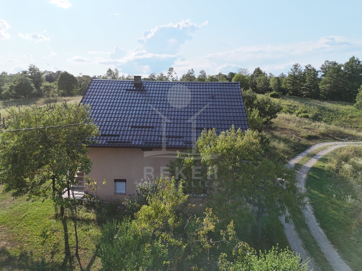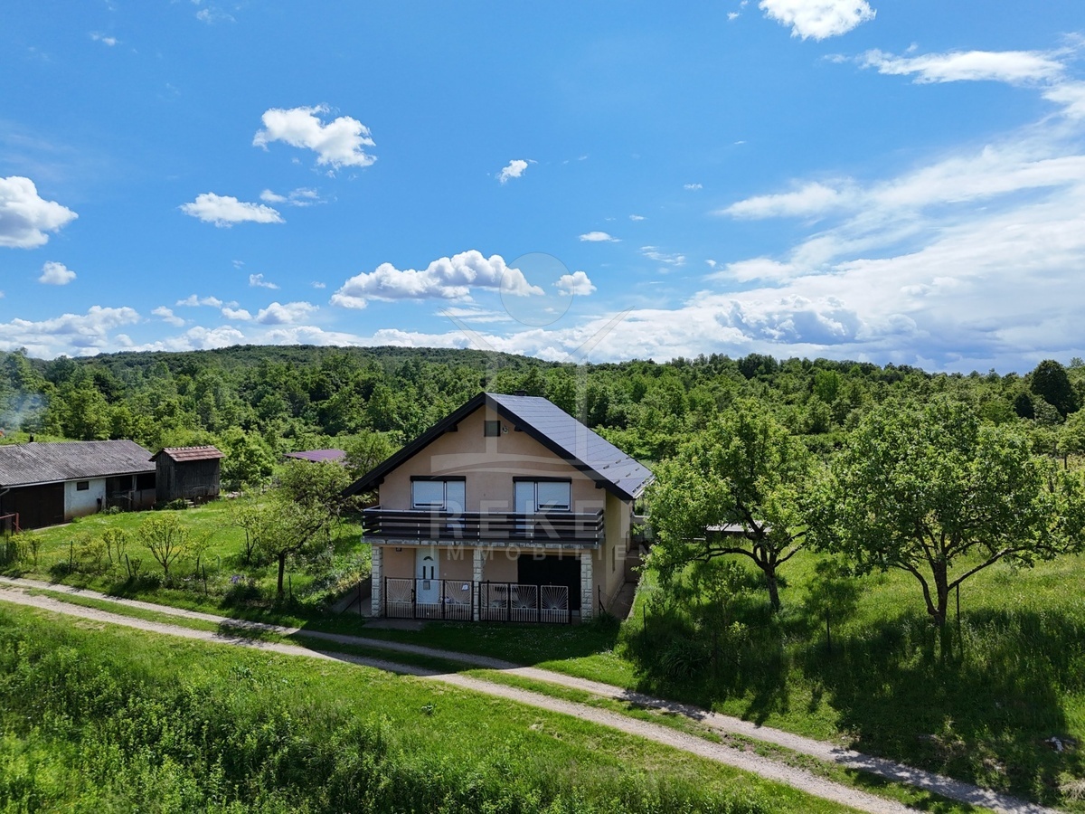 In Svojić, nur einen Kilometer von der Mrežnica entfernt, wartet ein Anwesen mit über 19.000 m² Land. Hier wohnen Sie inmitten von Wäldern und Feldern. Für den Alltag sind es 20 Minuten bis Barilović mit Geschäften, Schule und Gesundheitszentrum. Karlovac mit Krankenhaus und großen Märkten erreichen Sie ebenso bequem. Die Zufahrt führt über eine 2,5 km lange Schotterstraße, Ihr Auto parken Sie direkt auf dem Grundstück.