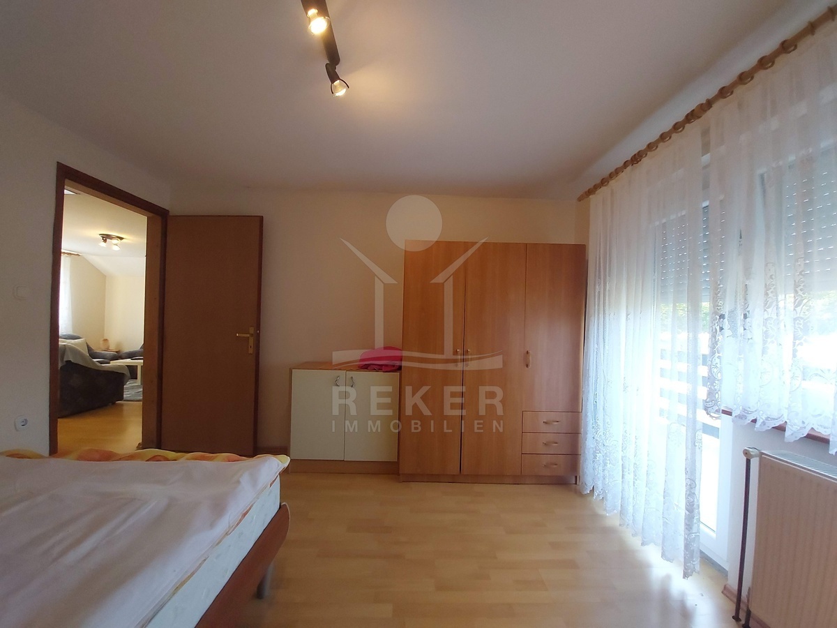 Das Wohnhaus umfasst 166 m² auf zwei Etagen. Im Erdgeschoss stehen Ihnen eine Küche, ein zusätzliches Zimmer und eine Garage zur Verfügung, derzeit als Abstellraum genutzt. Im Obergeschoss erwarten Sie ein Wohnzimmer, ein Badezimmer und ein weiteres Zimmer, aktuell Schlafzimmer, aber auch geeignet für eine zweite Küche. Zwei weitere Schlafzimmer öffnen sich zum gemeinsamen Balkon mit Aussicht.