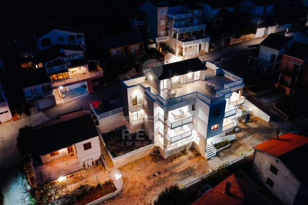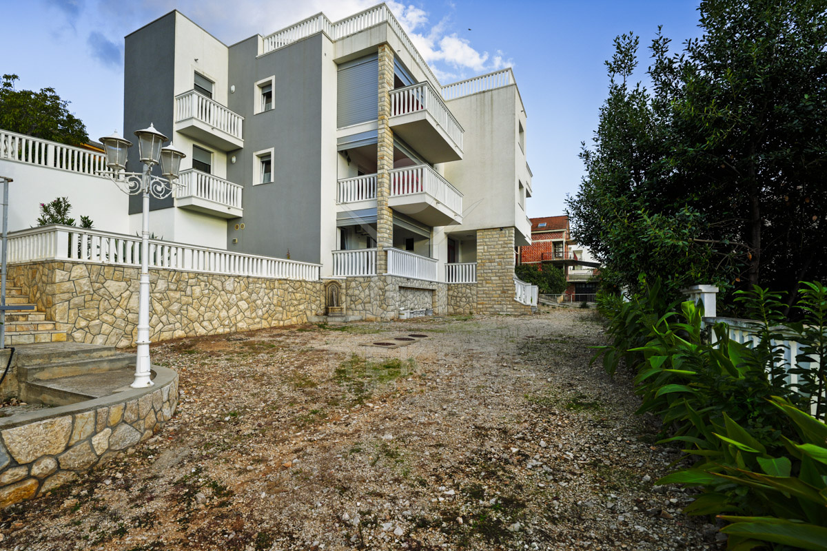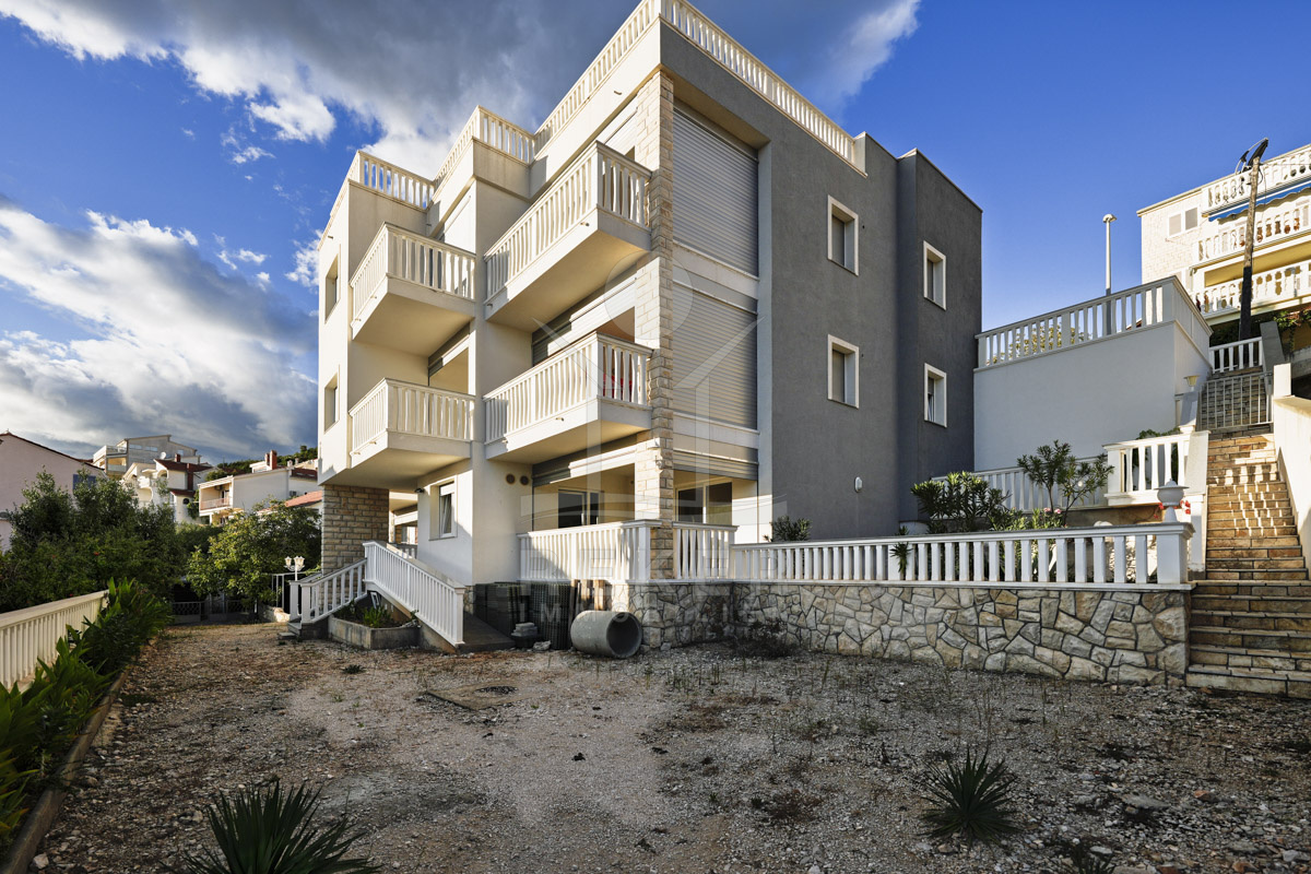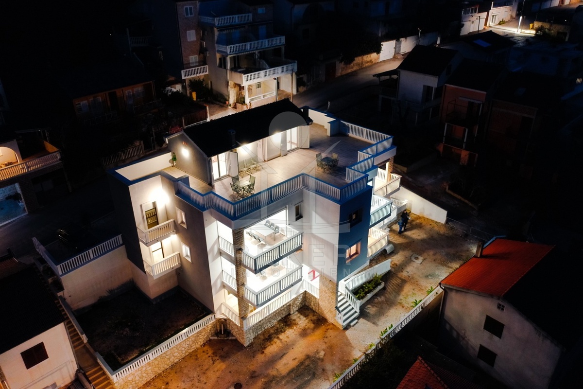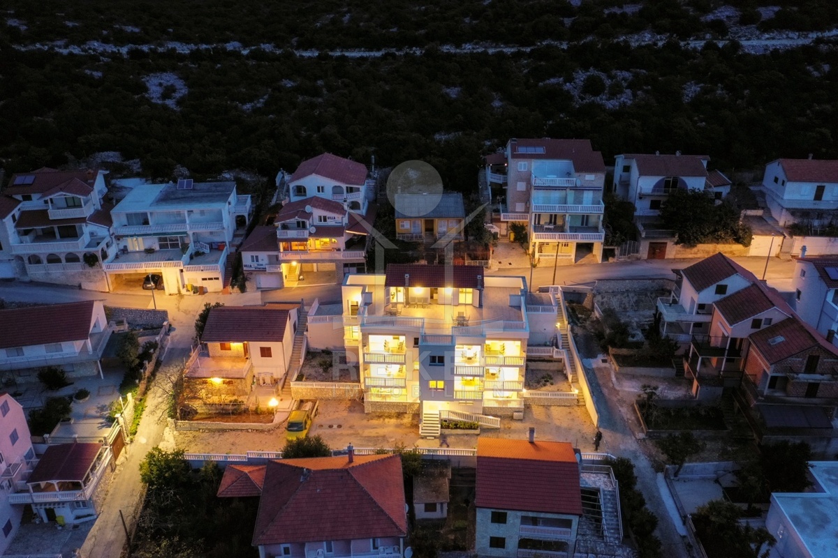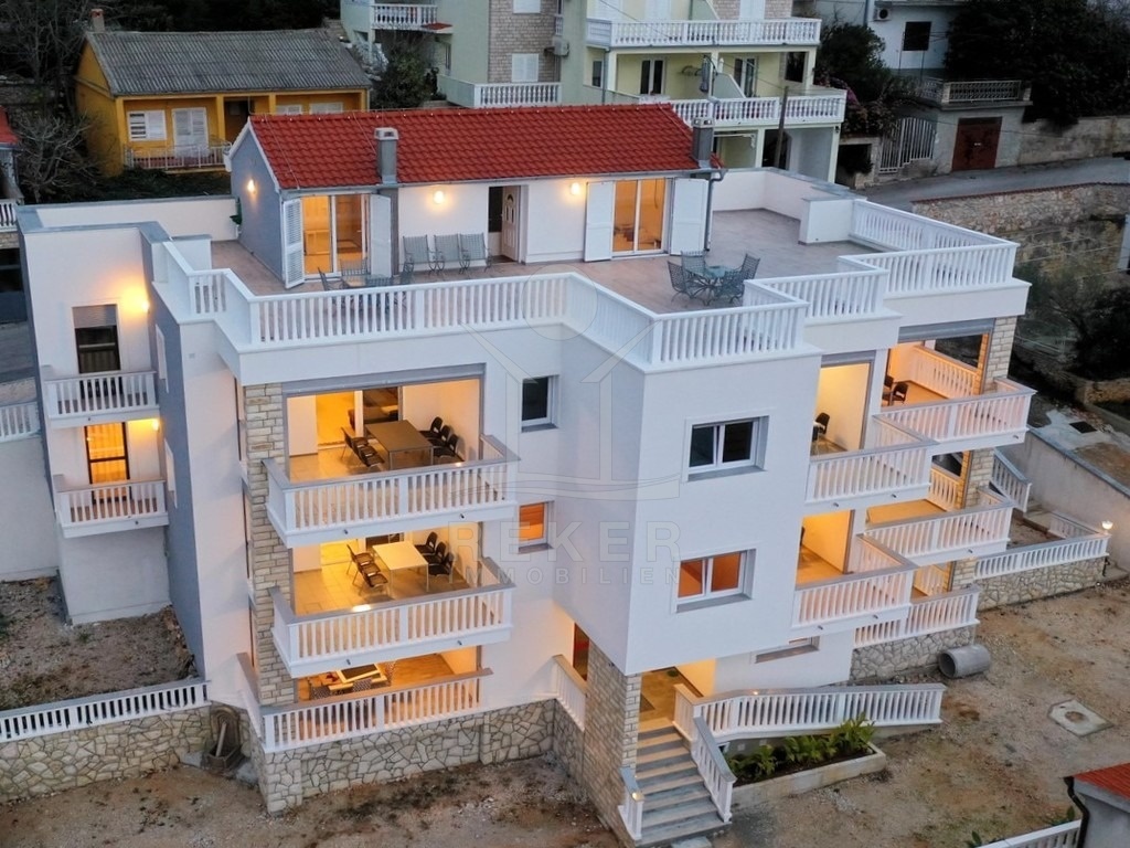 Das Areal umfasst 1.764 m² und vier Gebäude mit insgesamt 2.190 m² Fläche. Moderne Architektur und mediterranes Umfeld verbinden sich zu einer Mischung aus Komfort, Nutzungsspielraum und schönem Blick. Diese ruhige Umgebung und der freie Blick formen zusammen mit Neubauten und Bestandsgebäuden eine seltene Gelegenheit an der dalmatinischen Küste. Für Investoren und Familien bietet das Ensemble vielseitige Optionen in Meeresnähe.