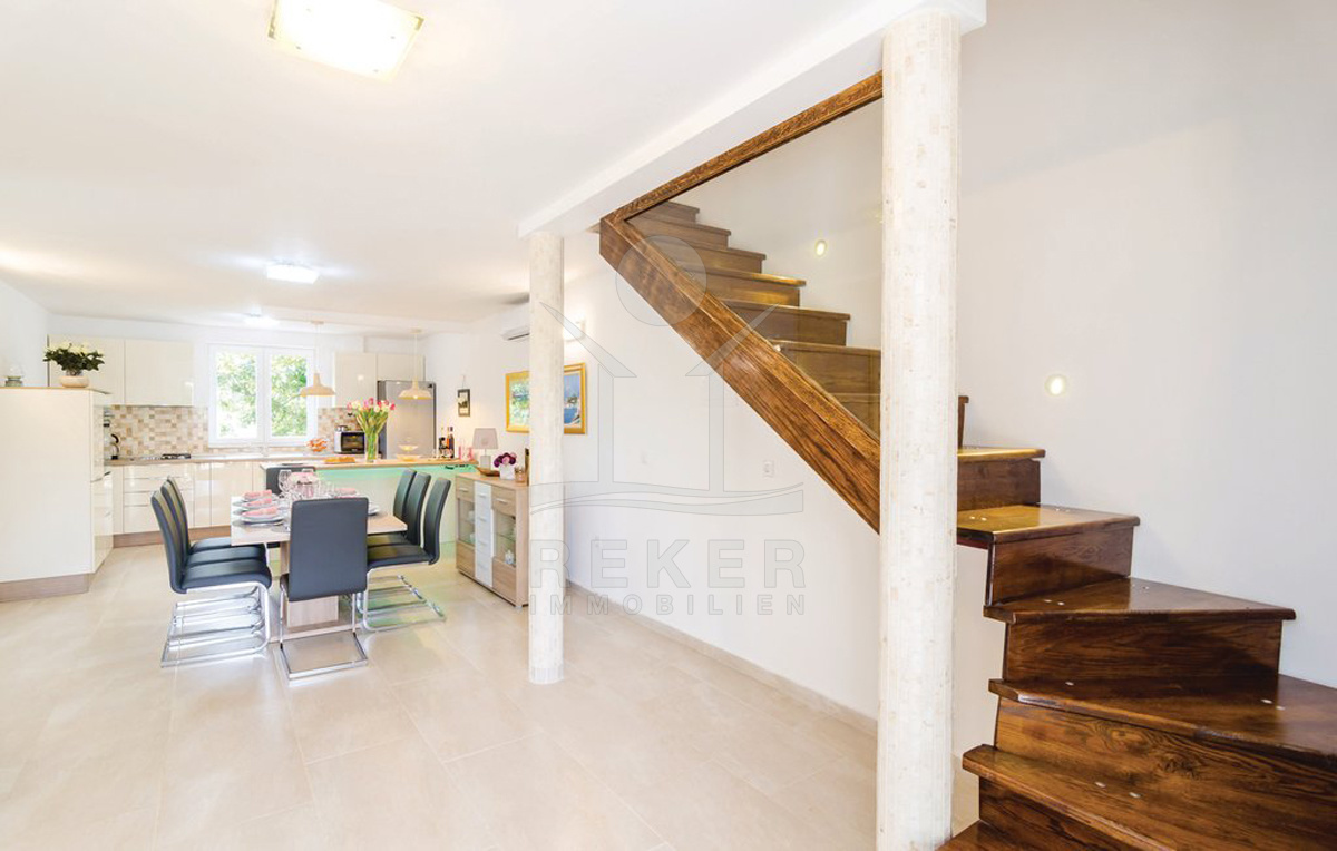 Das Haus in Vitaljina befindet sich mitten in einer idyllischen, grünen Hügellandschaft, die Ruhe und Naturnähe verspricht. Umgeben von saftigen Wiesen und sanften Hügeln erleben Sie hier ein Leben im Einklang mit der Natur, perfekt für Familien und Naturliebhaber.