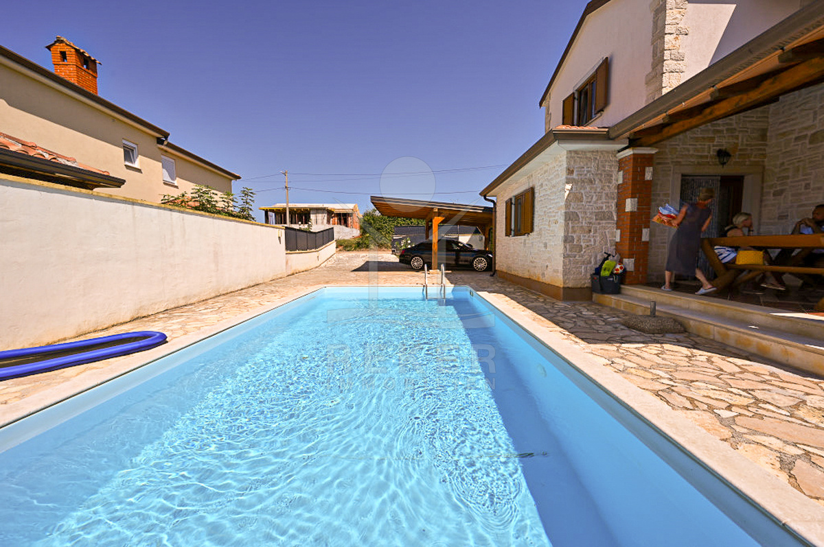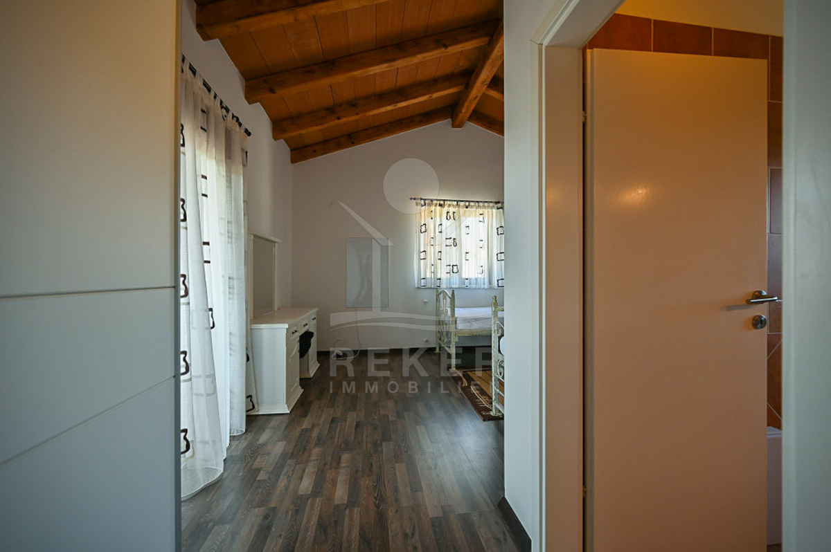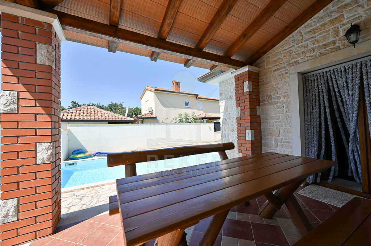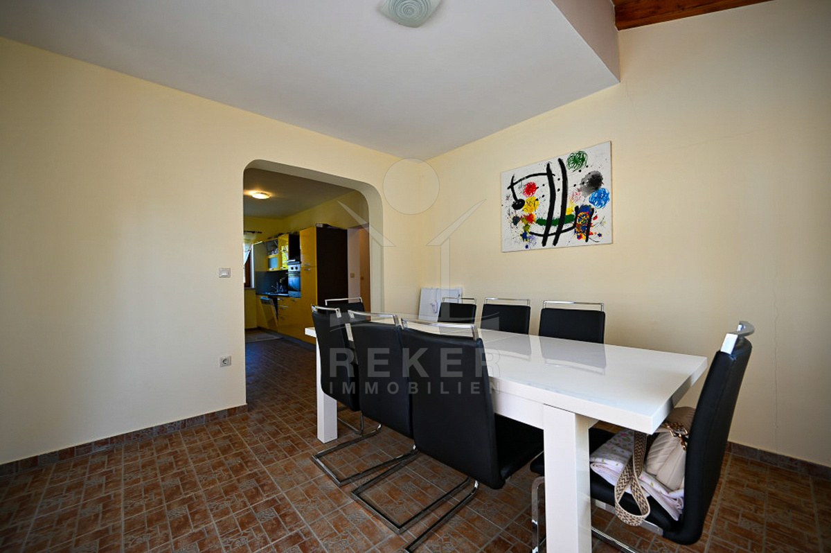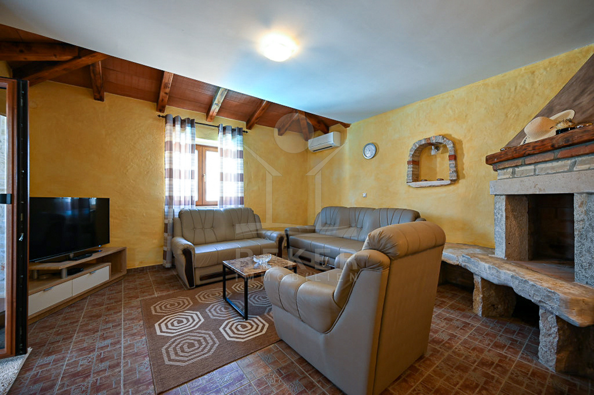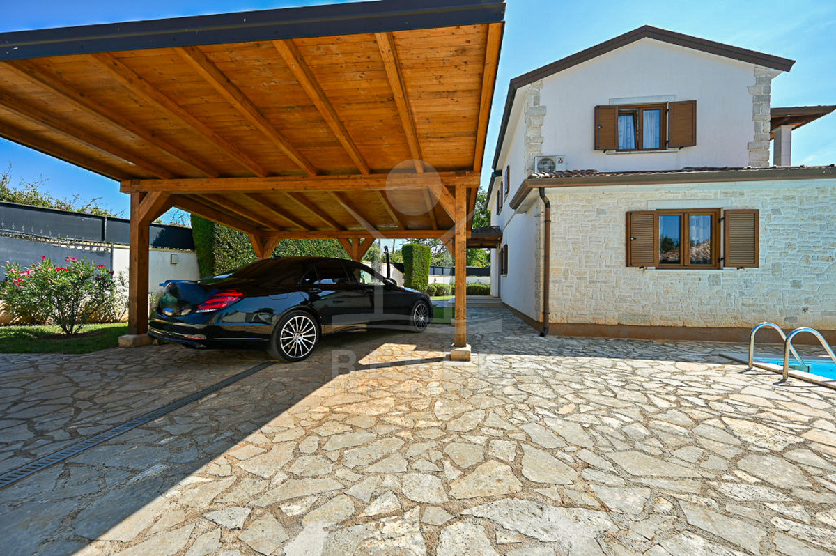 In Vižinada, einer malerischen Ortschaft im Herzen Istriens, steht dieses freistehende Steinhaus auf einem 620 m² großen Grundstück. Nur 10 km trennen Sie vom Meer, rund 15 km von der Küstenstadt Poreč. So genießen Sie Ruhe und Nähe zu allen wichtigen Einrichtungen. Der überdachte Parkplatz mit Platz für drei Fahrzeuge sorgt für Komfort und Sicherheit.