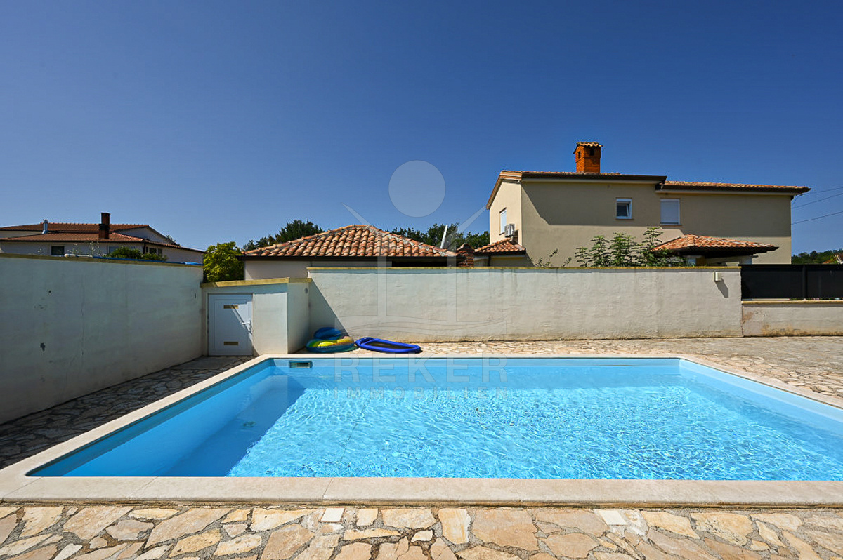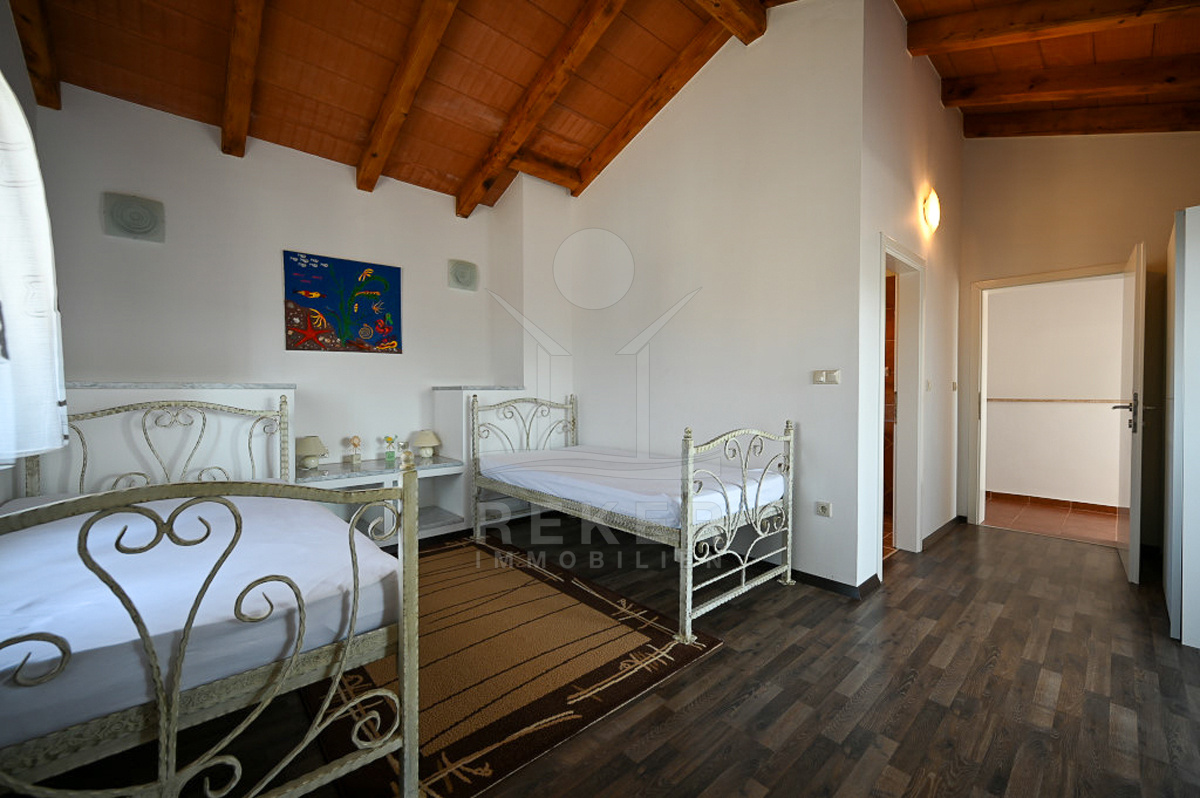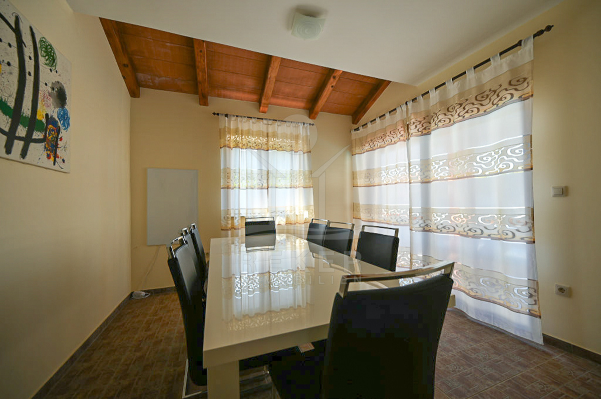 Mit 160 m² Wohnfläche auf zwei Etagen hat das Haus Platz für Familie und Gäste. Drei Schlafzimmer und drei Badezimmer sorgen für Komfort. Balkon, Loggia und Abstellraum runden das Raumangebot ab. Im Inneren bieten eine private Sauna und ein Kamin zusätzlichen Wohnwert. Zusammen mit Klimaanlage und Stromheizung genießen Sie das ganze Jahr über angenehme Temperaturen. Kunststofffenster und -türen unterstreichen die solide Bauweise. Das Haus wurde 2012 erbaut. Mit Pool, Sauna, gepflegtem Garten und attraktiver Lage verbindet es Entspannung, Komfort und Wertsteigerung.
