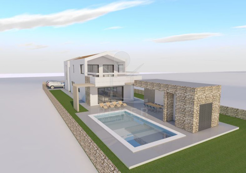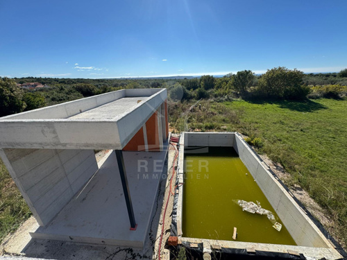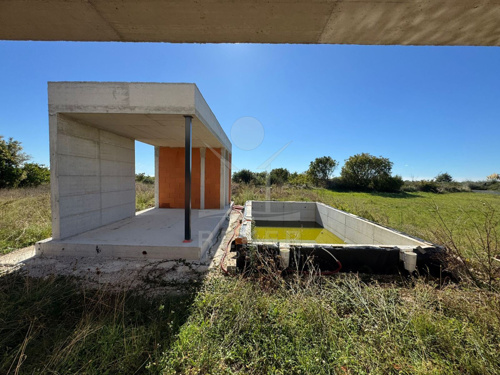 Vodnjan, ein charmantes istrisches Städtchen mit Geschichte, Olivenöl und ruhigem Lebensrhythmus. Hier entsteht ein modernes Haus mit weitem Blick auf die Brijuni-Inseln. Nur rund 4,5 km trennen Sie vom Meer. Eine schöne Kombination aus Küstennähe und entspannter Umgebung.