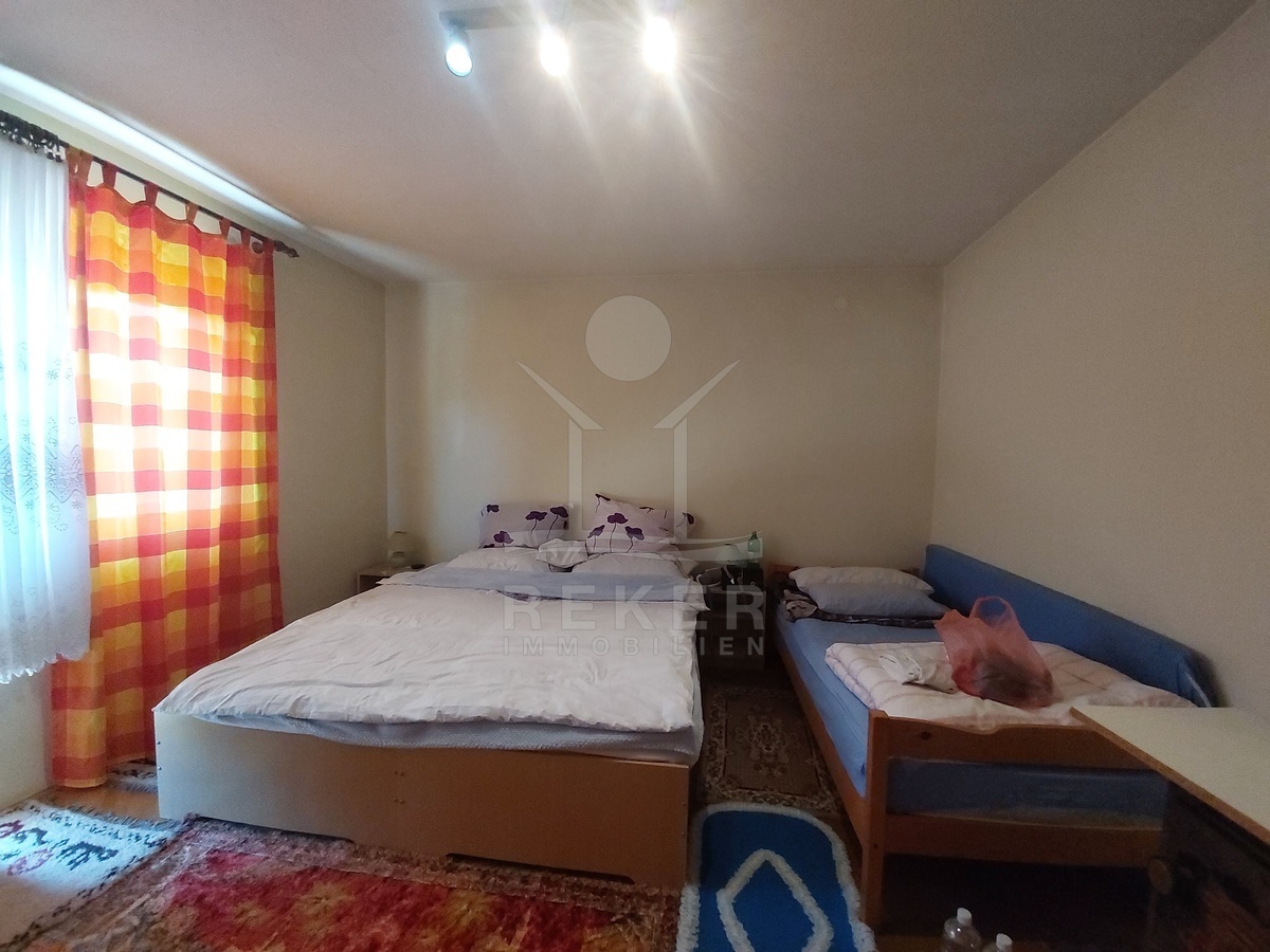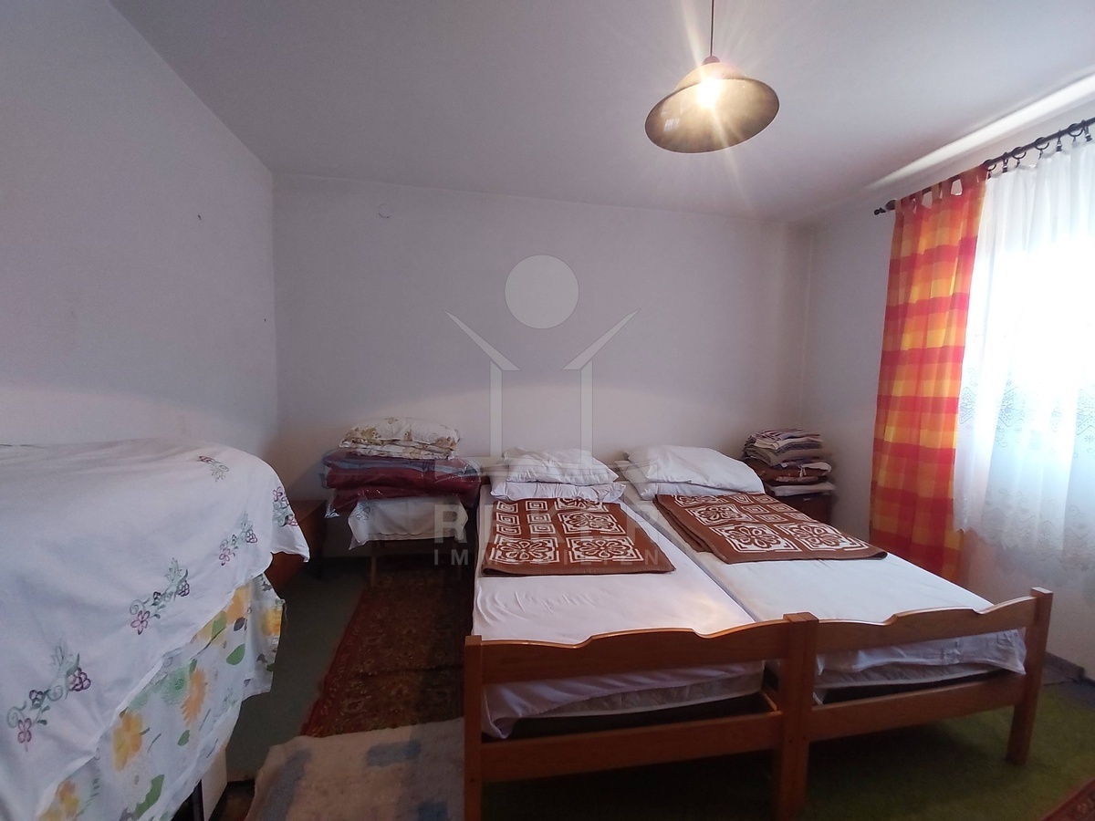 In der Gemeinde Vojnić, nur 2,2 km vom Ortszentrum entfernt, finden Sie dieses großzügige Familienhaus. Sie fahren bequem über eine Asphaltstraße zum Grundstück. Ein Tor und die Einzäunung sorgen für klare Grenzen und Sicherheit. Einkaufsmöglichkeiten, Schule und Gesundheitszentrum befinden sich im Ort. Karlovac erreichen Sie nach 27 km, Topusko nach 28 km.