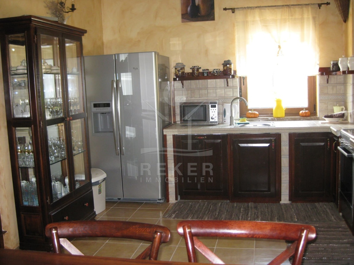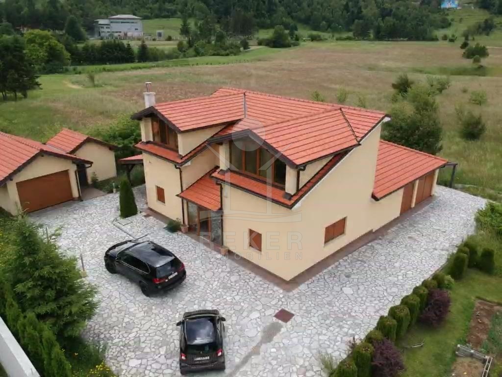 Die Villa befindet sich auf einem 5000 m² großen Grundstück und bietet eine Wohnfläche von 320 m², die sich über 3 Etagen erstreckt. Das Haus wurde im Jahr 2015 gebaut und hat die Energieklasse A+, was bedeutet, dass es extrem energieeffizient ist. Im Außenbereich gibt es auf dem großzügigen Hof einen Abstellraum von 12 m² sowie eine Garage von ca. 30 m² und mehrere Parkplätze. Das Grundstück ist flach und geräumig und kann bebaut werden.