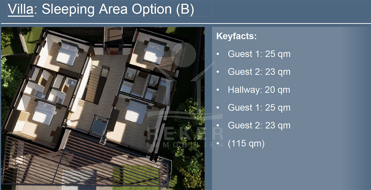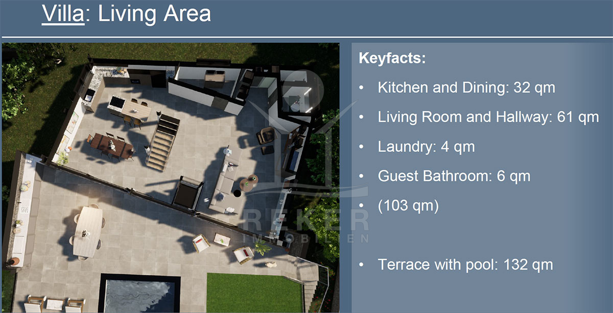 Schaffen Sie sich ihr ganz persönliches Paradies. Sie haben die Möglichkeit, die Villa mit Swimmingpool nach der I. abgeschlossenen Bauphase inkl. Baugrund, Baugenehmigung, Rohbau, Fenster und kompletten Projektierung mit der modernsten Technologie zu übernehmen und ihr Traumhaus nach ihren eigenen Vorstellungen fertig zu stellen. Baubeginn Villa B im November 2024, Fertigstellung Bauphase I Mitte 2025 geplant.