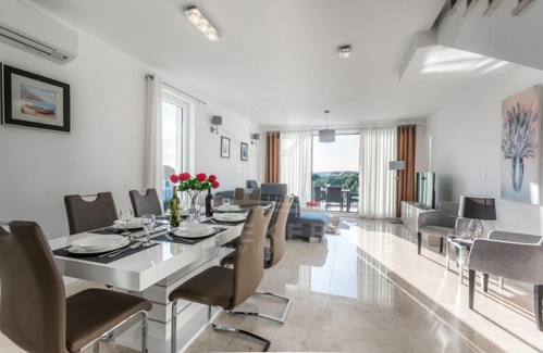Jede Wohnung dieser Villa ist mit Klimaanlage ausgestattet und wird vollständig möbliert verkauft. Genießen Sie von Ihrer Terrasse und Ihrem Balkon aus einen herrlichen Blick auf das Meer. Die Luxusausstattung garantiert höchsten Komfort und Stil. Unterhalb des Pools befindet sich ein exklusives Apartment mit zwei Schlafzimmern. Neben einer Waschküche und einem Büro bietet dieses Anwesen alles, was das Herz begehrt.