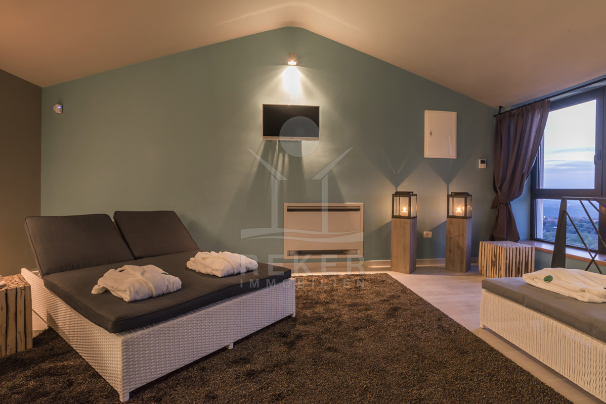 Die luxuriöse Wellnessausstattung wird Sie beeindrucken und den Alltagsstress schnell vergessen lassen.