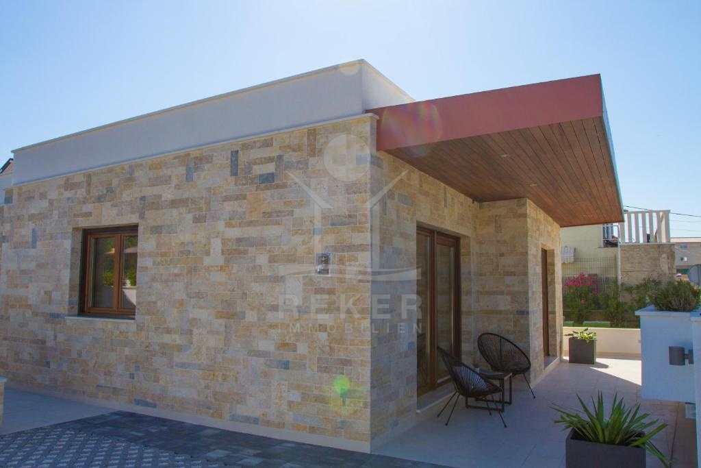 Das Anwesen liegt auf einer Grundstücksfläche von 868 m² und Hanglage, was einen atemberaubenden Ausblick auf die umliegende Landschaft ermöglicht. Das Gebäude selbst hat eine Wohnfläche von 100 m² und ist ein Neubau, der alle modernen Annehmlichkeiten bietet. Die Villa ist umgeben von einer wunderschönen mediterran gestalteten Gartenanlage, die die perfekte Kulisse für entspannte Stunden im Freien bietet.