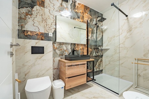 Die schöne Villa erwartet Sie mit geschmackvoller Einrichtung, die maßgeschneiderte Möbel umfasst, die im Verkaufspreis inbegriffen sind. Die sorgfältige Auswahl der Bodenbeläge verleiht dem Raum einen eleganten Touch und schafft eine angenehme Atmosphäre. Im Erdgeschoss erwartet Sie ein luftiger, offener Grundriss mit Wohn-, Ess- und Küchenbereich sowie einem Schlafzimmer mit angeschlossenem Bad. Ein Gäste-WC, eine Waschküche und ein Kleiderschrank runden das Angebot ab. Vom Wohnzimmer gelangen Sie direkt in den einladenden Terrassenbereich.