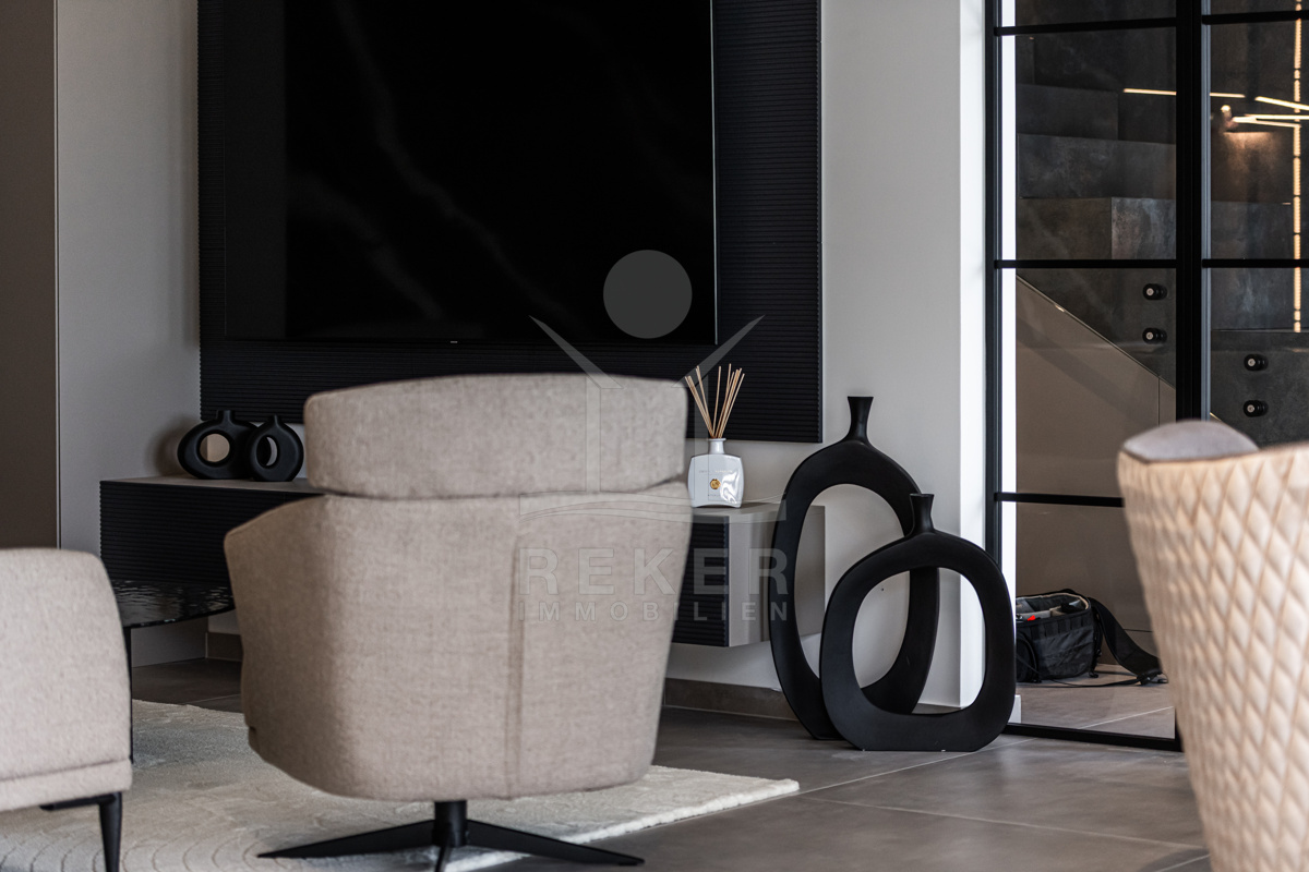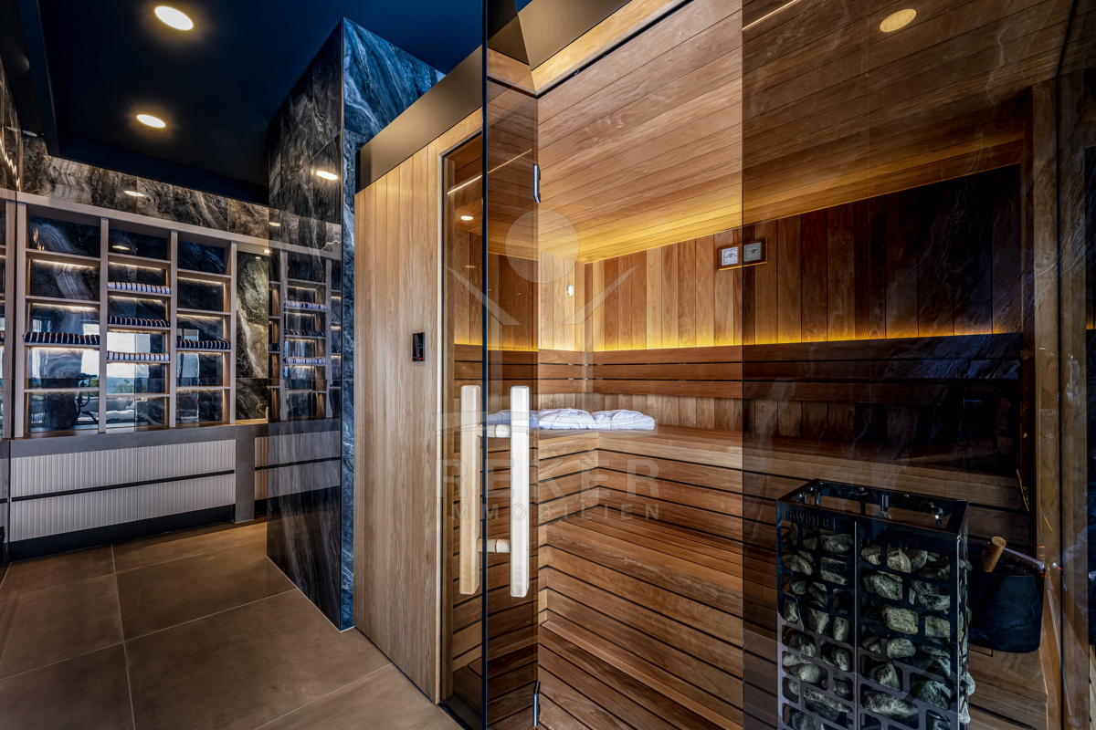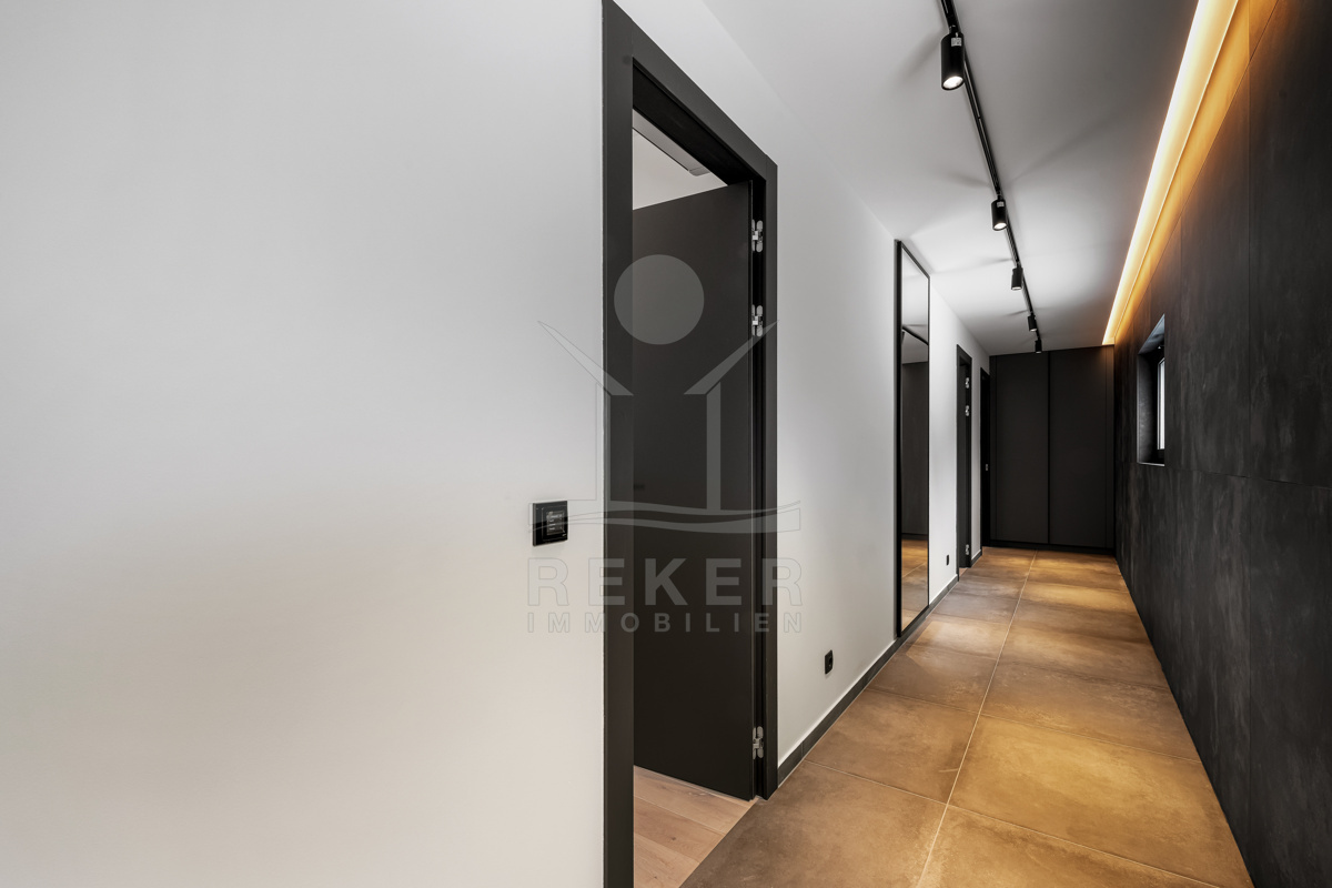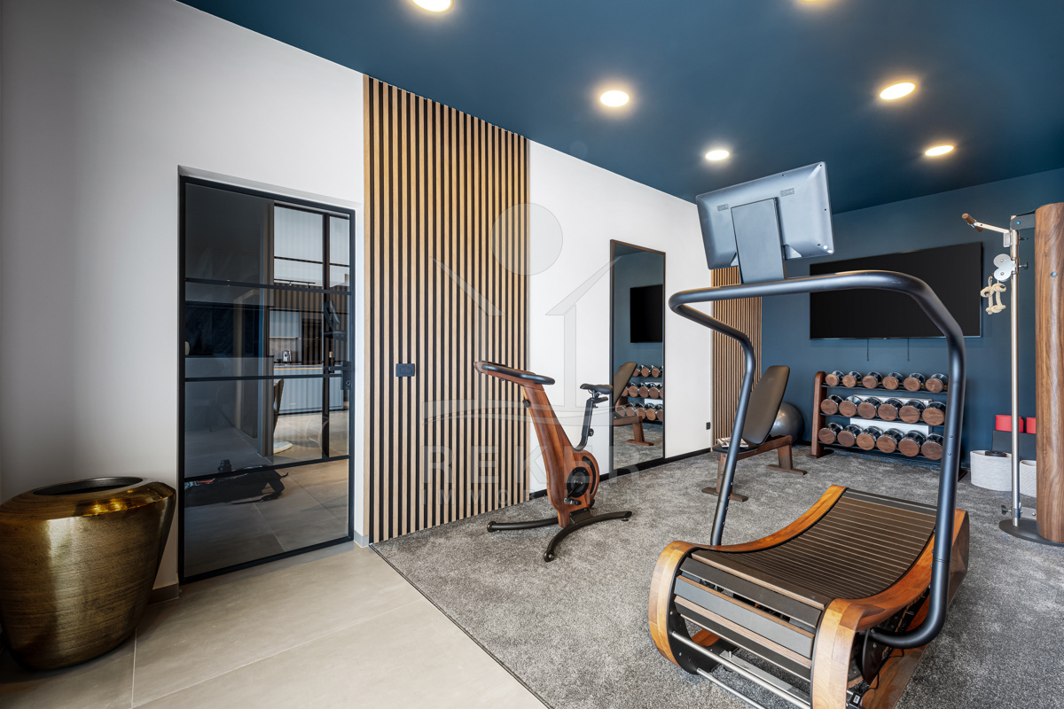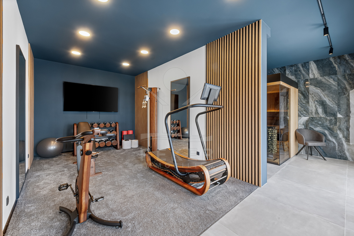 Für Erholung und Fitness ist ebenfalls gesorgt: Ein Wellnessbereich mit Sauna lädt zur Entspannung ein, während der Fitnessraum mit hochwertigen Geräten ausgestattet ist. Ergänzt wird die Ausstattung durch eine Videoüberwachung sowie eine Internetvernetzung im gesamten Haus, die auch längere Aufenthalte oder Homeoffice ermöglicht.