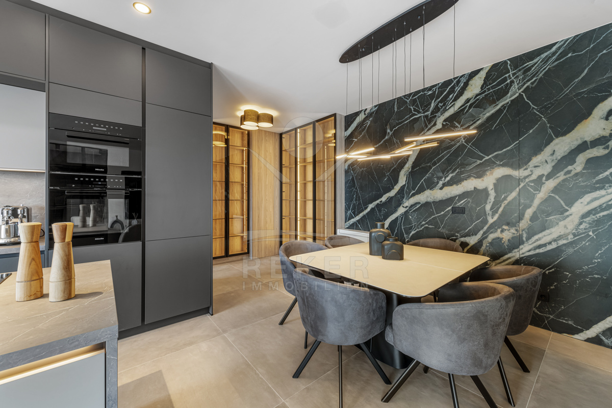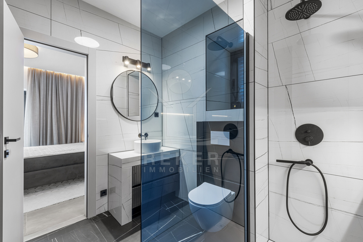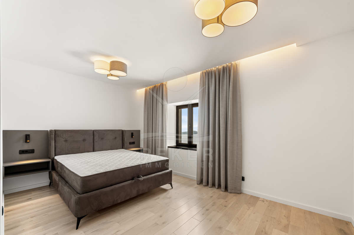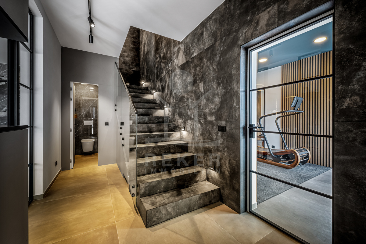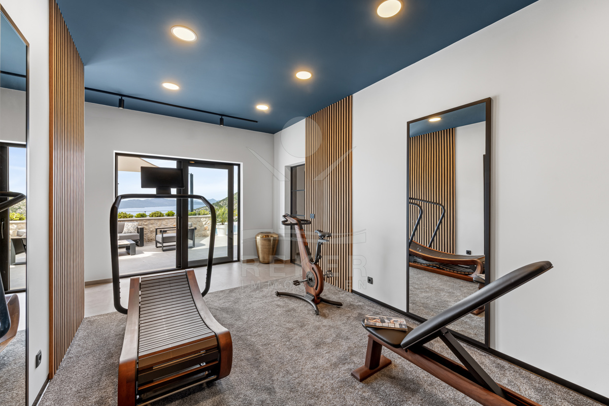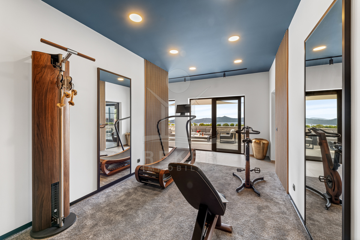 Für Erholung und Fitness ist ebenfalls gesorgt: Ein Wellnessbereich mit Sauna lädt zur Entspannung ein, während der Fitnessraum mit hochwertigen Geräten ausgestattet ist. Ergänzt wird die Ausstattung durch eine Videoüberwachung sowie eine Internetvernetzung im gesamten Haus, die auch längere Aufenthalte oder Homeoffice ermöglicht.