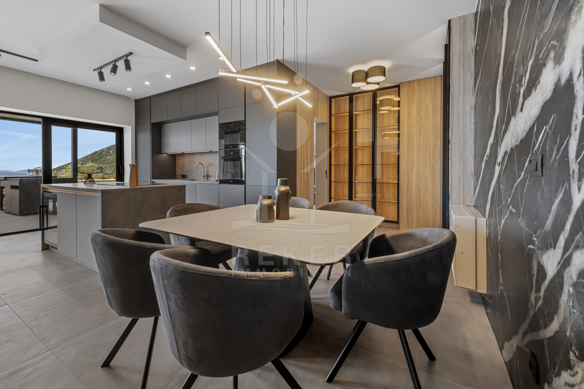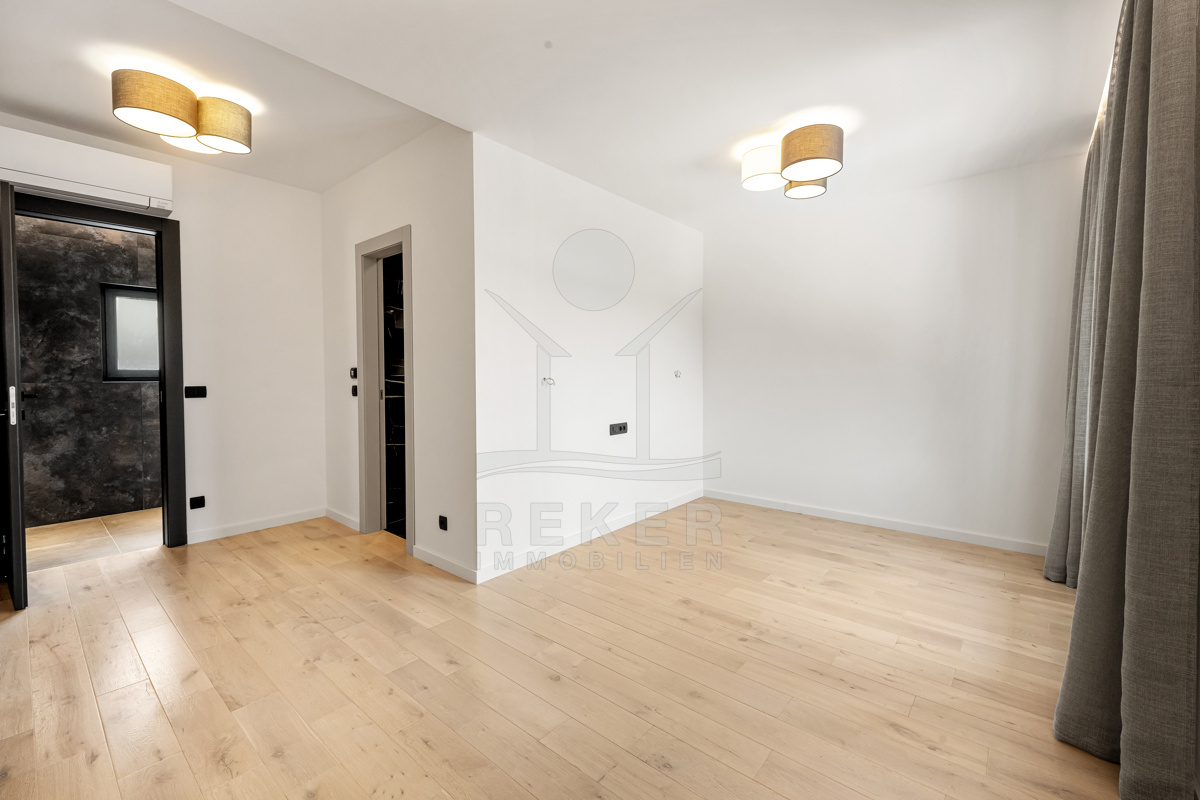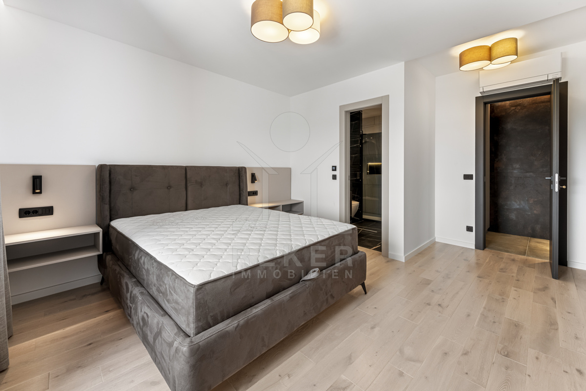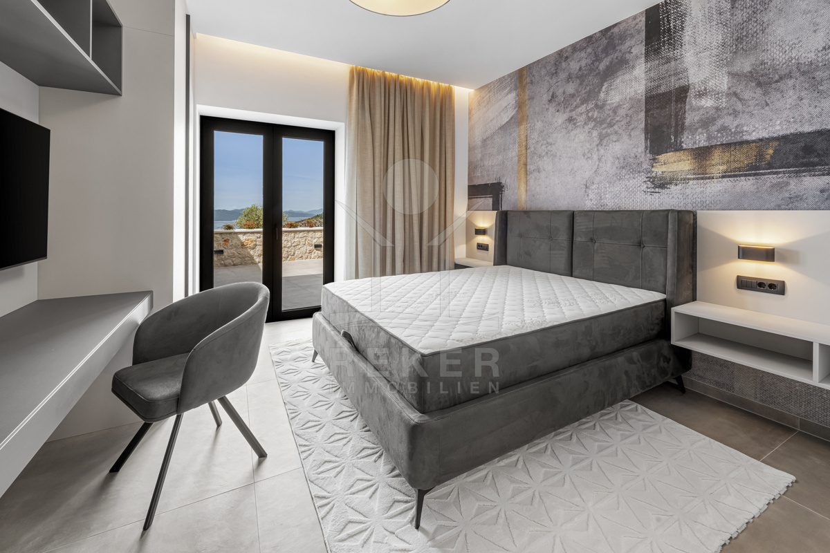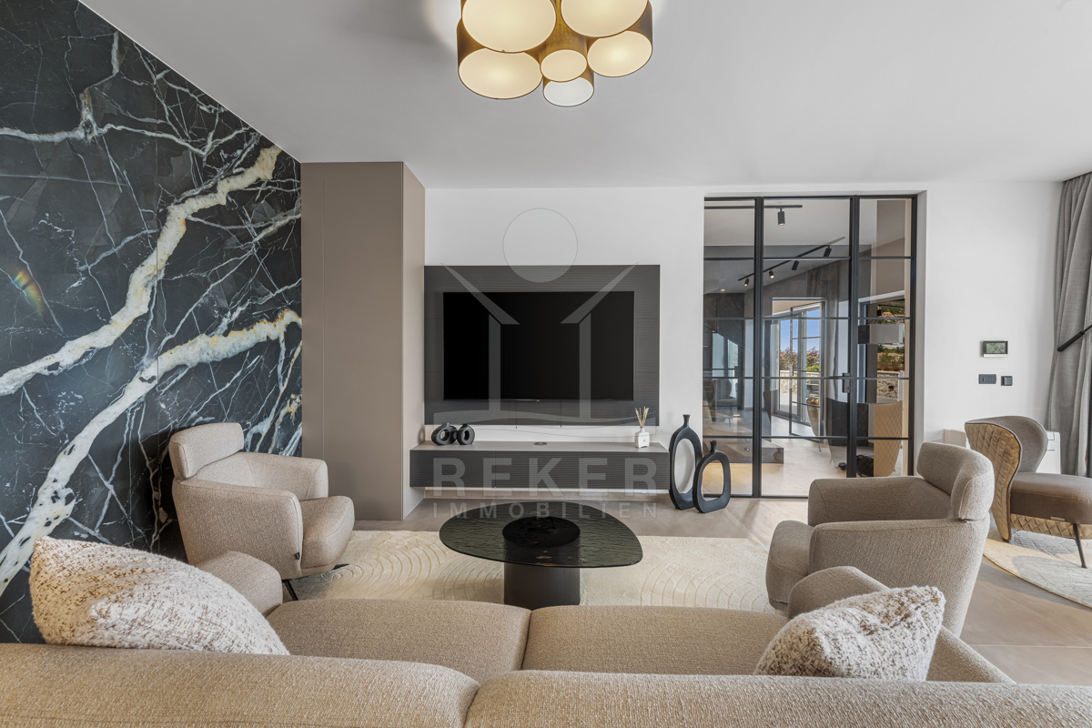 Im Inneren erwarten Sie ca. 280 m² Wohnfläche, die modernen Wohnkomfort mit mediterranem Charakter verbinden. Der großzügige Wohn- und Essbereich mit offener Designküche überzeugt durch edle Materialien, stimmige Beleuchtung und hochwertige Markengeräte. Vier Schlafzimmer, jeweils mit eigenem Bad en suite, sorgen für Privatsphäre und Komfort. Die Villa bietet Platz für bis zu zehn Personen und ist auch als Ferienhaus geeignet.