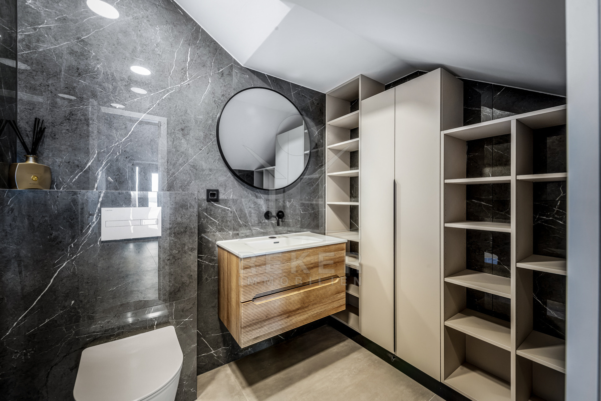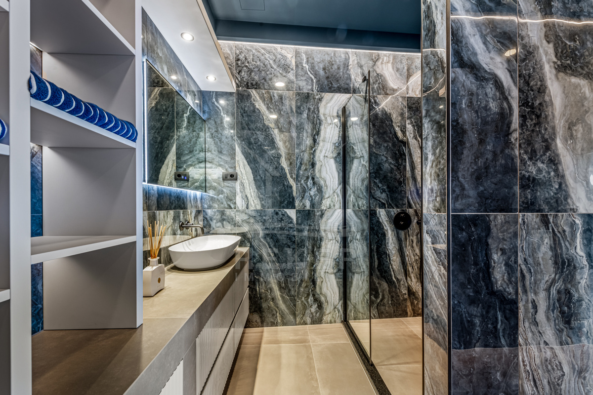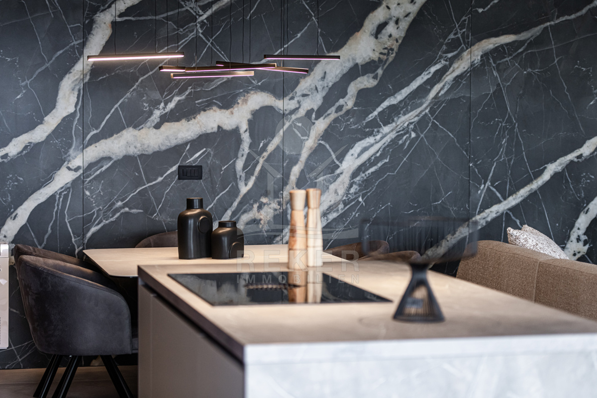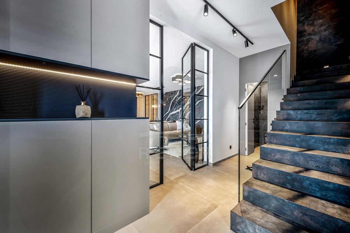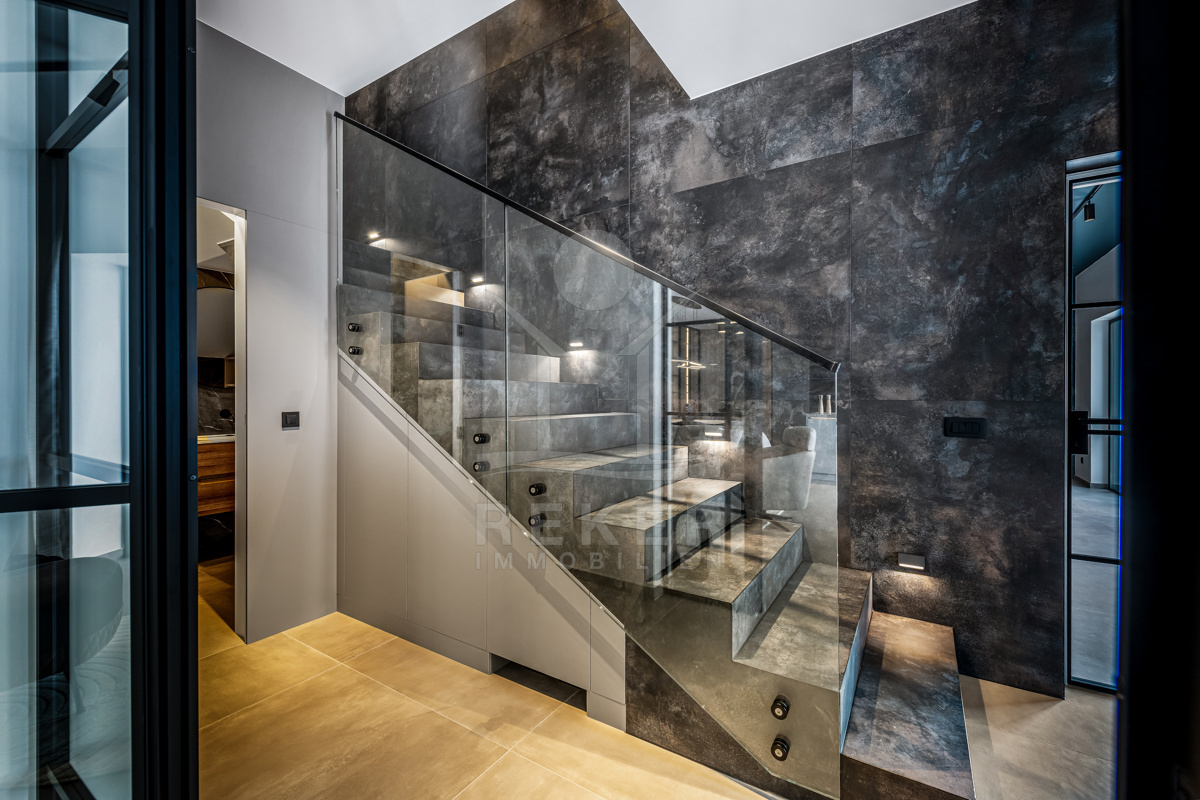 Im Inneren erwarten Sie ca. 280 m² Wohnfläche, die modernen Wohnkomfort mit mediterranem Charakter verbinden. Der großzügige Wohn- und Essbereich mit offener Designküche überzeugt durch edle Materialien, stimmige Beleuchtung und hochwertige Markengeräte. Vier Schlafzimmer, jeweils mit eigenem Bad en suite, sorgen für Privatsphäre und Komfort. Die Villa bietet Platz für bis zu zehn Personen und ist auch als Ferienhaus geeignet.