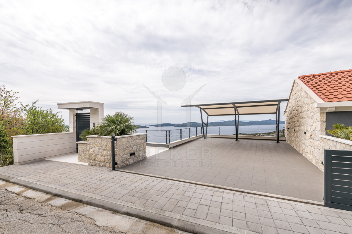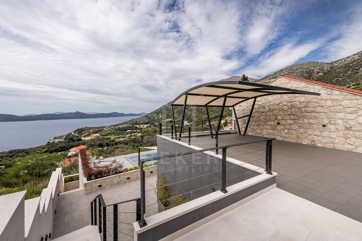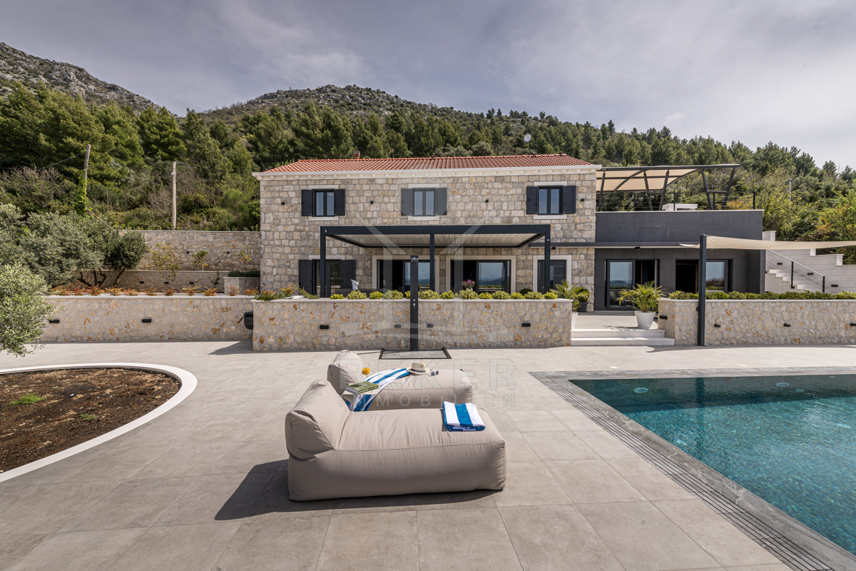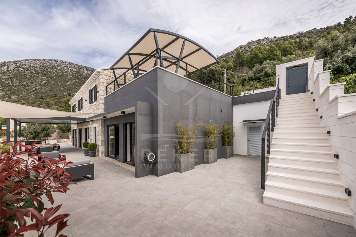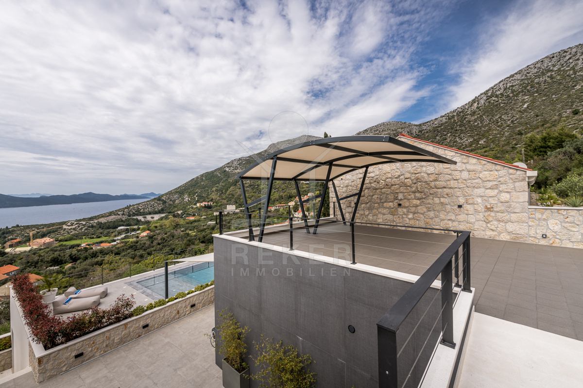 Die Architektur vereint Tradition und Moderne: Natursteinfassade, weiße Fensterrahmen und rote Ziegeldachziegel spiegeln den mediterranen Stil wider, während klare Linien und edle Materialien für Eleganz sorgen. Diese Villa ist ein Angebot für alle, die Exklusivität, Komfort und eine Lage in der Nähe von Dubrovnik suchen. Mit einem Kaufpreis von 2,3 Mio. € erwerben Sie eine besondere Immobilie. Optional kann ein angrenzendes Baugrundstück von 650 m² mit allen Genehmigungen und Anschlüssen für 300.000 € zusätzlich erworben werden.