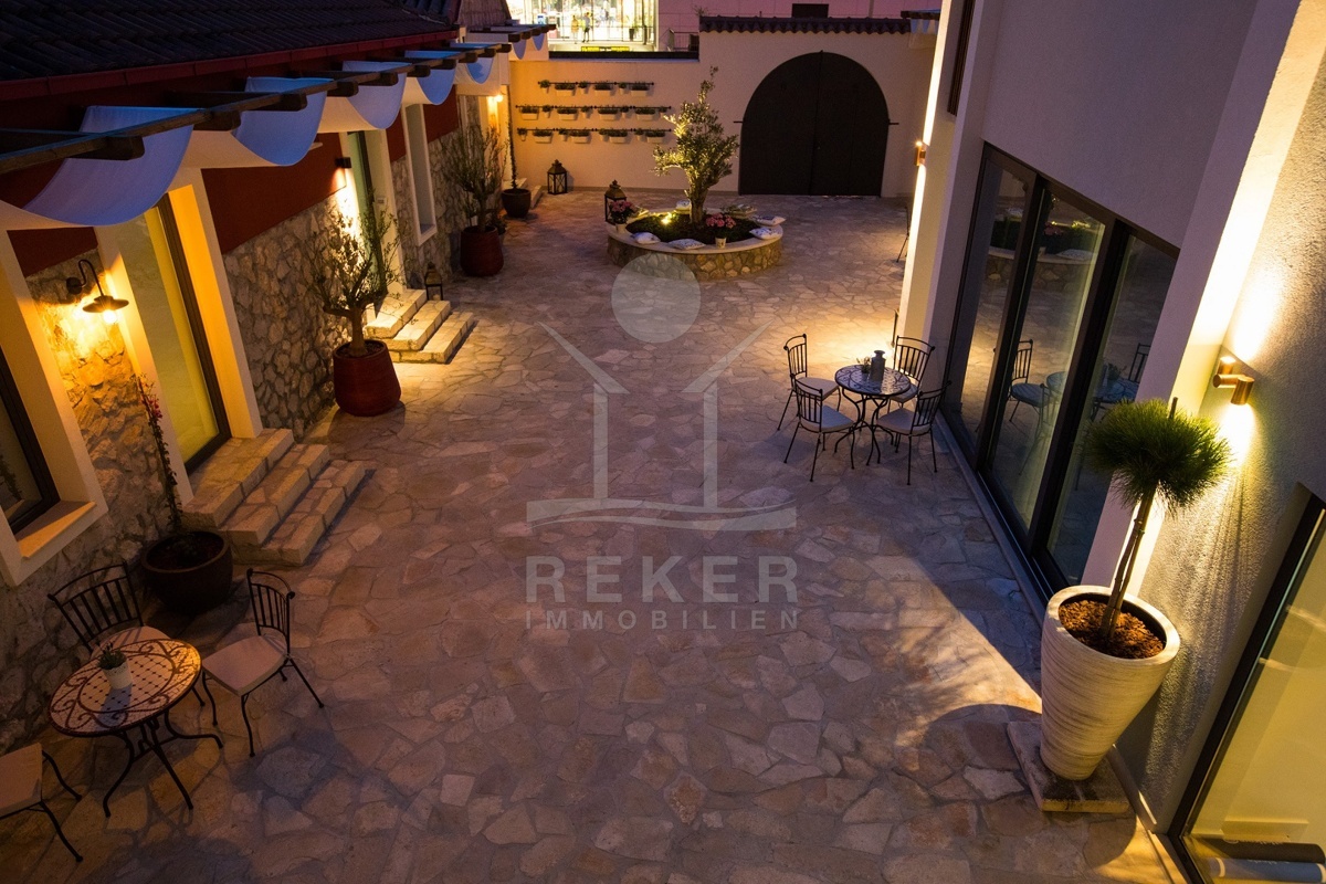 Das Anwesen umfasst zwei Gebäude: eine elegante Villa mit 500 m² Wohnfläche und ein zweigeschossiges Mehrfamilienhaus mit 413 m². Beide wurden 2016 in moderner Niedrigenergiebauweise errichtet und sind in hervorragendem Zustand. Großzügige Terrassen, zwei Außenpools, mediterrane Gärten mit Palmen und Oliven sowie Grill- und Loungebereiche schaffen eine besondere Atmosphäre.