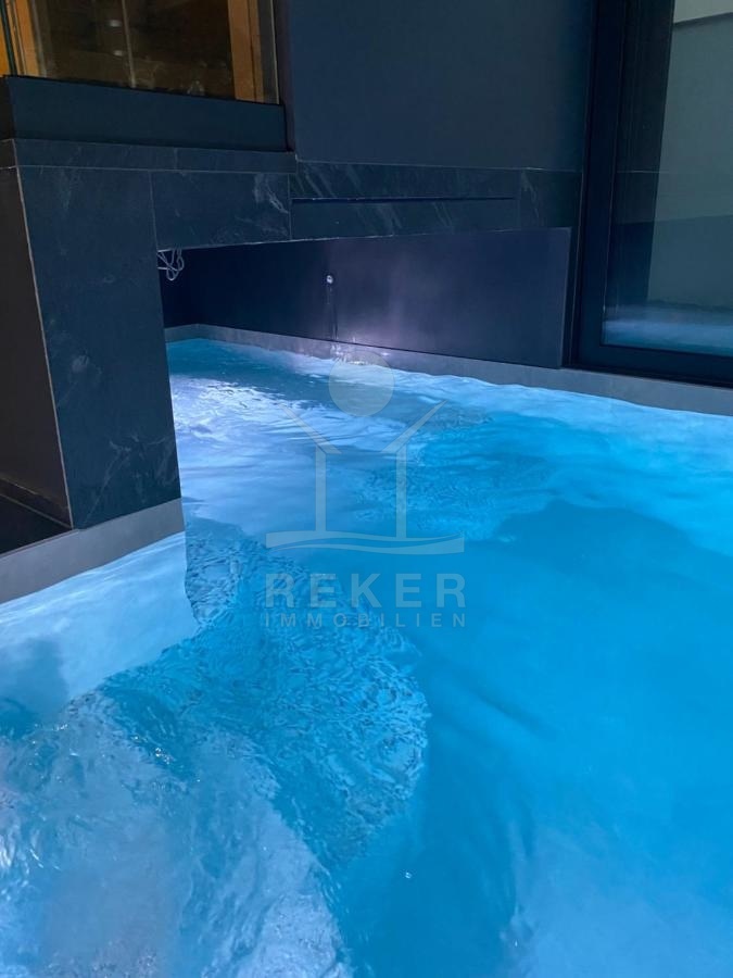 Der Außenbereich dieser Villa ist einfach wunderbar. Der Swimmingpool befindet sich auf der Ebene des Erdgeschosses und wird von einer Sauna umrahmt, die Wellness und Vergnügen harmonisch vereint. Dieser Bereich ist von Fenstern umgeben, die geöffnet werden können, sodass der geschlossene Pool in einen Freibad umgewandelt werden kann. Genießen Sie einfach das perfekte Zusammenspiel von Entspannung und Vergnügen. Ein Parkplatz für drei Autos ist ebenfalls vorhanden, um Ihren Komfort und Ihre Bequemlichkeit zu gewährleisten. Diese Luxusvilla ist wahrhaftig ein Traumobjekt, das Sie besitzen sollten.