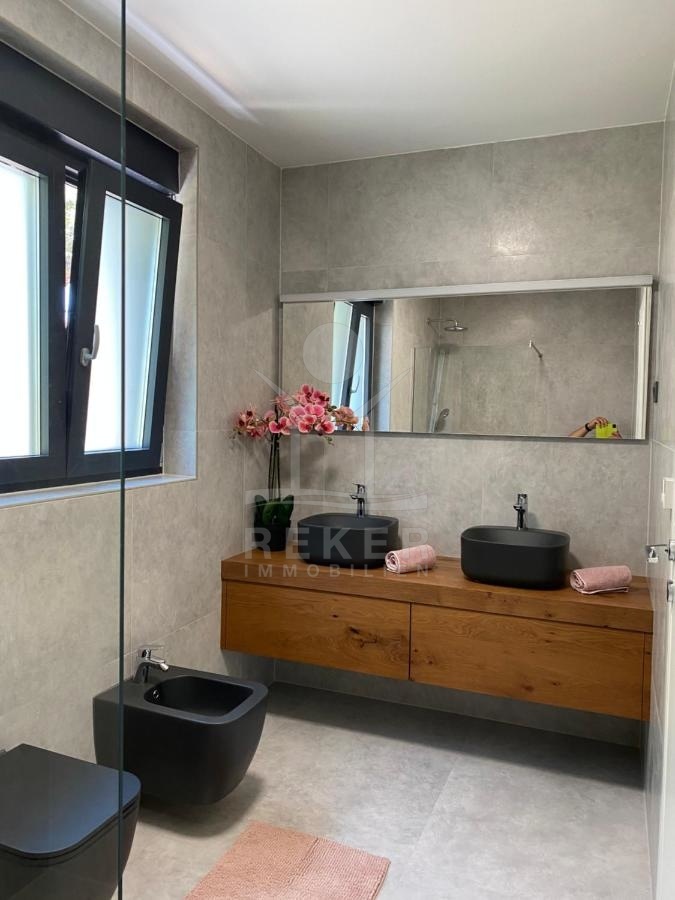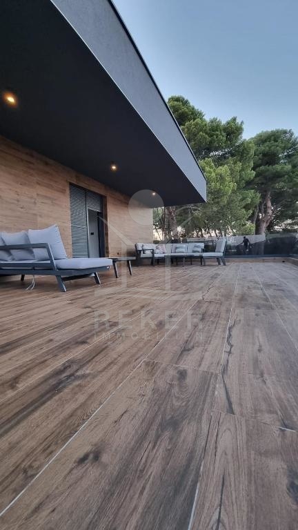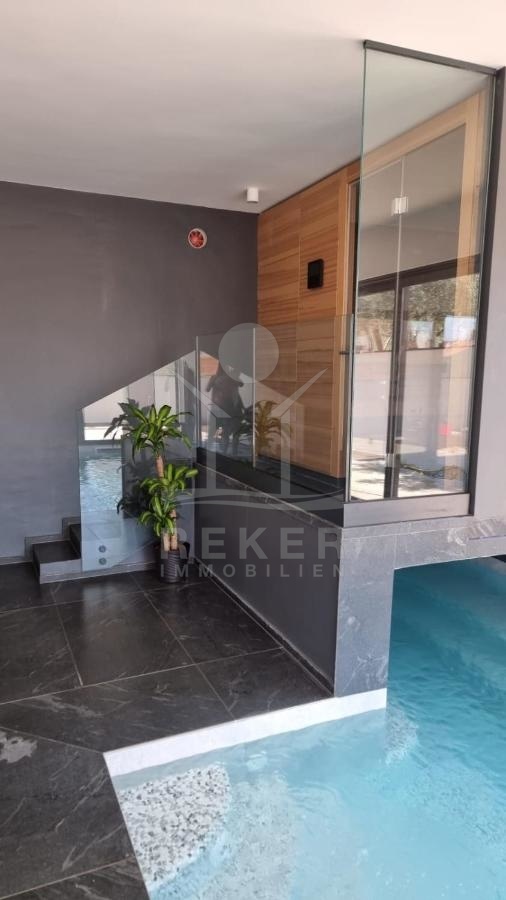 Die luxuriöse Neubau-Villa befindet sich in einer hervorragenden und ruhigen Lage in Fažana. Nur 150 m entfernt genießen Sie die Nähe zum Meer und können das mediterrane Flair in vollen Zügen genießen. Entspannen Sie sich in Ihrem eigenen Swimmingpool oder gönnen Sie sich eine Auszeit in der Sauna. Für Abwechslung sorgen die zahlreichen Restaurants und Cafés, die Sie bereits nach 200 m erreichen können. Des Weiteren ist der Nationalpark Brijuni nur 3,9 km entfernt und das beeindruckende Amphitheater in Pula erreichen Sie in nur 8 km. Diese Immobilie bietet Ihnen die perfekte Kombination aus Luxus, Komfort und einer erstklassigen Lage - ein wahrer Traum, diese Immobilie zu besitzen.