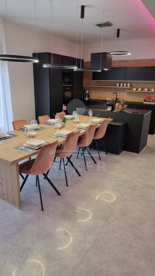 Das Haus ist mit einer Klimaanlage ausgestattet, damit Sie auch an heißen Tagen einen kühlen Kopf bewahren können. Zusätzlich wird die Wohnung komplett möbliert verkauft, sodass Sie sich um die Einrichtung keine Gedanken machen müssen. Im Erdgeschoss erwartet Sie ein großes Wohnzimmer mit angrenzender Küche und Essbereich. Hier können Sie gemütliche Abende verbringen und Ihre Lieben bekochen.